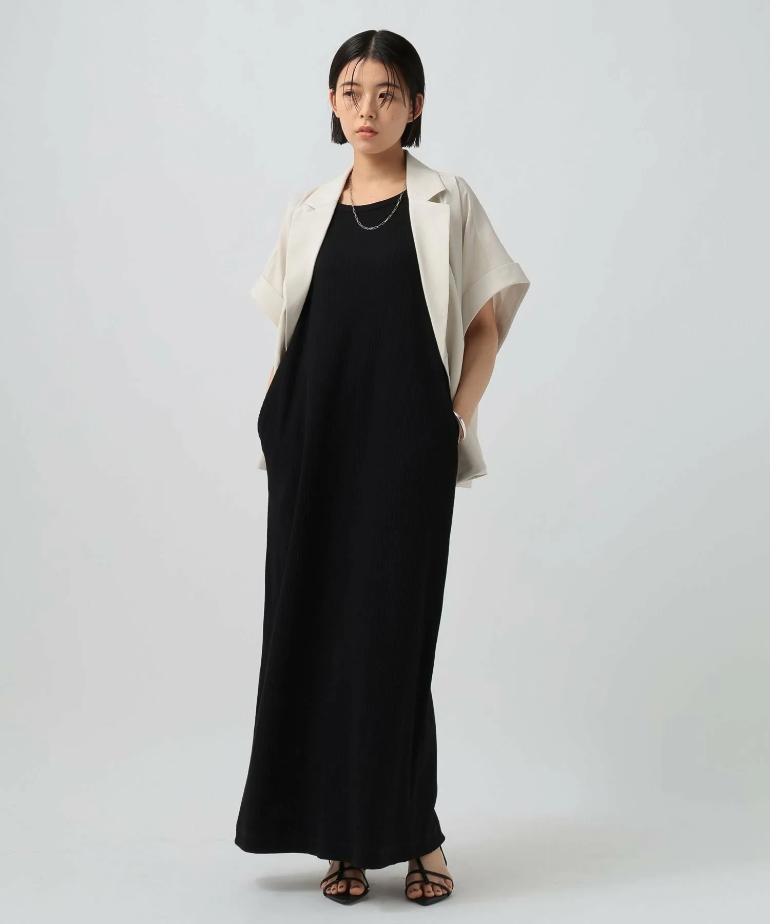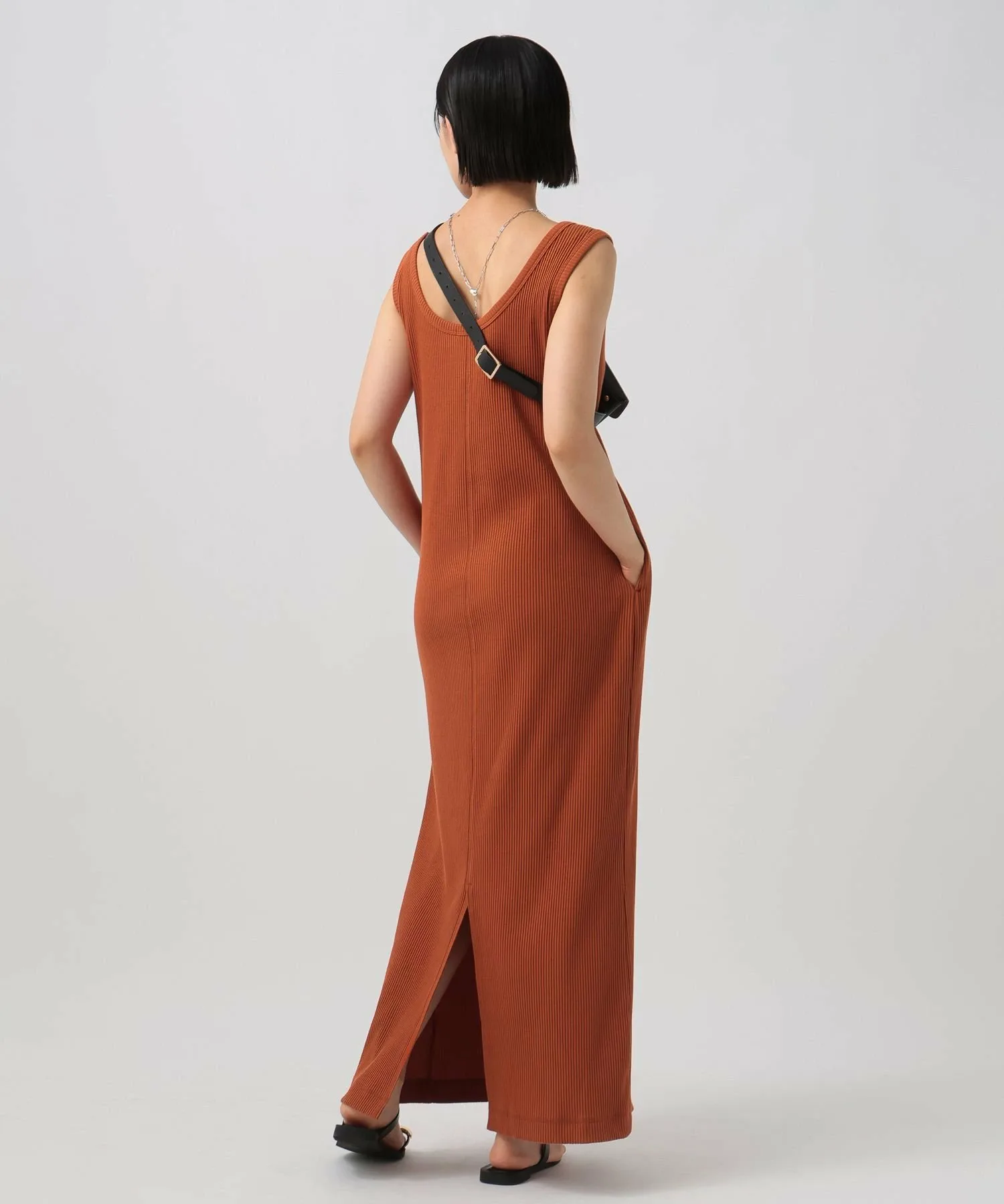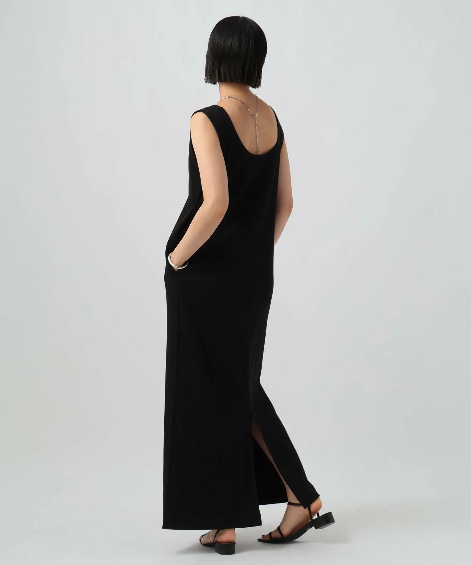 Глубокий разрез на подоле сзади создает расслабленный образ, не выглядя при этом слишком повседневным, даже в сочетании с летними сандалиями.
