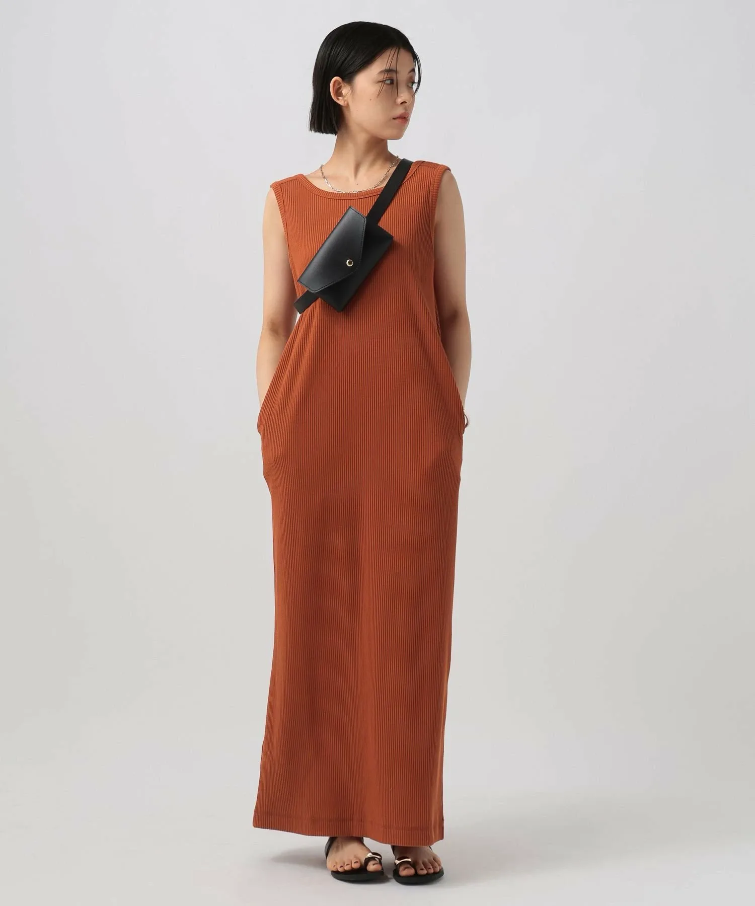 Эластичное ребристое платье без рукавов Bayflow, цвет Orange 40 7 987₽