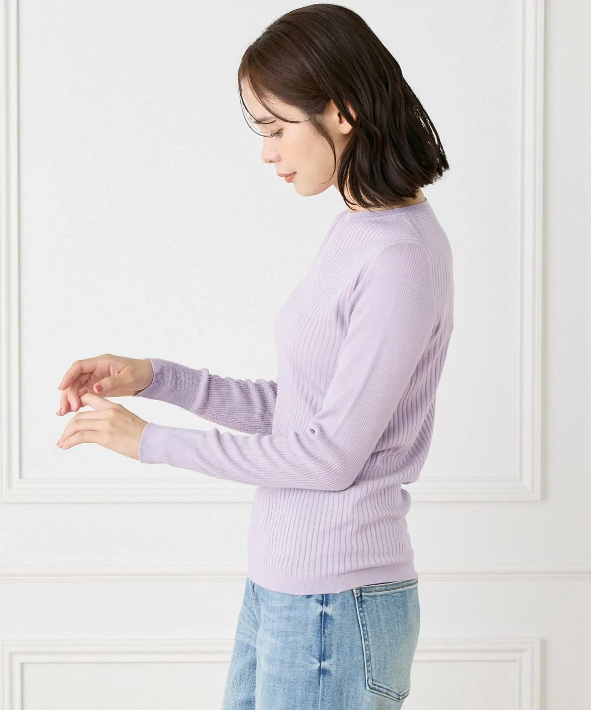 Этот трикотажный свитер с круглым вырезом в рубчик входит в классическую серию Cuoo от INED. Ключевая особенность — изменение рисунка вязки: широкая резинка спереди и тонкая резинка на рукавах. Это простая, но изысканная вещь, созданная с вниманием к деталям. Его можно носить как самостоятельно, так и в качестве нижнего слоя благодаря его тонкости, добавляя женственности любому образу. Он универсален и подходит к любому наряду.