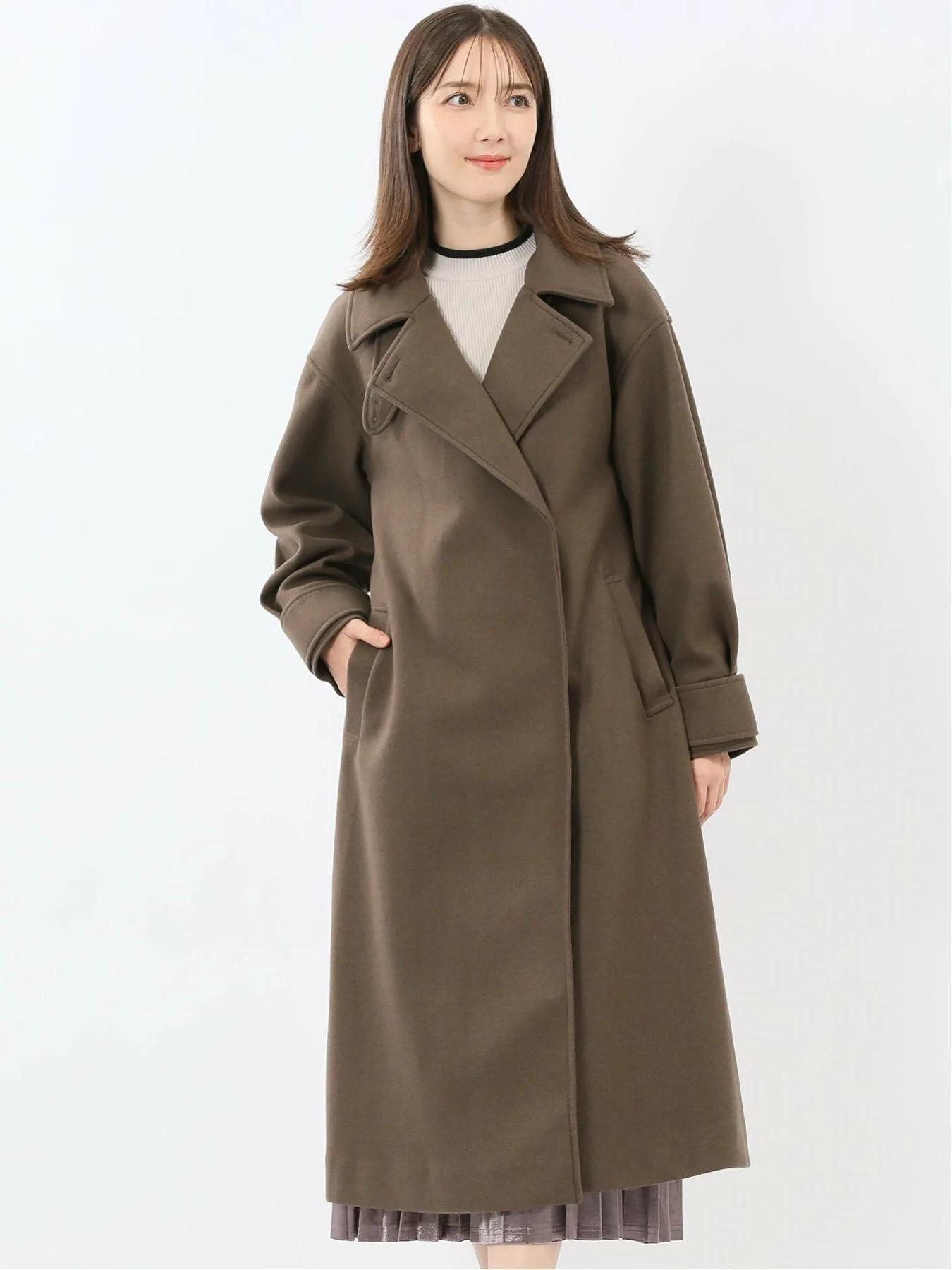 Это длинное пальто идеально подходит в качестве зимней верхней одежды. Ключевые особенности включают съемный ремешок под подбородком, мягкие складки на манжетах, широкие ремни на рукавах, пояс в тон и легкодоступные накладные карманы. Наслаждайтесь различными вариантами создания образа: от повседневного образа с открытым передом до более выразительного образа с поясом в тон, затянутым на талии. Силуэт: Этот базовый силуэт подходит для людей всех возрастов. Длинный фасон защищает от холодного ветра, обеспечивая дополнительное тепло. Сочетание: Эта универсальная вещь дополняет различные варианты низа, от костюмов до трикотажных платьев, узких брюк, плиссированных юбок и широких брюк. Ее можно носить как на работе, так и в повседневной жизни, от делового до повседневного стиля. Крой: Слегка свободный. Сезон: Осень/Зима. Доступные цвета: Темно-коричневый и темно-синий. Подкладка: Полностью на подкладке. *Пожалуйста, ознакомьтесь с этикеткой по уходу и инструкциями по стирке перед ношением или использованием. *Избегайте хранения в местах, подверженных воздействию света, или в жарких, влажных местах. *Обратите внимание, что со временем ткань будет изнашиваться, независимо от использования. *Из-за способа раскроя и пошива ткани рисунок может выглядеть не совсем так, как показано на фотографии. *Обратите внимание, что могут быть расхождения в текстуре и цвете в зависимости от устройства просмотра и окружающей среды.