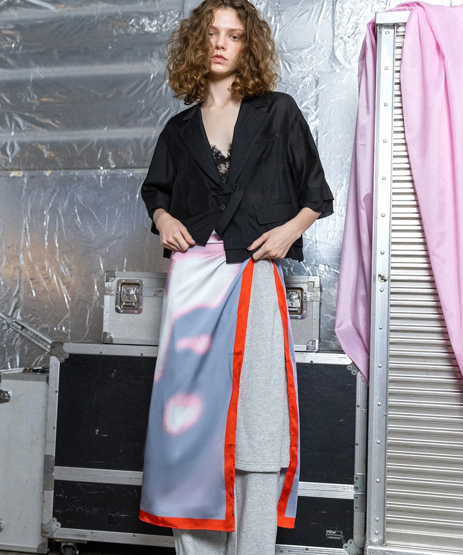Материал изготовлен из текстурированного атласа, похожего на шелк. Как юбка-обертка,
