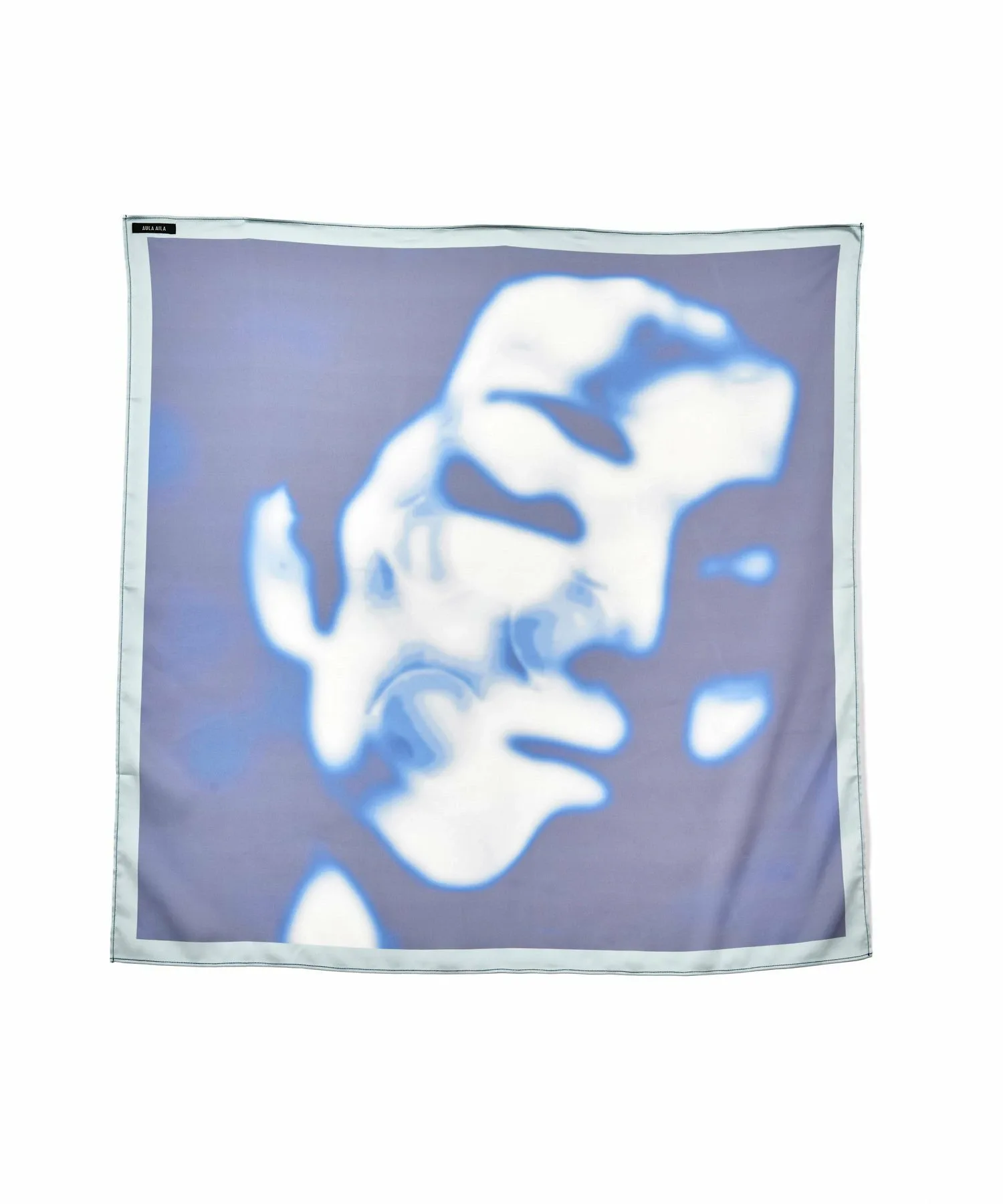 Крупный рисунок представляет собой графическое изображение женского лица, освещенного светом и водой,