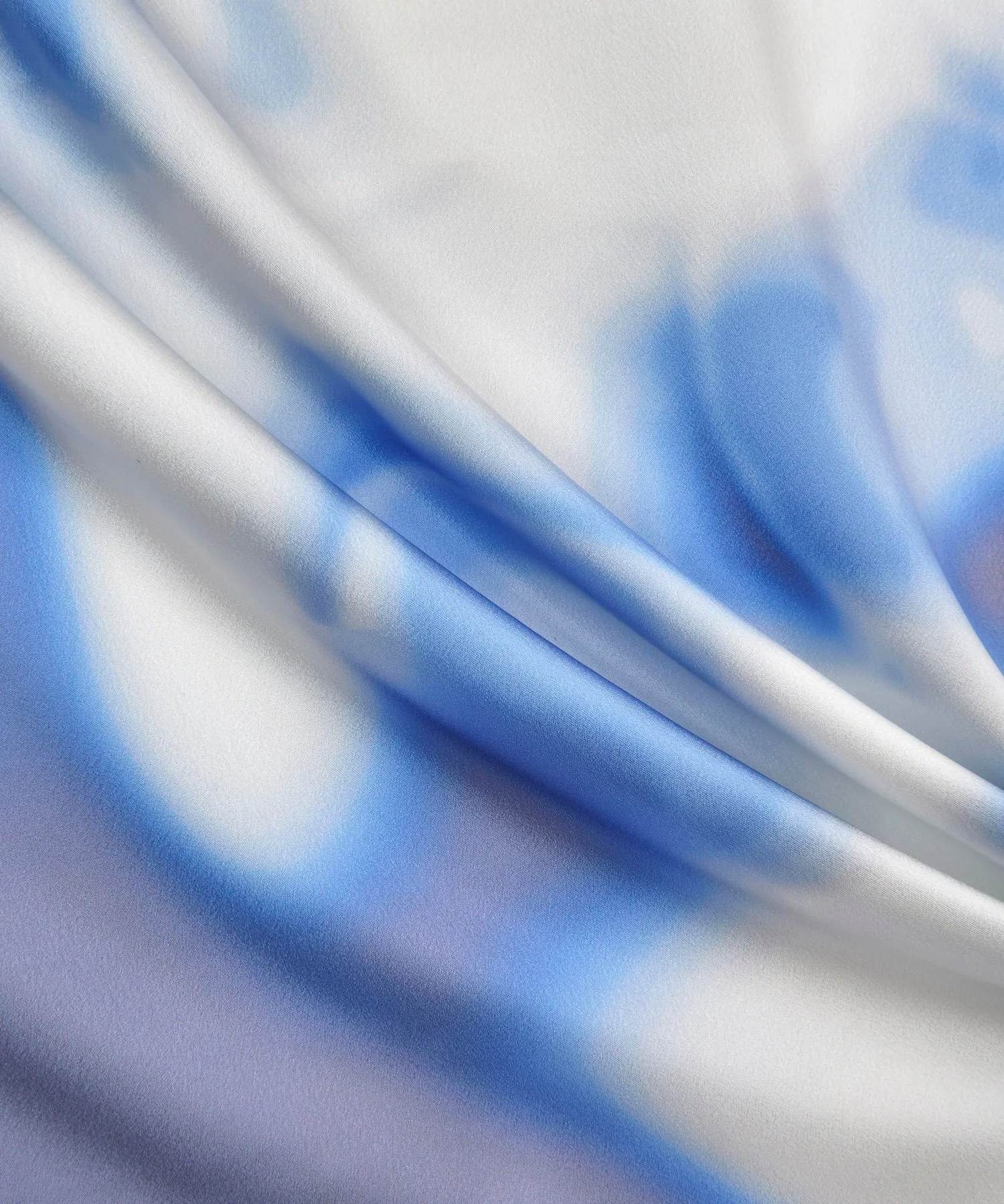 Материал изготовлен из текстурированного атласа, похожего на шелк. Как юбка-обертка,