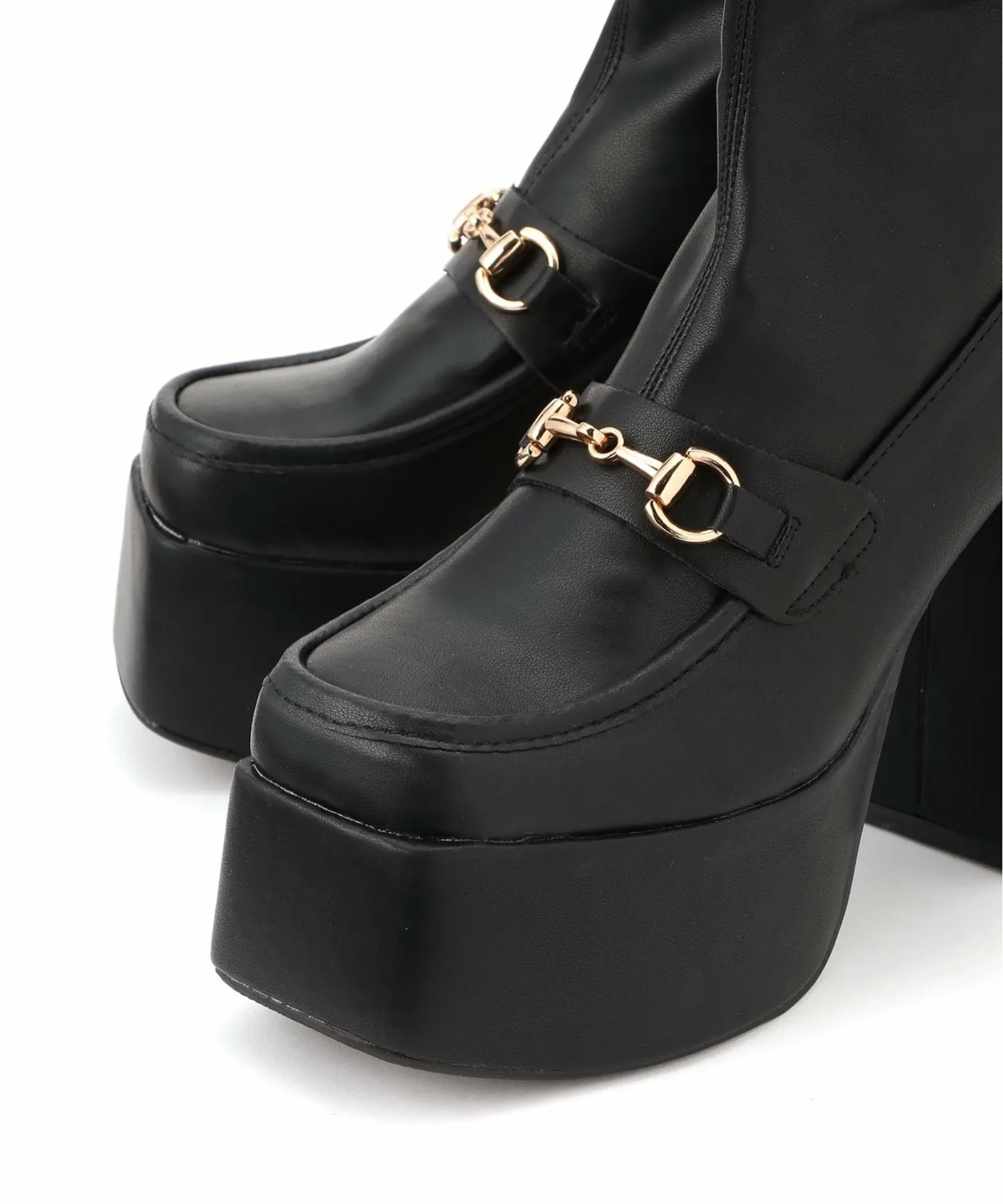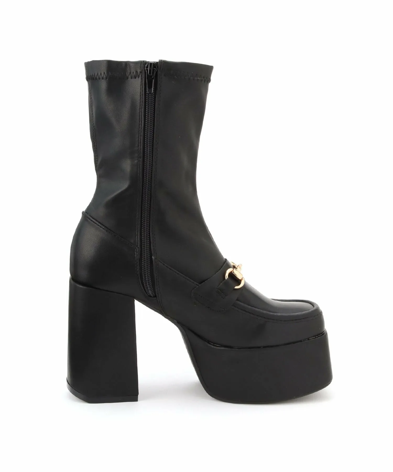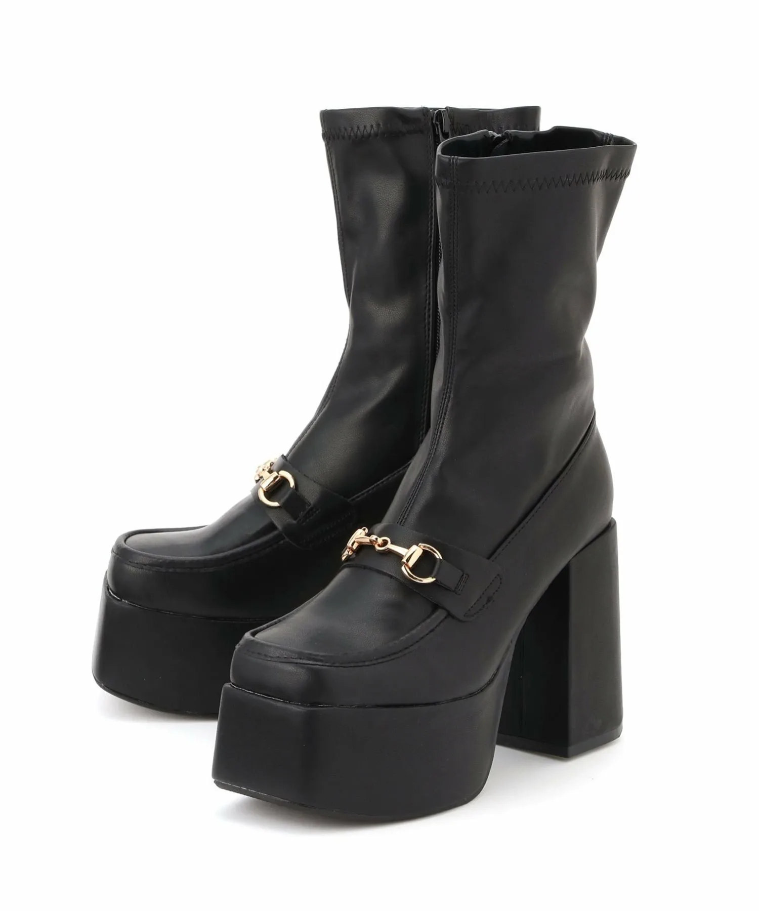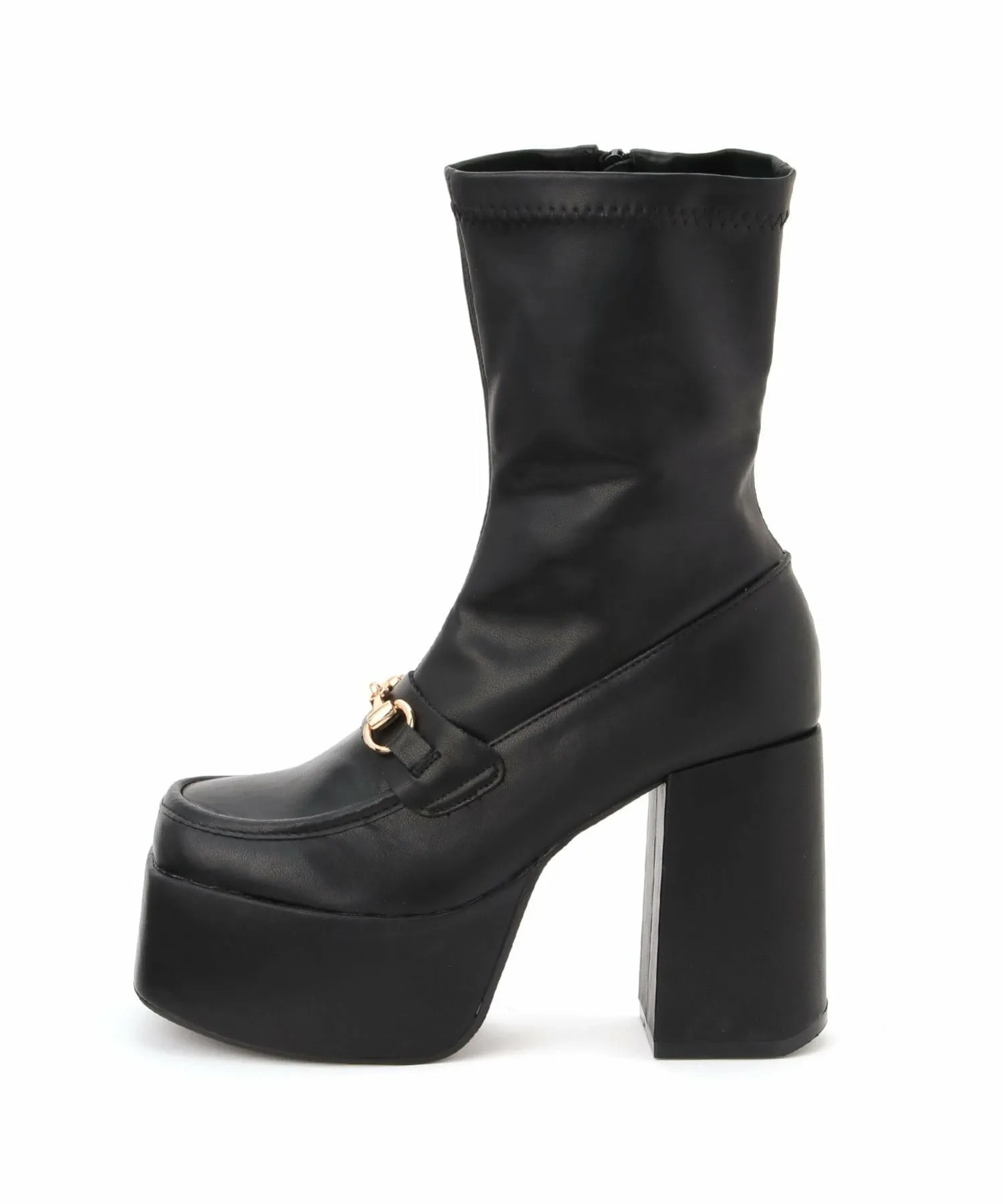 Короткие сапоги с толстой подошвой и массивным каблуком.