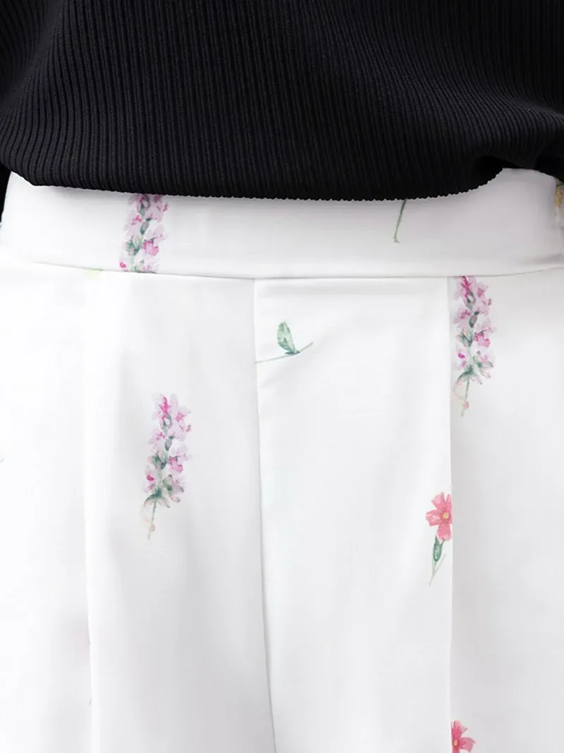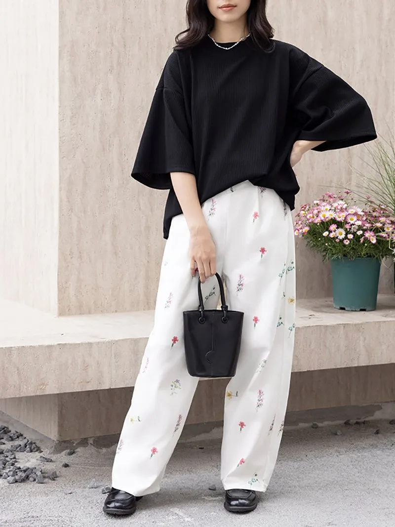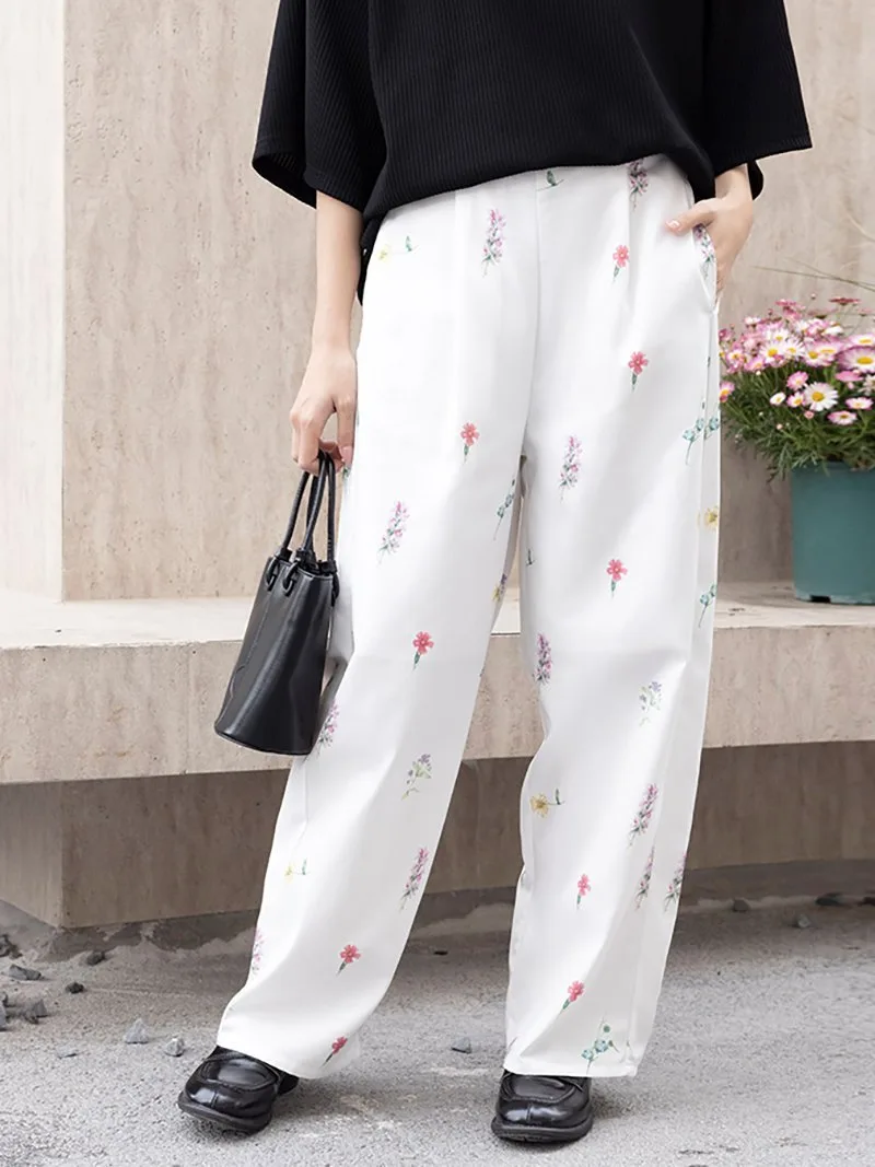 Красочный цветочный узор вплетен в ткань, делая эти брюки модными.