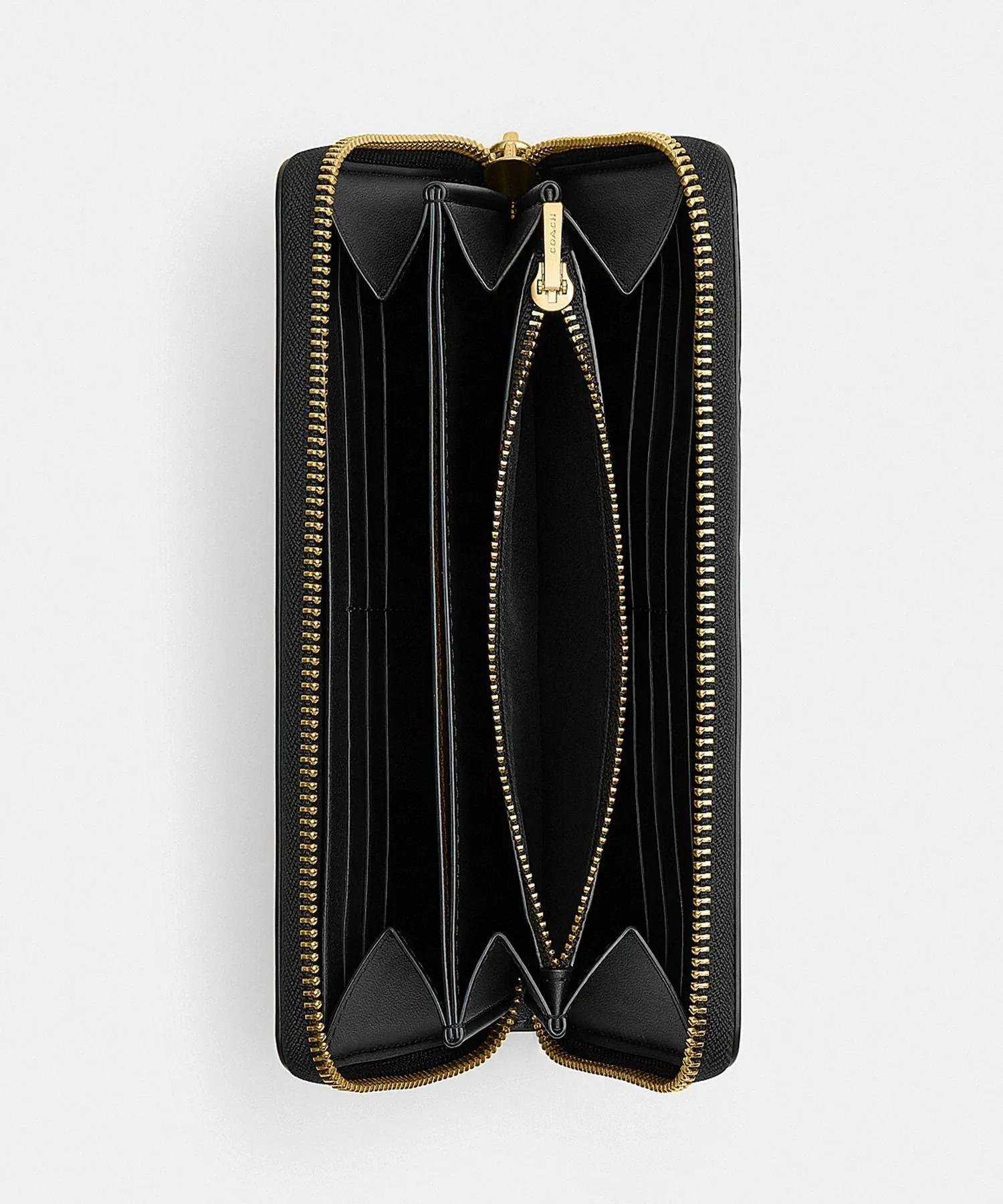 Этот изысканный кожаный длинный кошелек украшен игривым выражением лица Плуто. Застежка-молния по периметру открывает просторное внутреннее отделение. Внутри есть 12 слотов для карт, отделение для банкнот во всю длину и отделение для монет на молнии, что позволяет аккуратно хранить необходимые вещи.