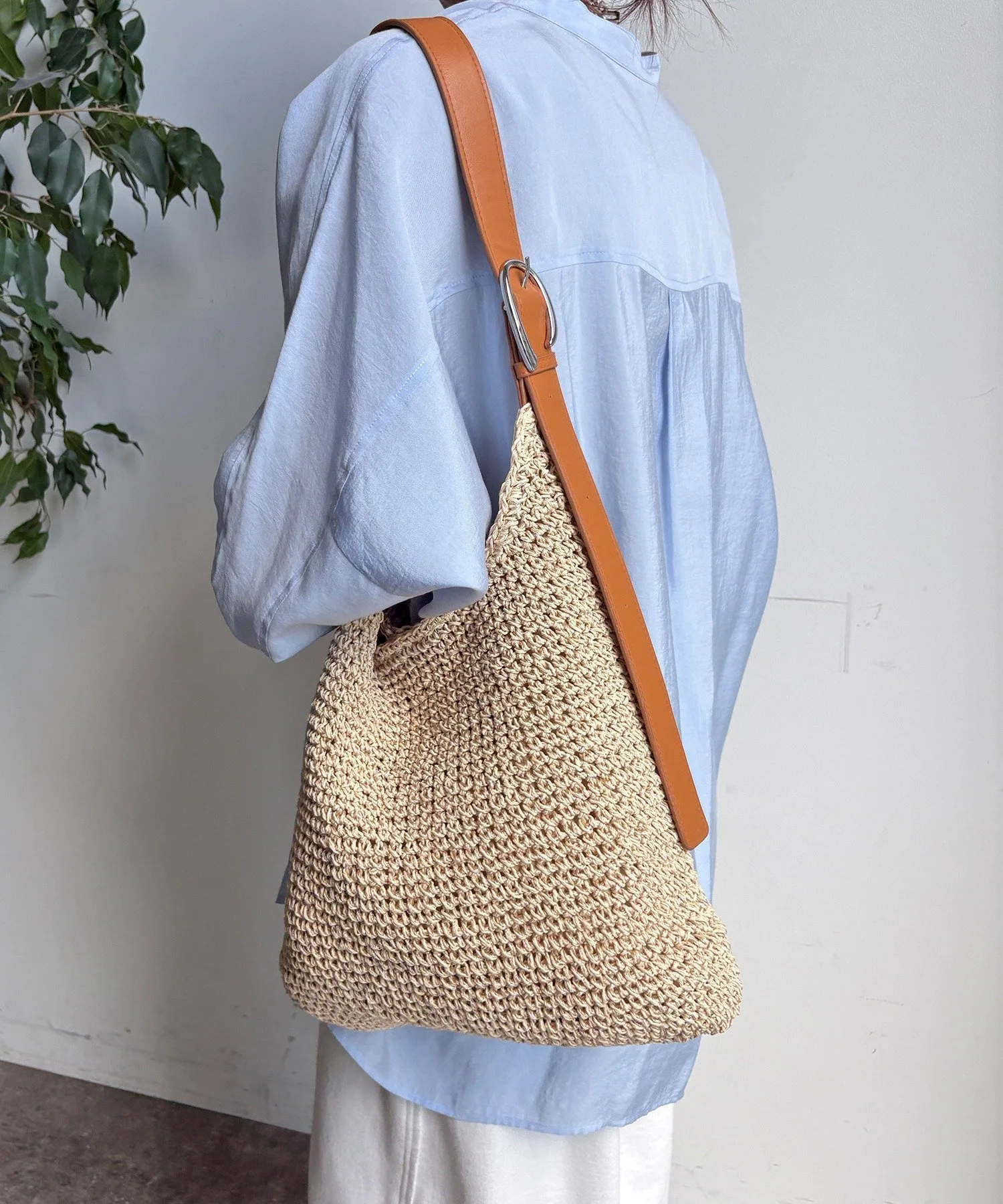 ・Четкая плетеная отделка и ремешок, имитирующий кожу, создают изысканный образ.