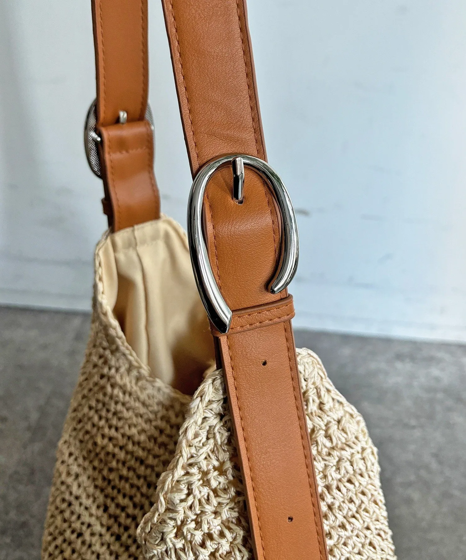 Вместительная и легкая! Сумка-тоут с крупной вязкой и ремнями под кожу