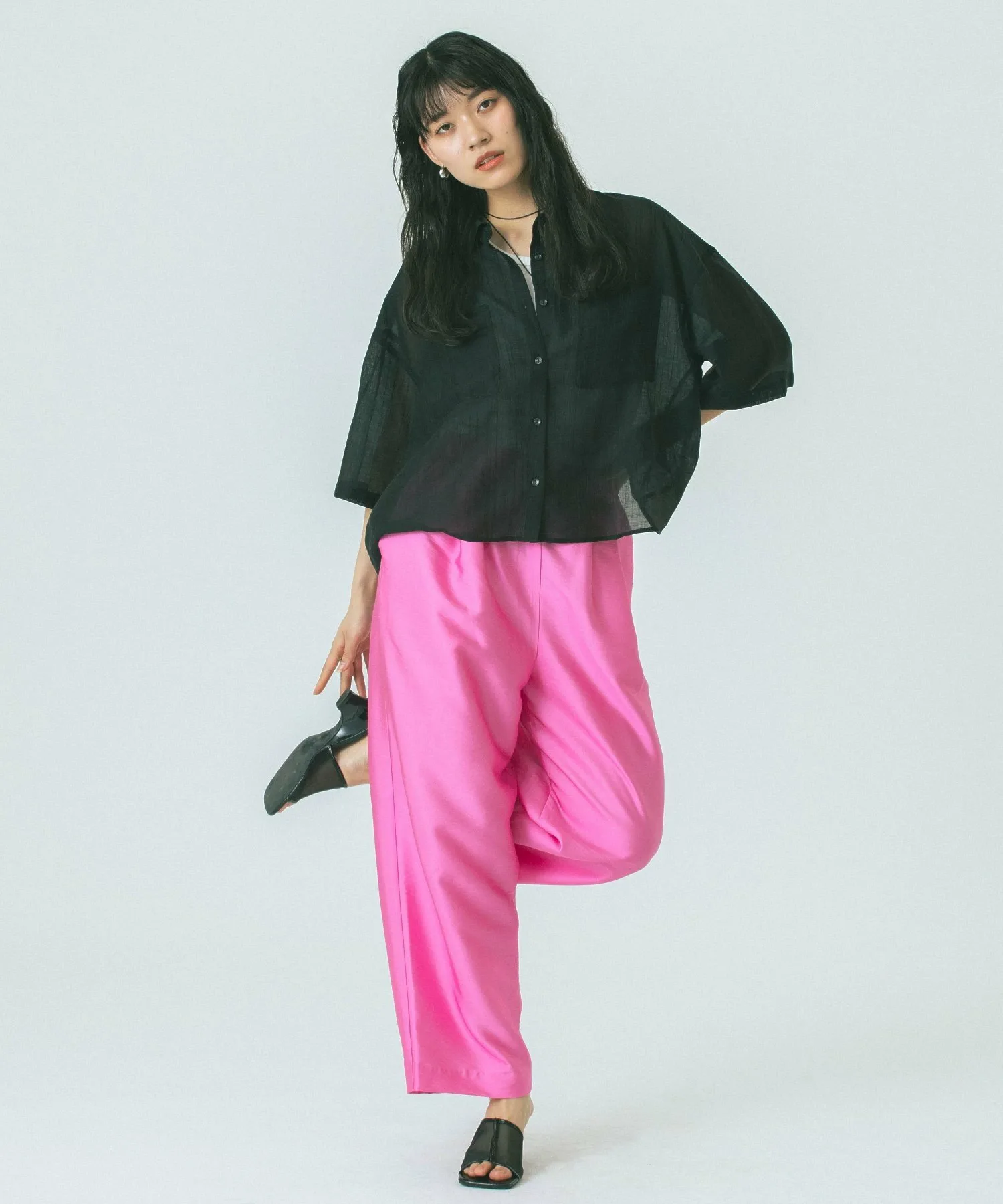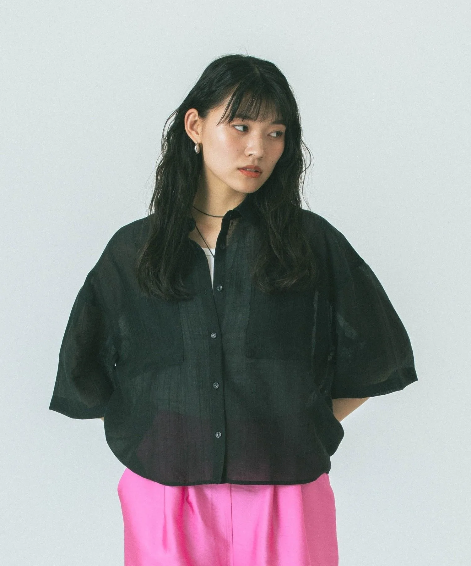 Укороченная прозрачная рубашка, создающая ощущение расслабленности