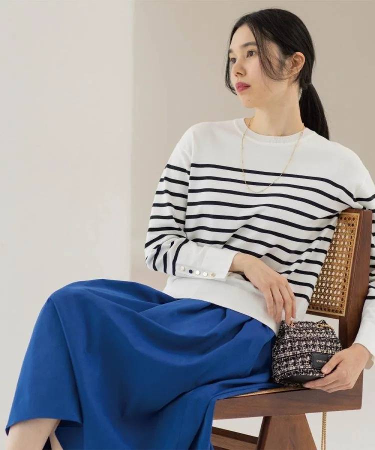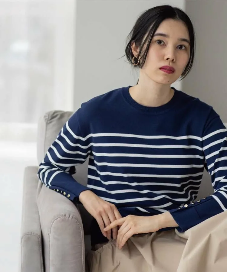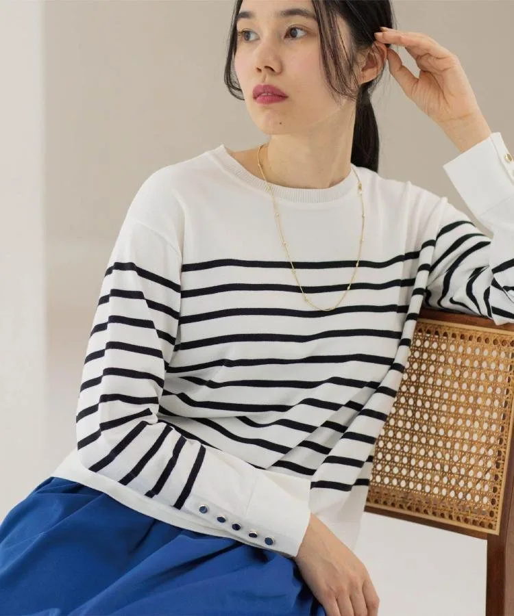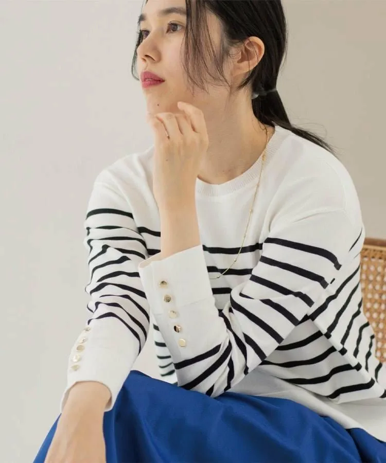 Отлично подходит для поездок на работу или повседневной носки! Элегантный трикотаж с золотыми пуговицами на манжетах и двухцветной расцветкой.
