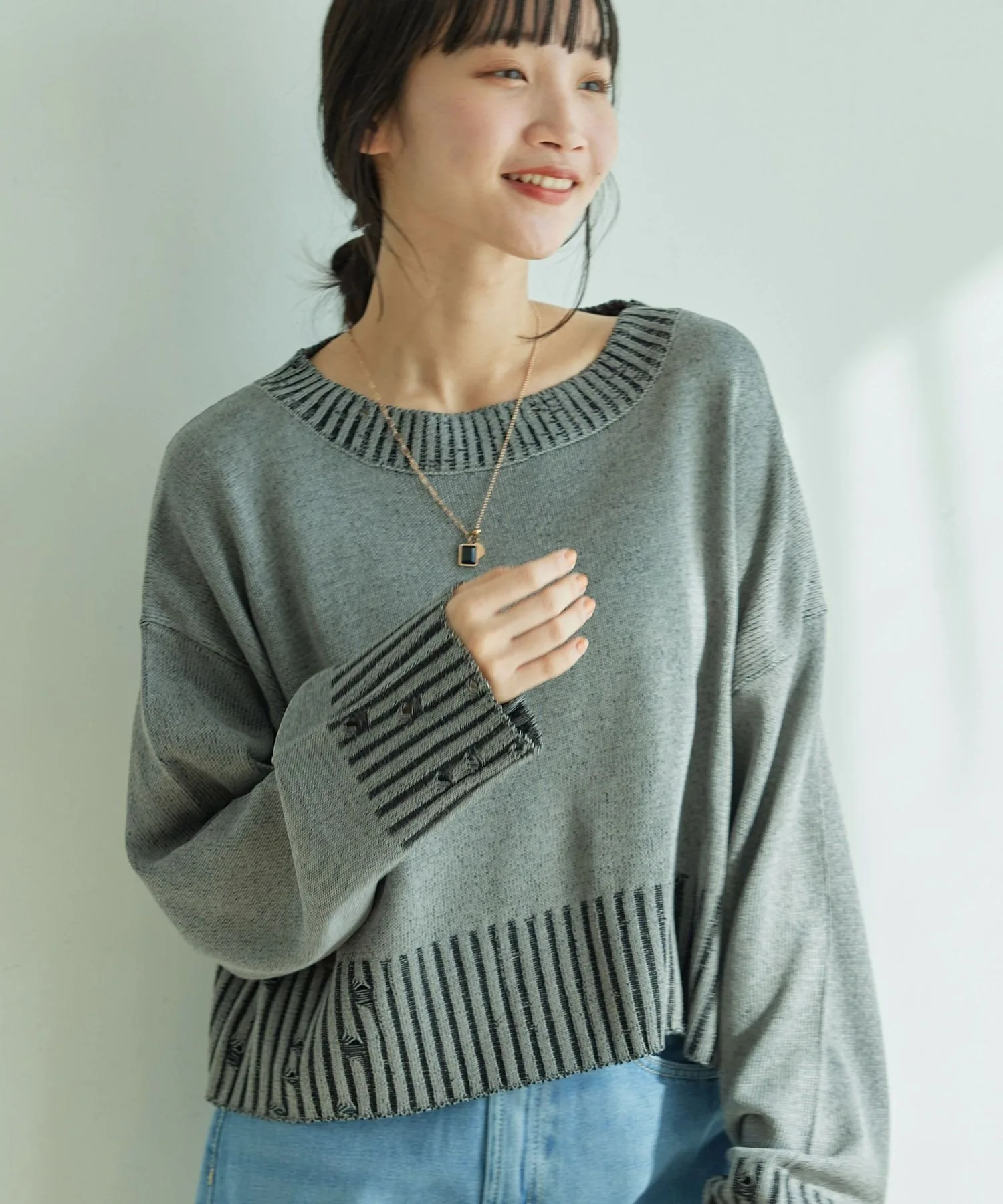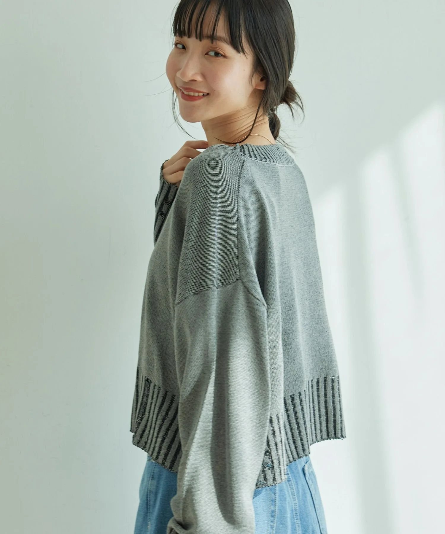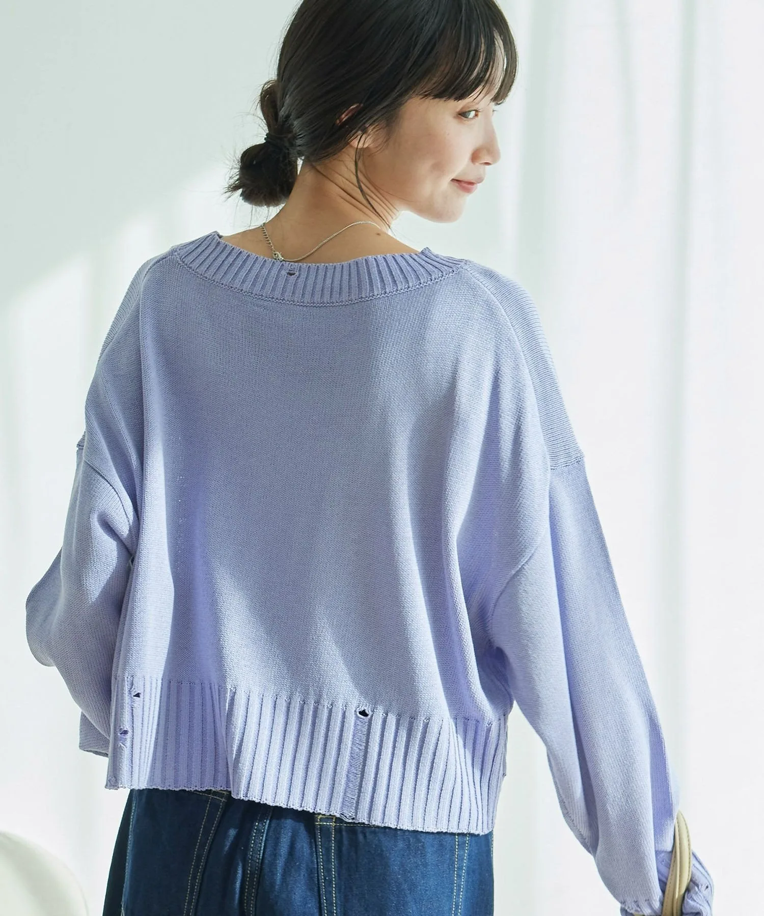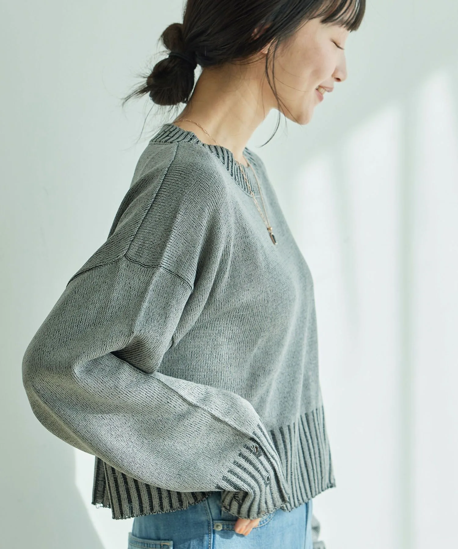Потертые рукава и нижний край позволяют создавать повседневные образы.