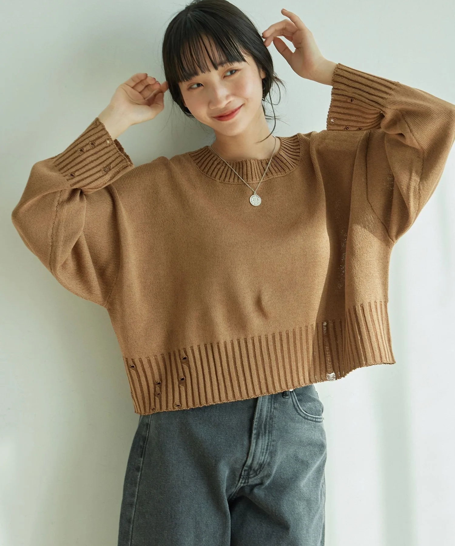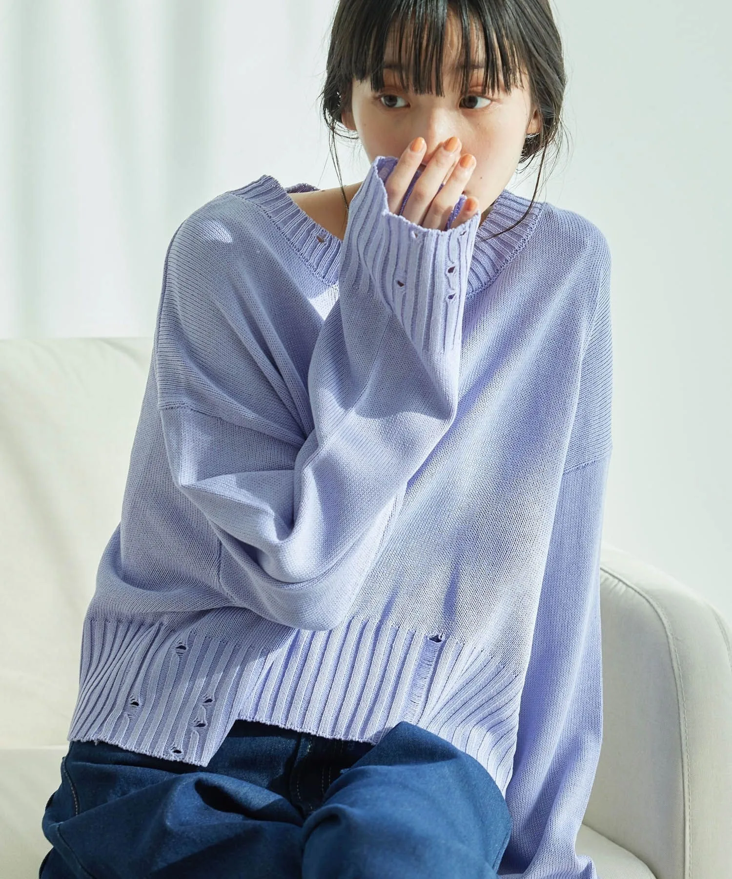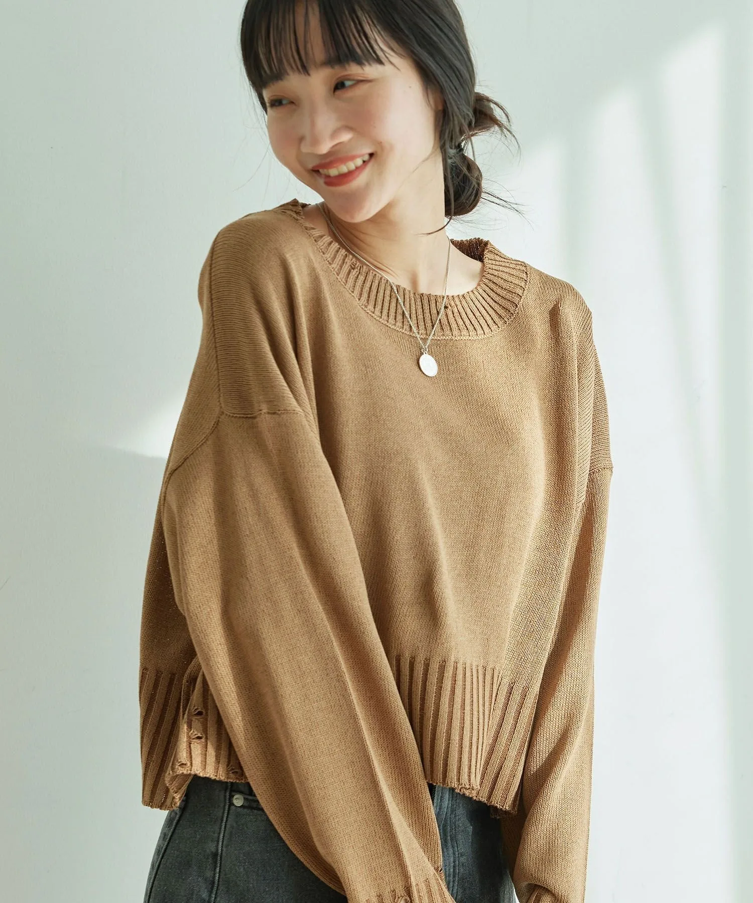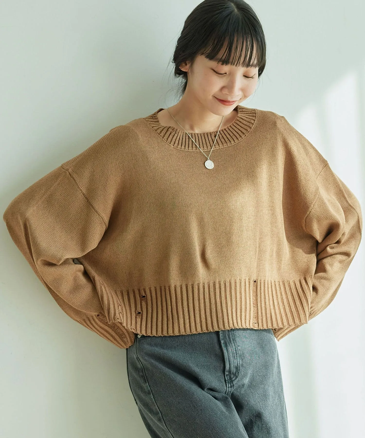 Потертые рукава и нижний край позволяют создавать повседневные образы.