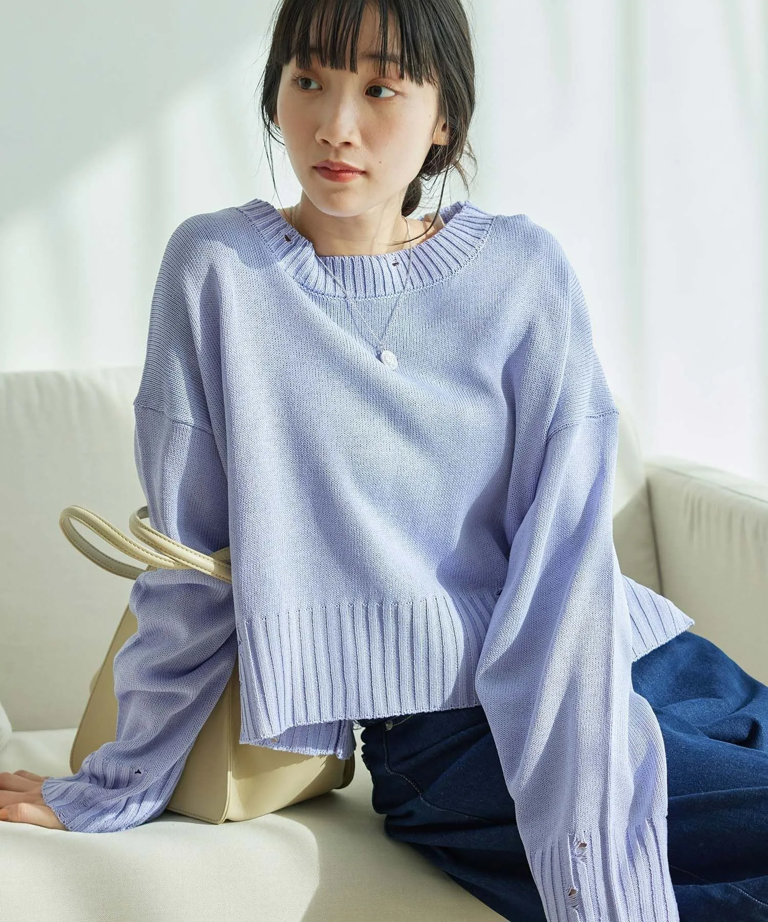 Потертые рукава и нижний край позволяют создавать повседневные образы.