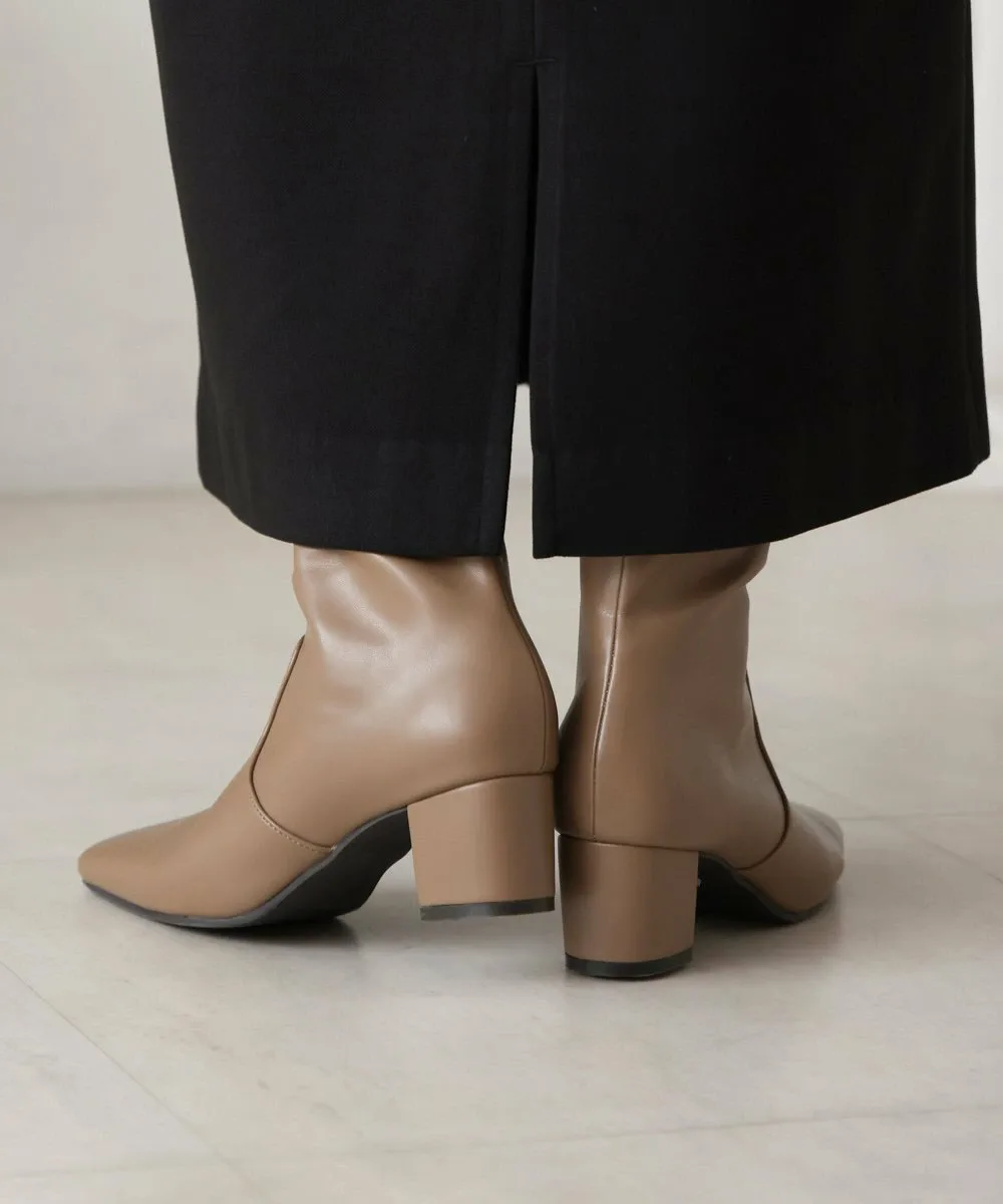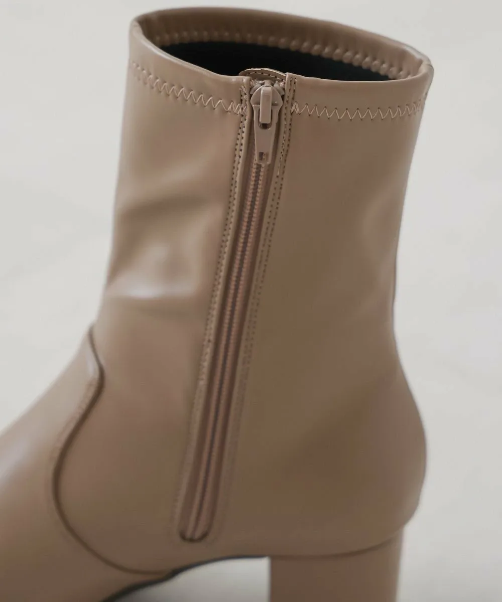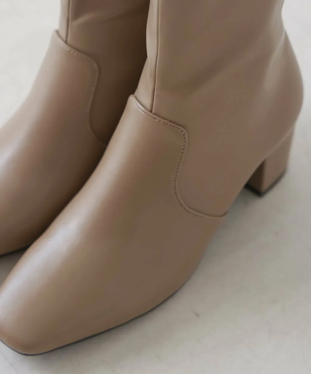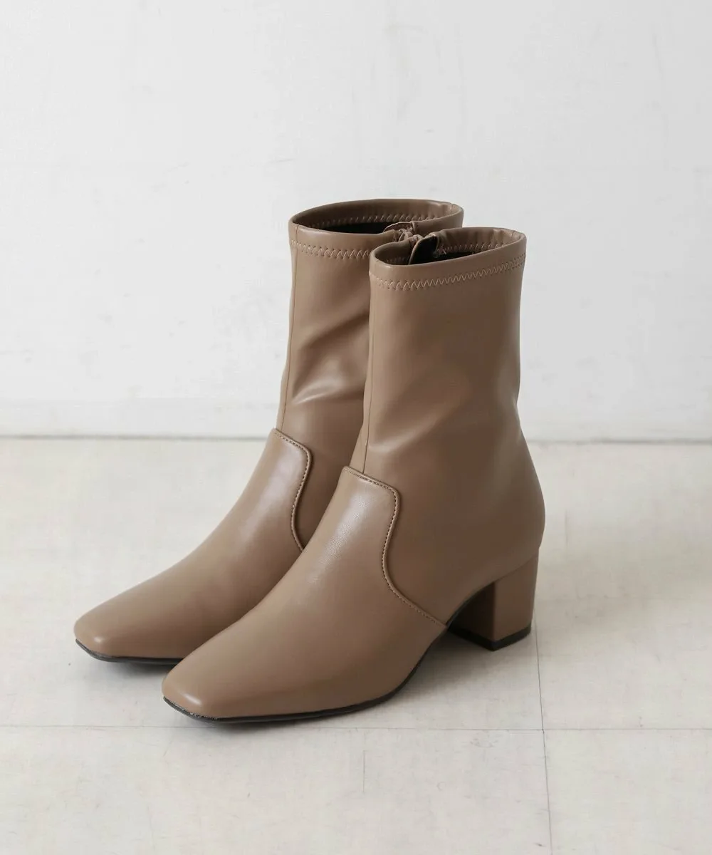 Короткие ботинки с квадратным носком из эластичного материала. Область щиколотки облегает, но эластичность обеспечивает аккуратный вид. Толстый каблук обеспечивает устойчивость и удобную посадку.