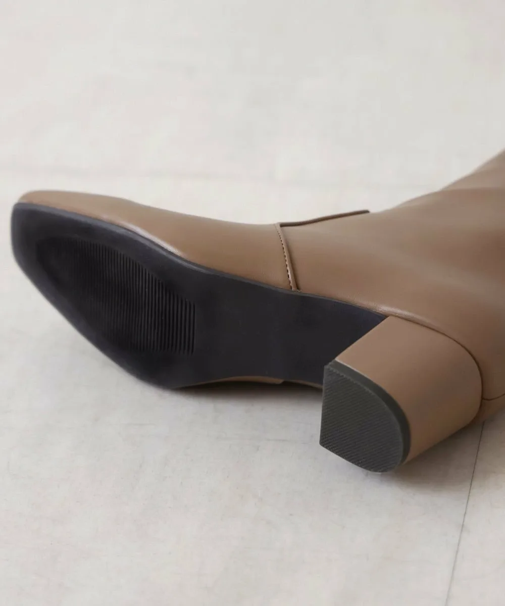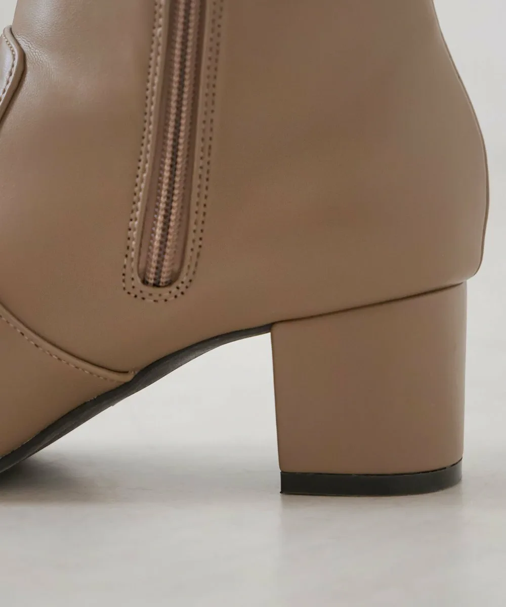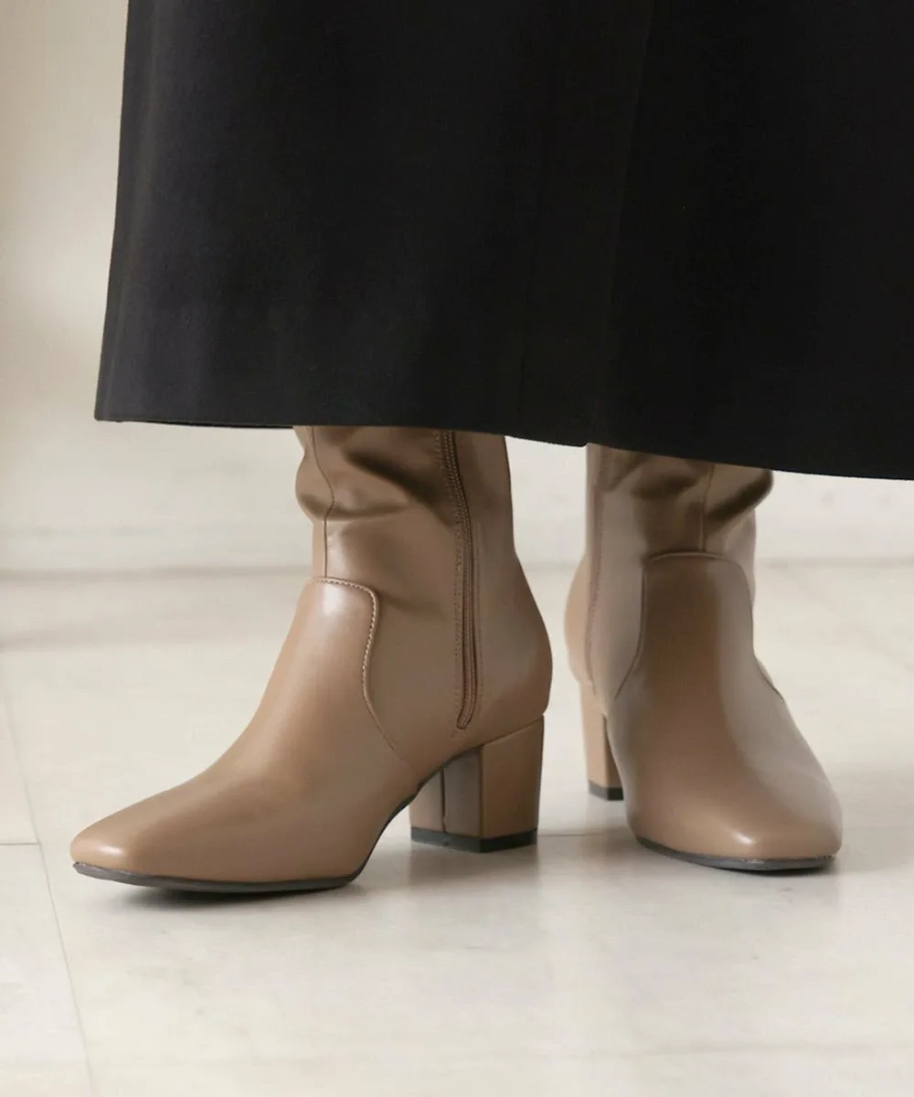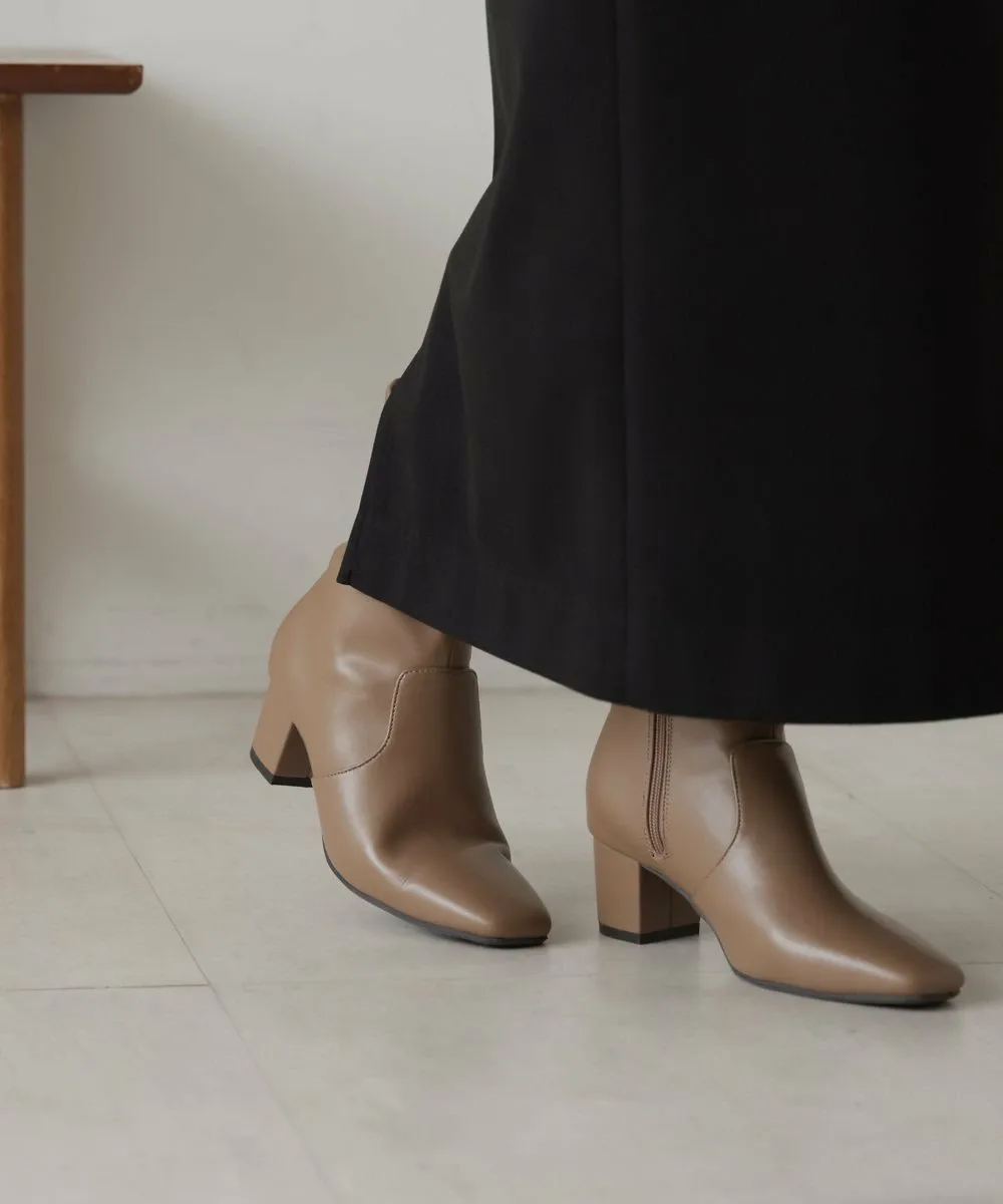 Короткие ботинки с квадратным носком из эластичного материала. Область щиколотки облегает, но эластичность обеспечивает аккуратный вид. Толстый каблук обеспечивает устойчивость и удобную посадку.