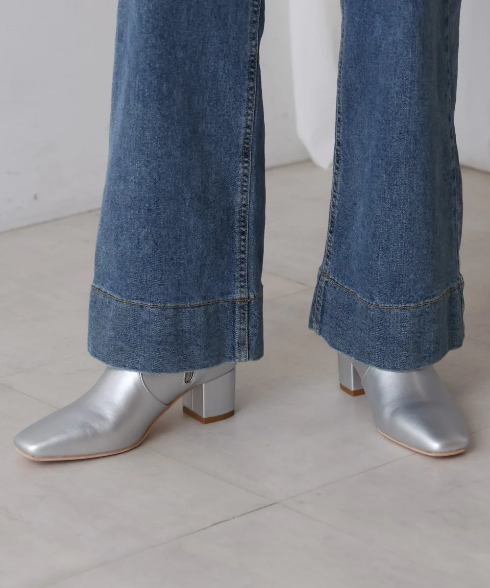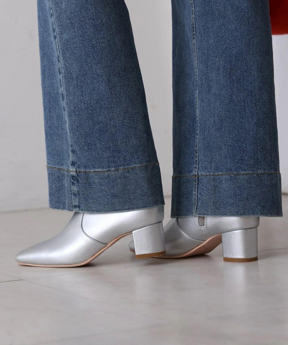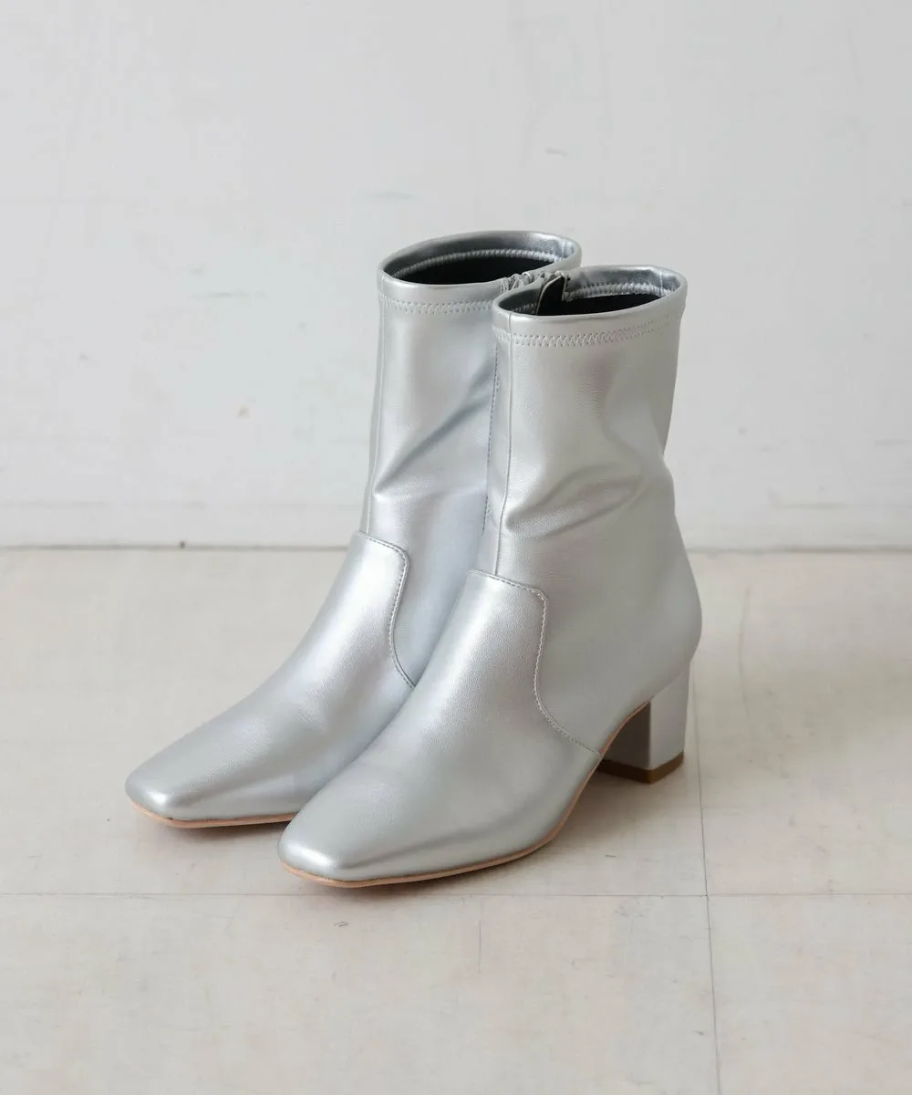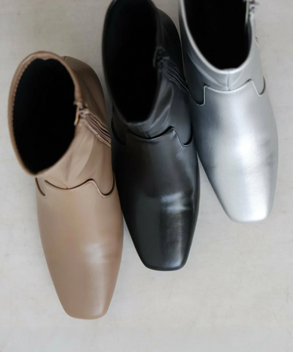 Короткие ботинки с квадратным носком из эластичного материала. Область щиколотки облегает, но эластичность обеспечивает аккуратный вид. Толстый каблук обеспечивает устойчивость и удобную посадку.