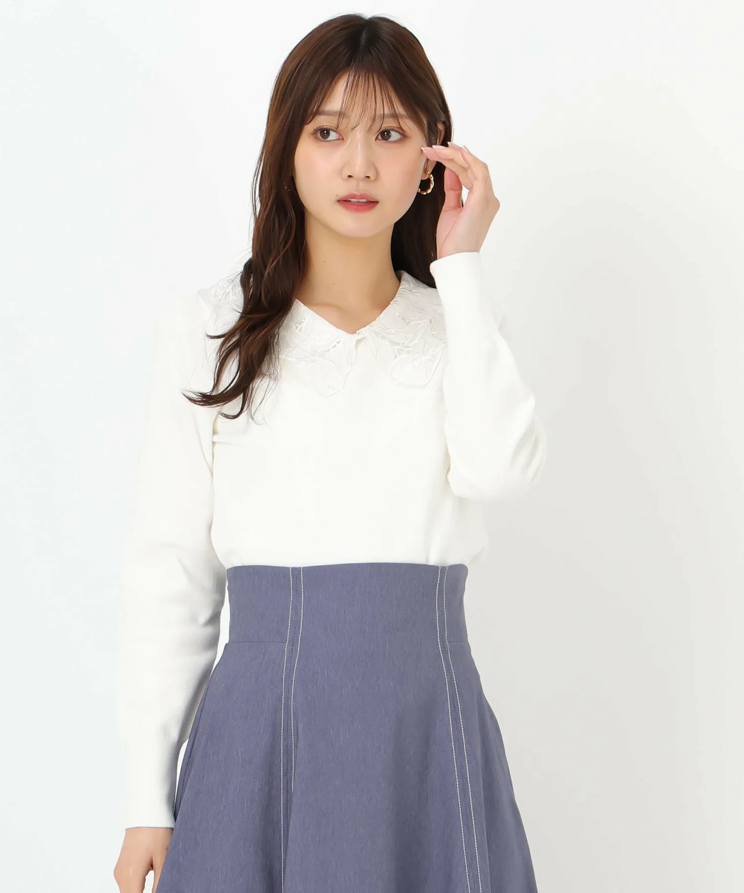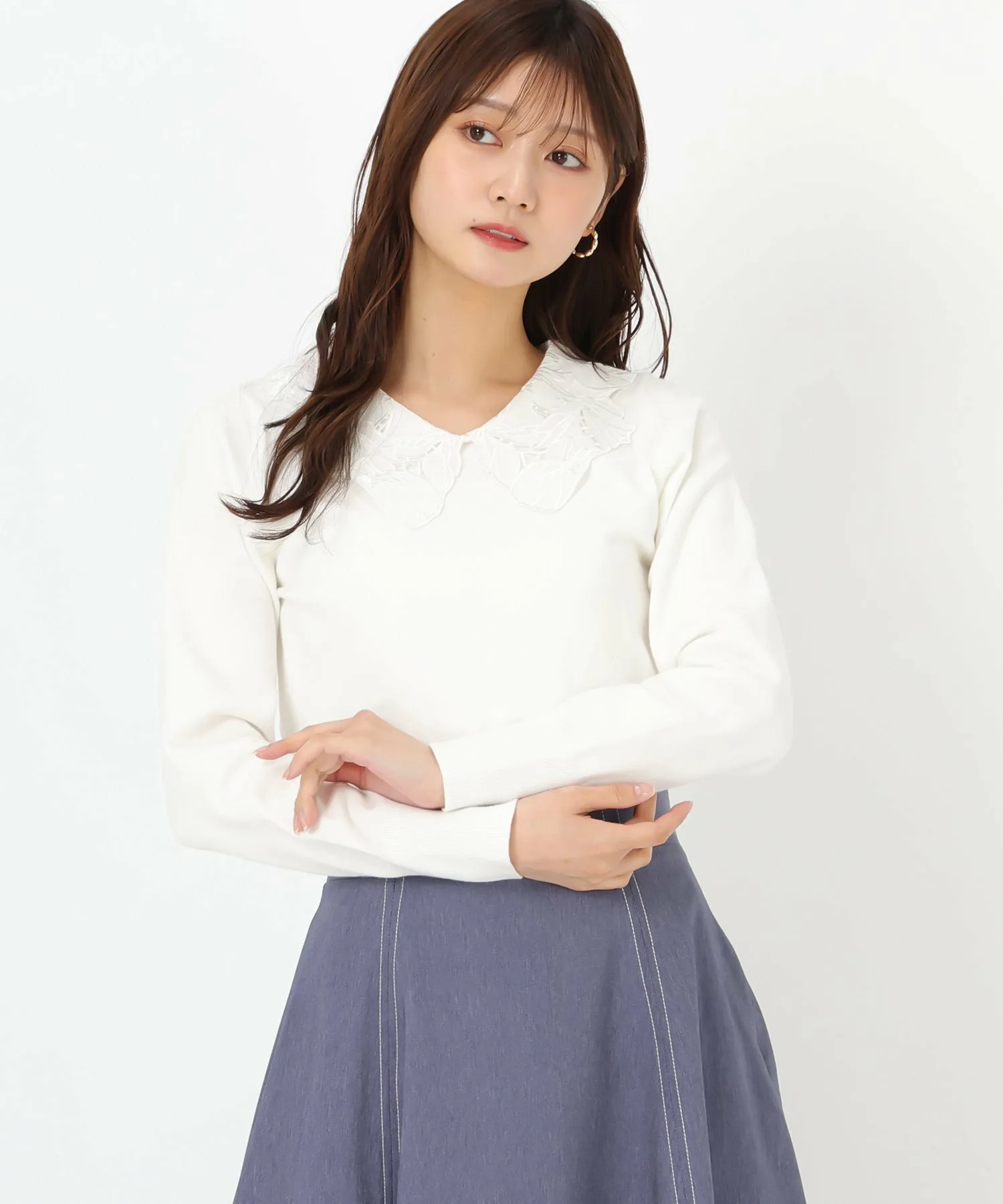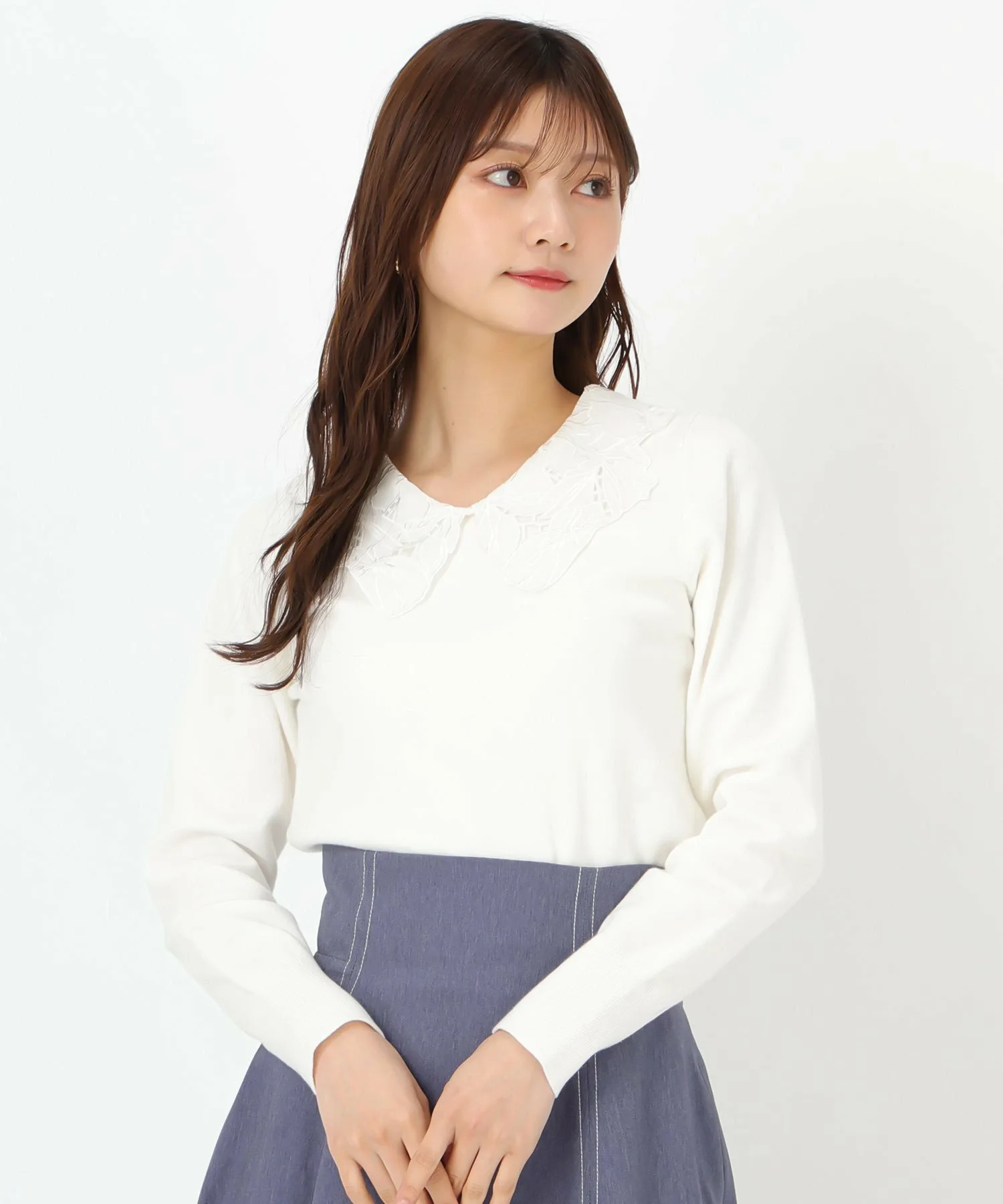 Трикотажное изделие с кружевным воротником, подчеркивающее женственность.