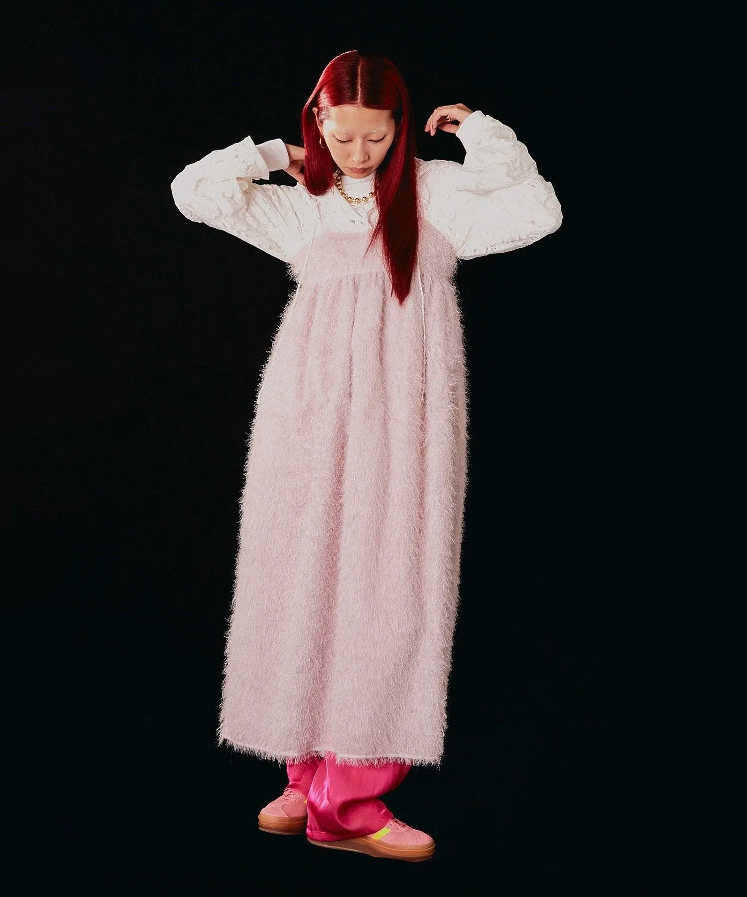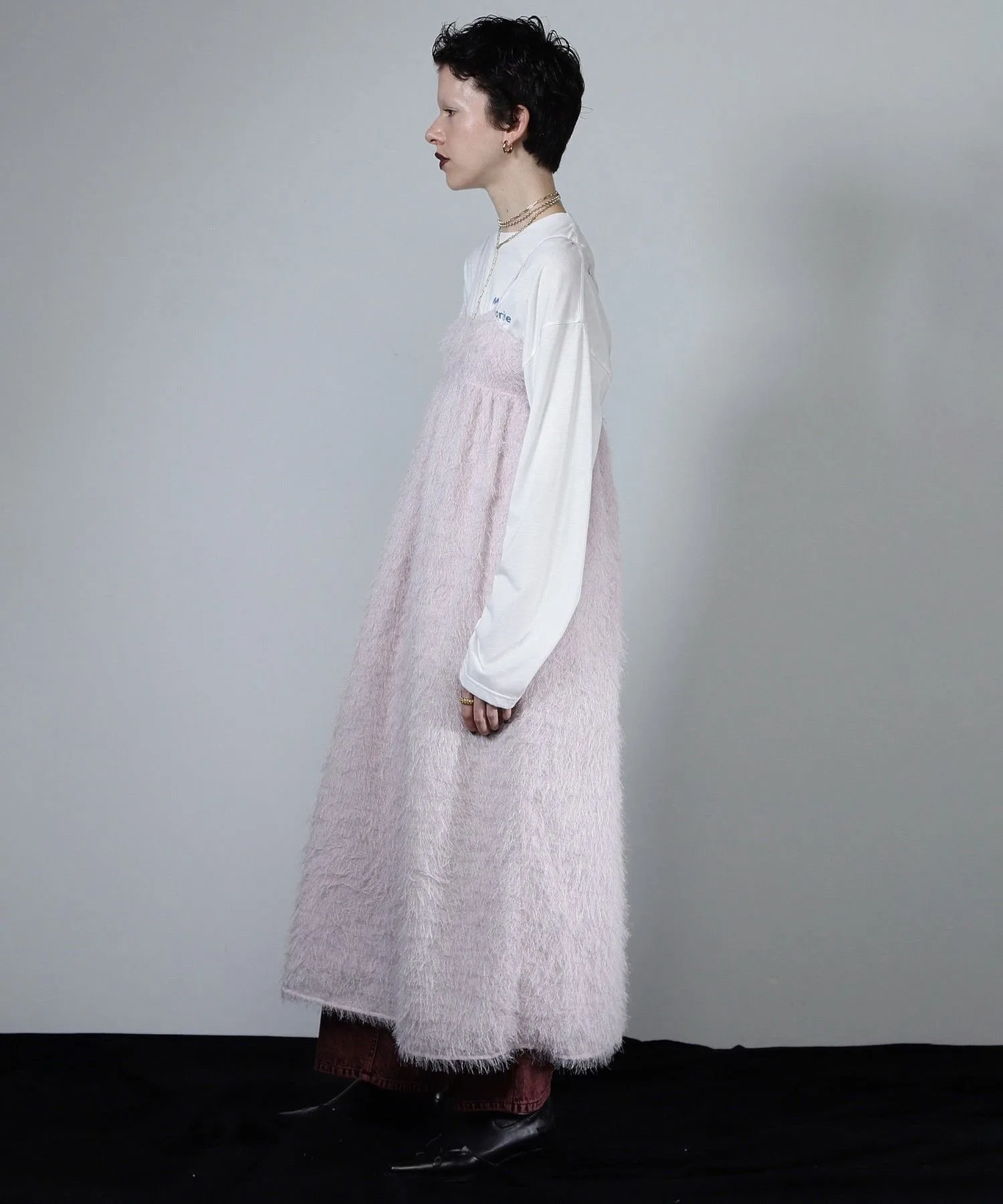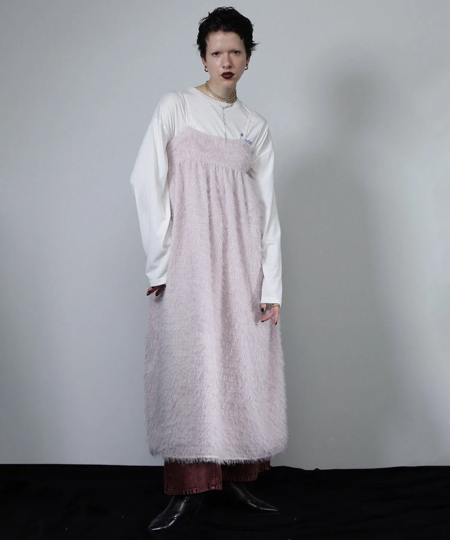 Мягкая текстура этого пушистого платья-комбинации придает ему женственный и нежный вид.
