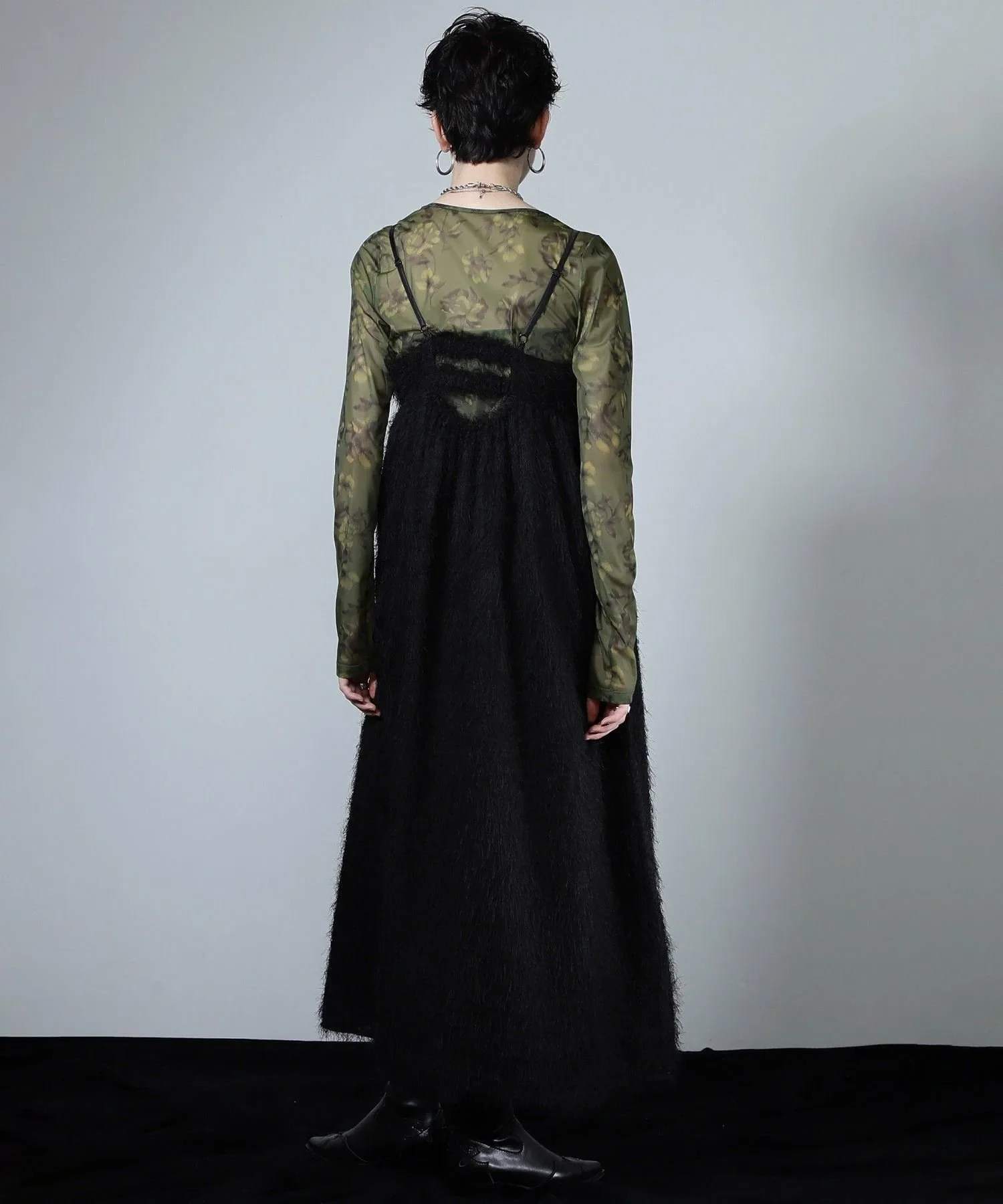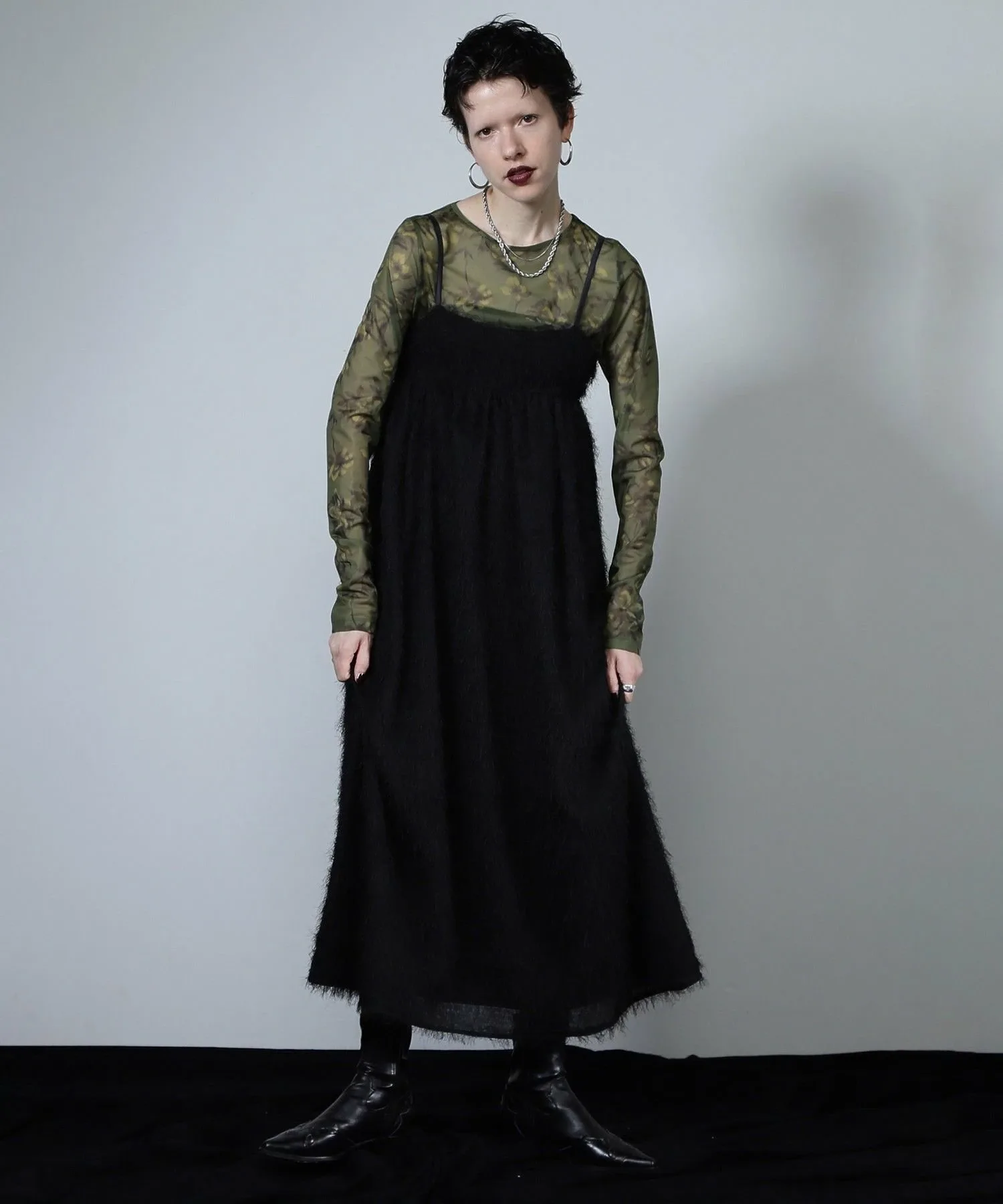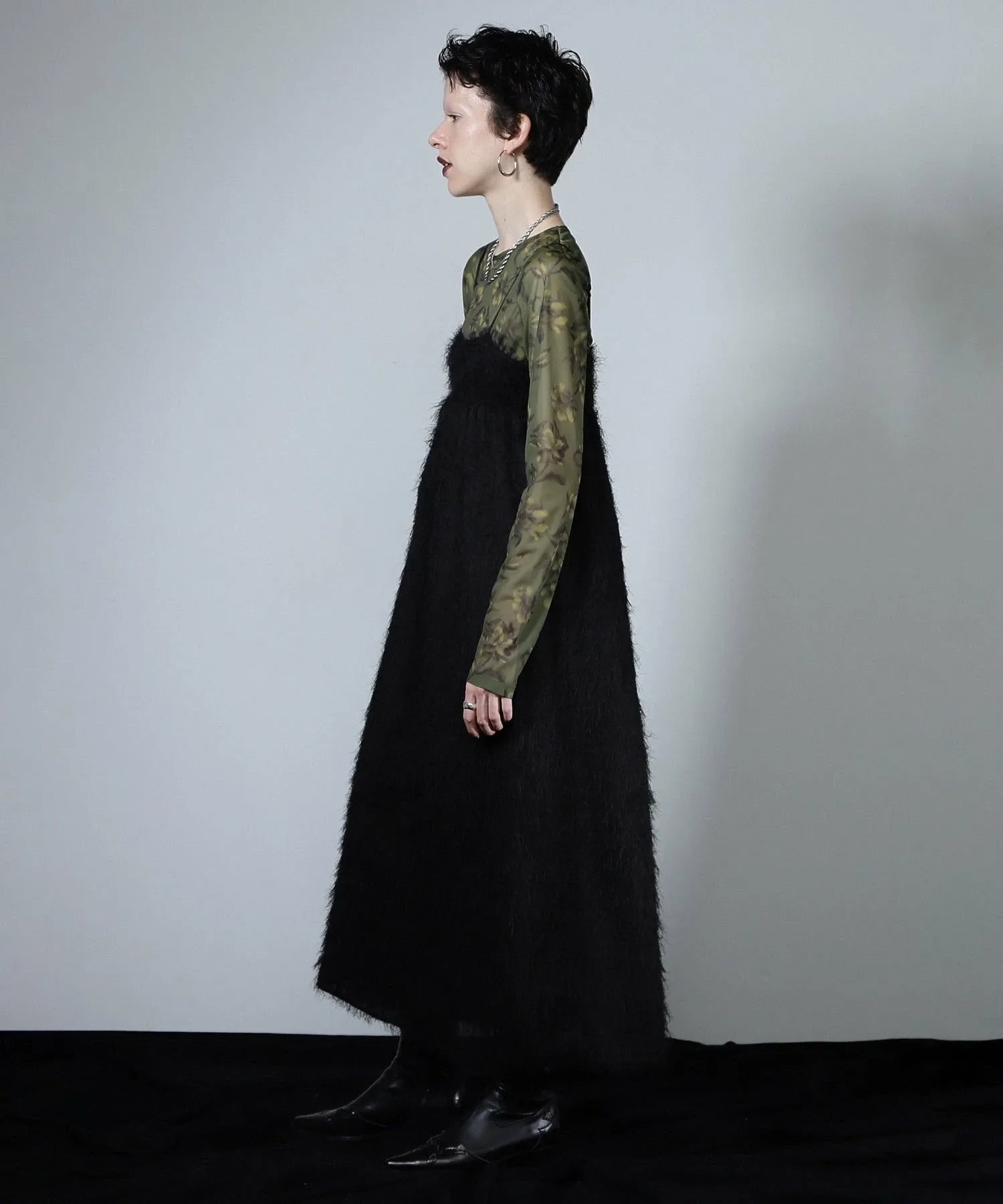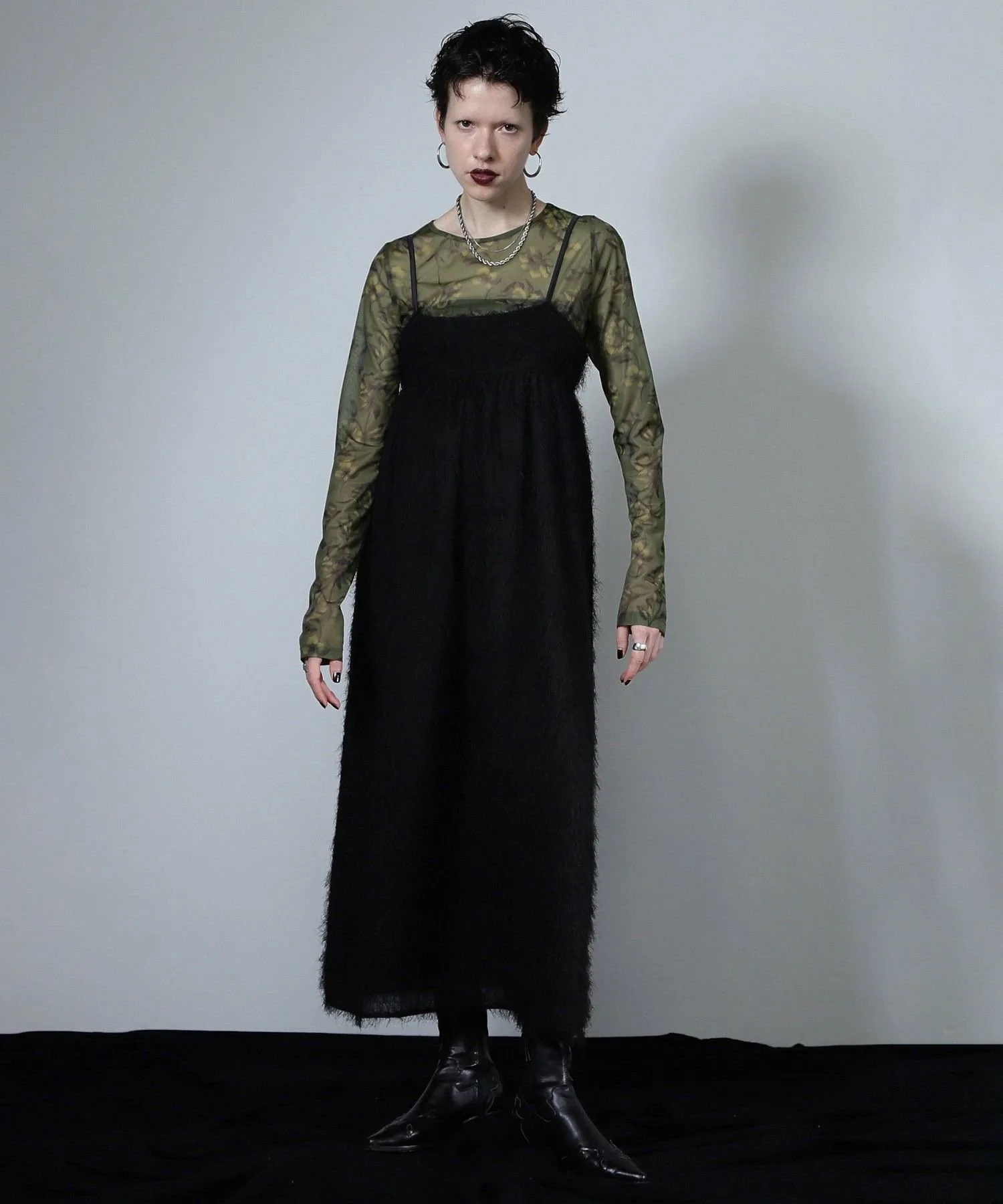 Мягкая текстура этого пушистого платья-комбинации придает ему женственный и нежный вид.