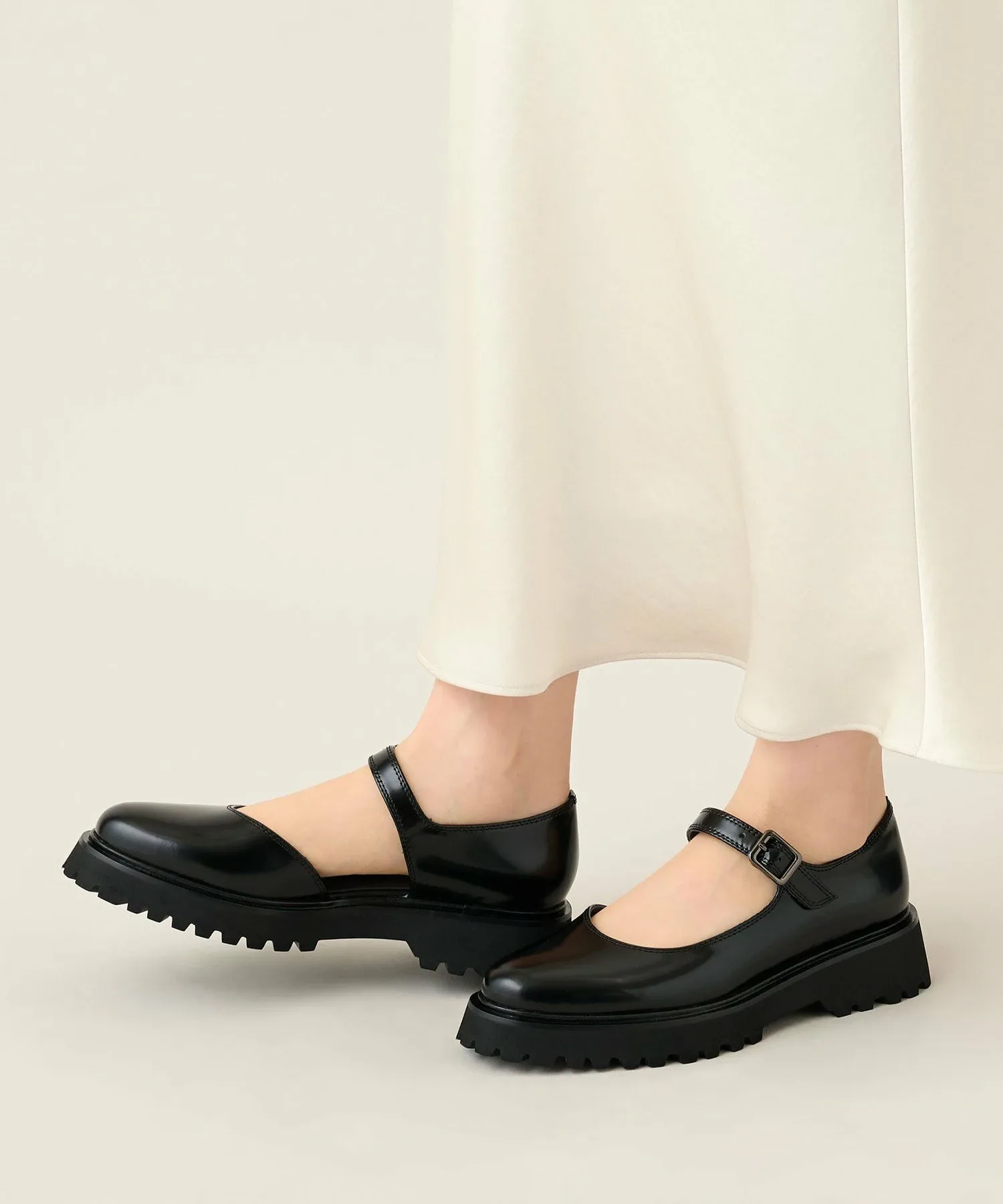 Толстая текстурированная подошва создает непринужденную атмосферу, придавая обуви объем, а расклешенный дизайн уравновешивает ее, не делая слишком тяжелой.