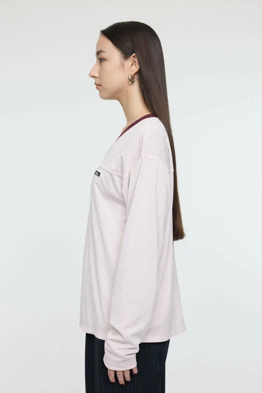 Футболка с длинными рукавами, выполненная из двустороннего сетчатого и трикотажного материала.