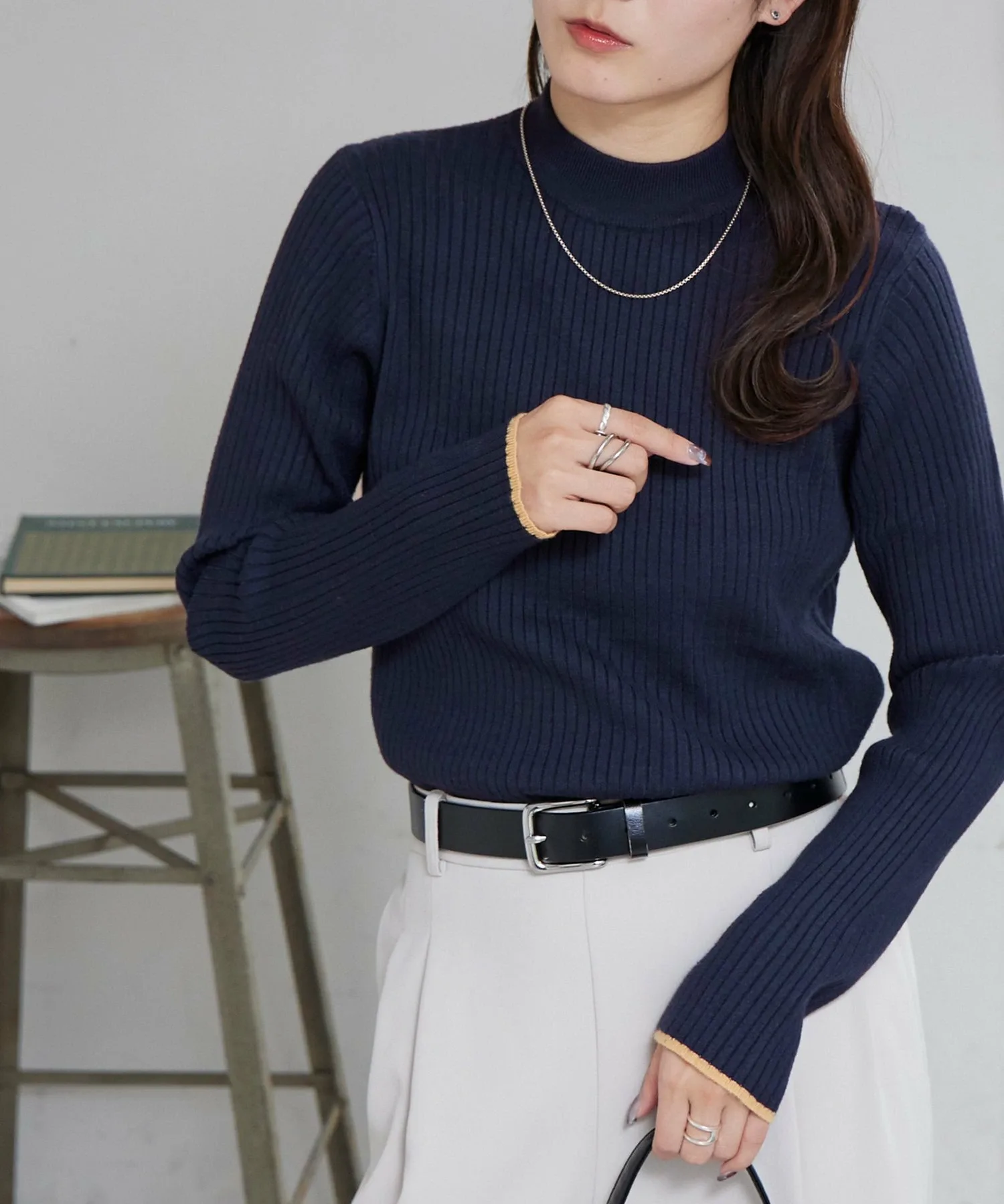Вязаный пуловер с приятной на ощупь текстурой. Ребристый дизайн обеспечивает комфортную посадку, не слишком облегая тело, а простые контрастные цветные линии на манжетах добавляют акцент. Простой дизайн позволяет легко сочетать его с различными стилями одежды, и он наверняка подойдет для самых разных образов. Доступны в широком ассортименте цветов, вам захочется купить их разных расцветок♪