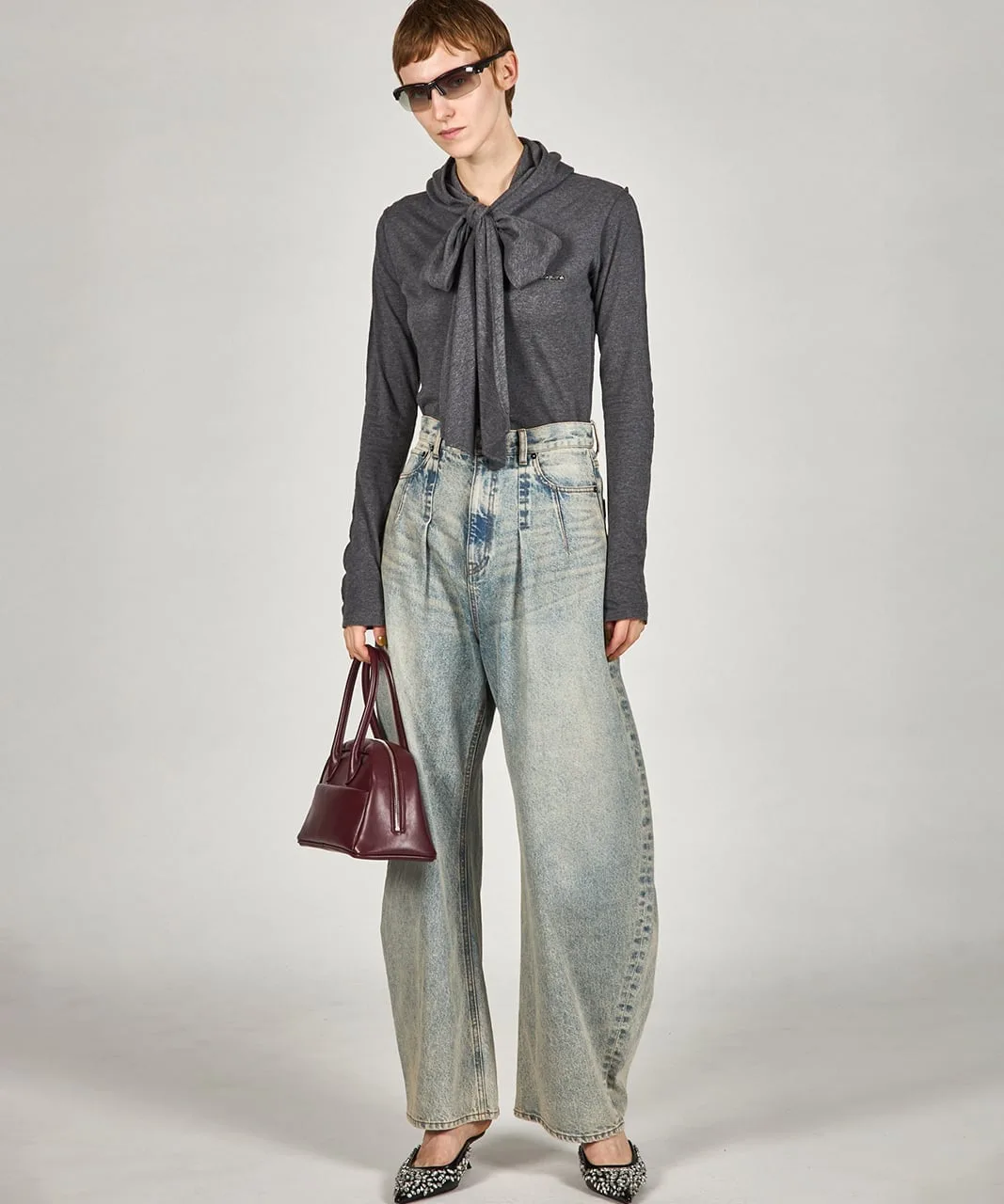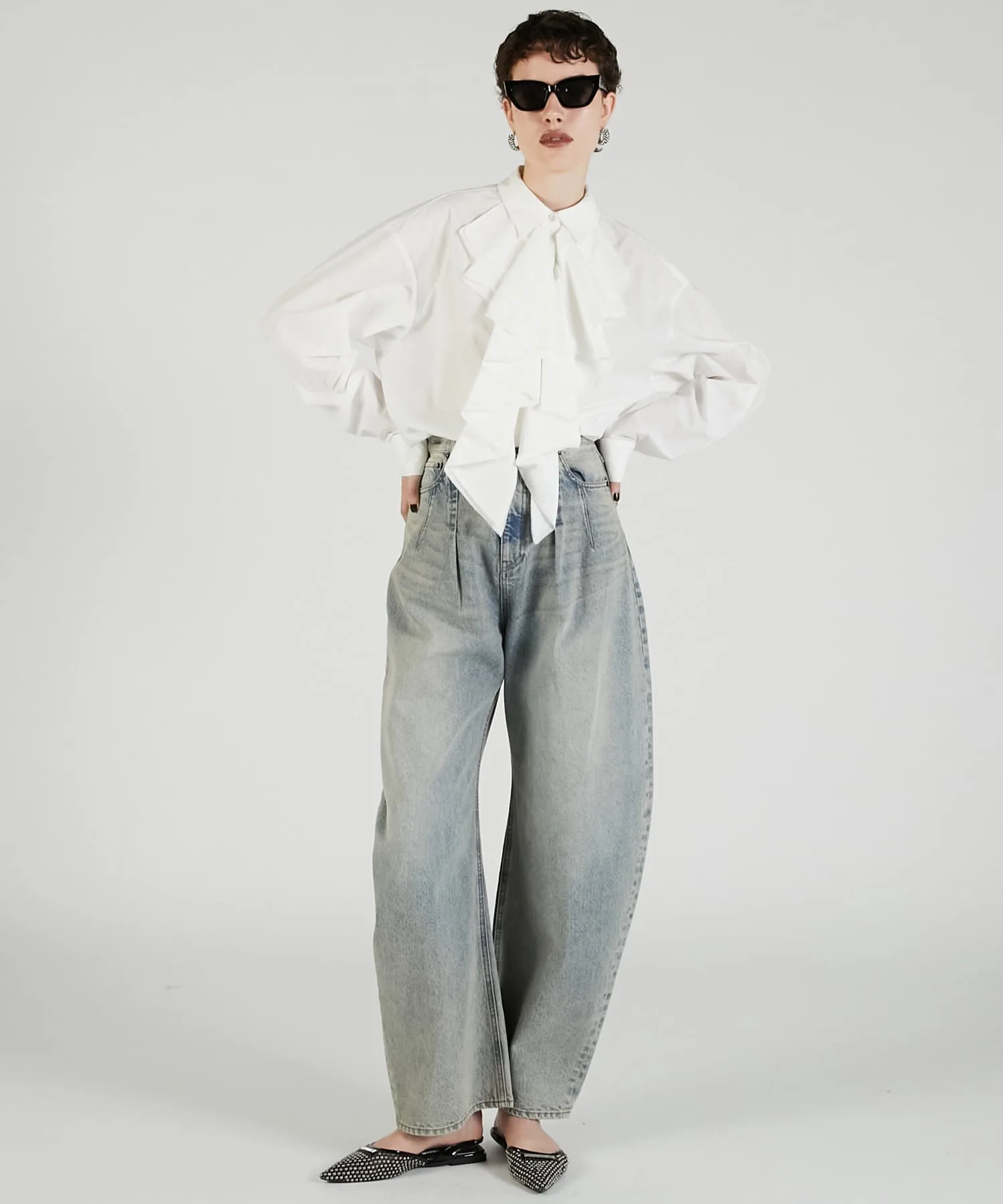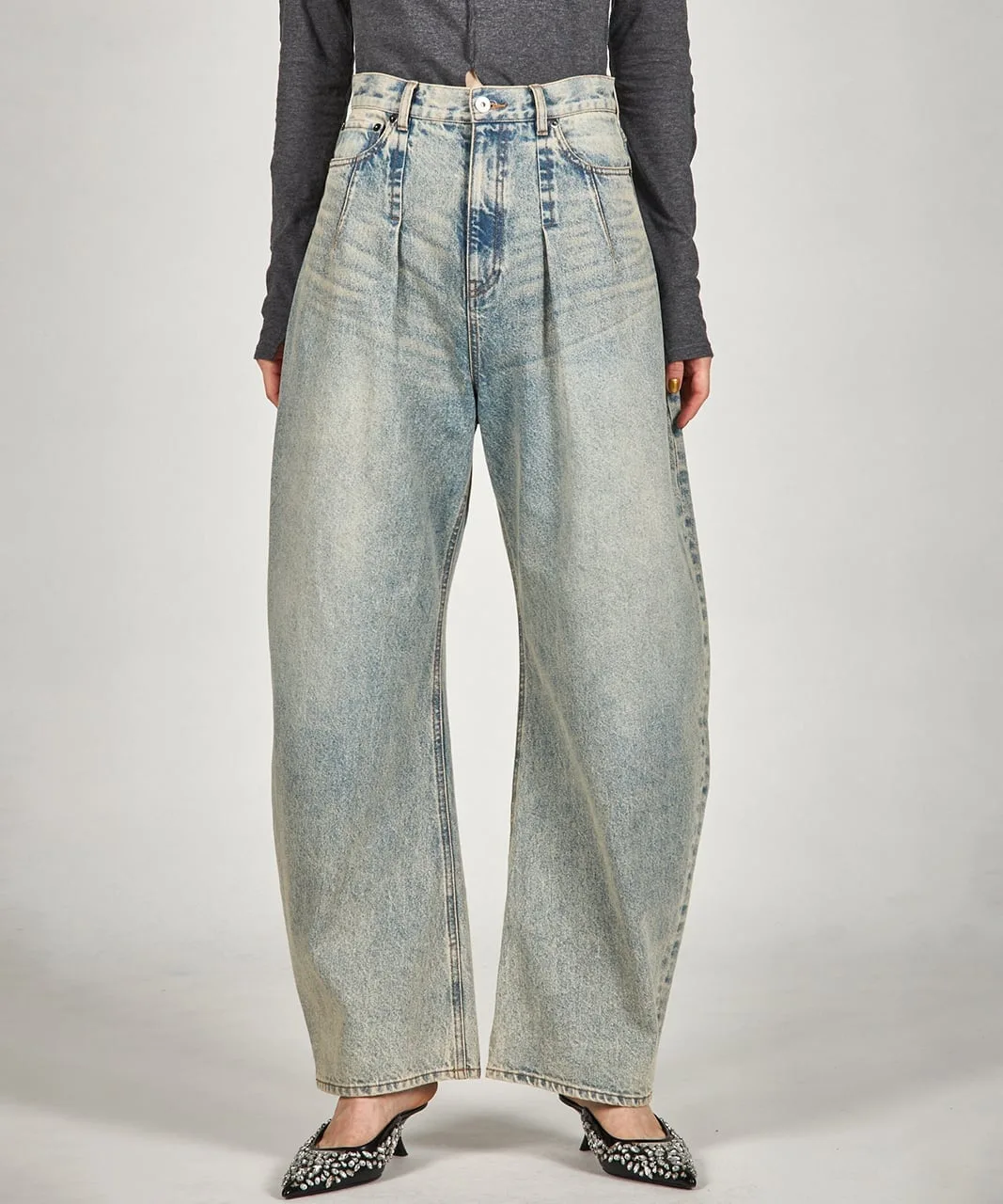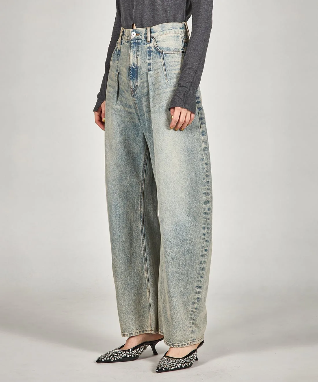 Джинсовые брюки с выразительным силуэтом.