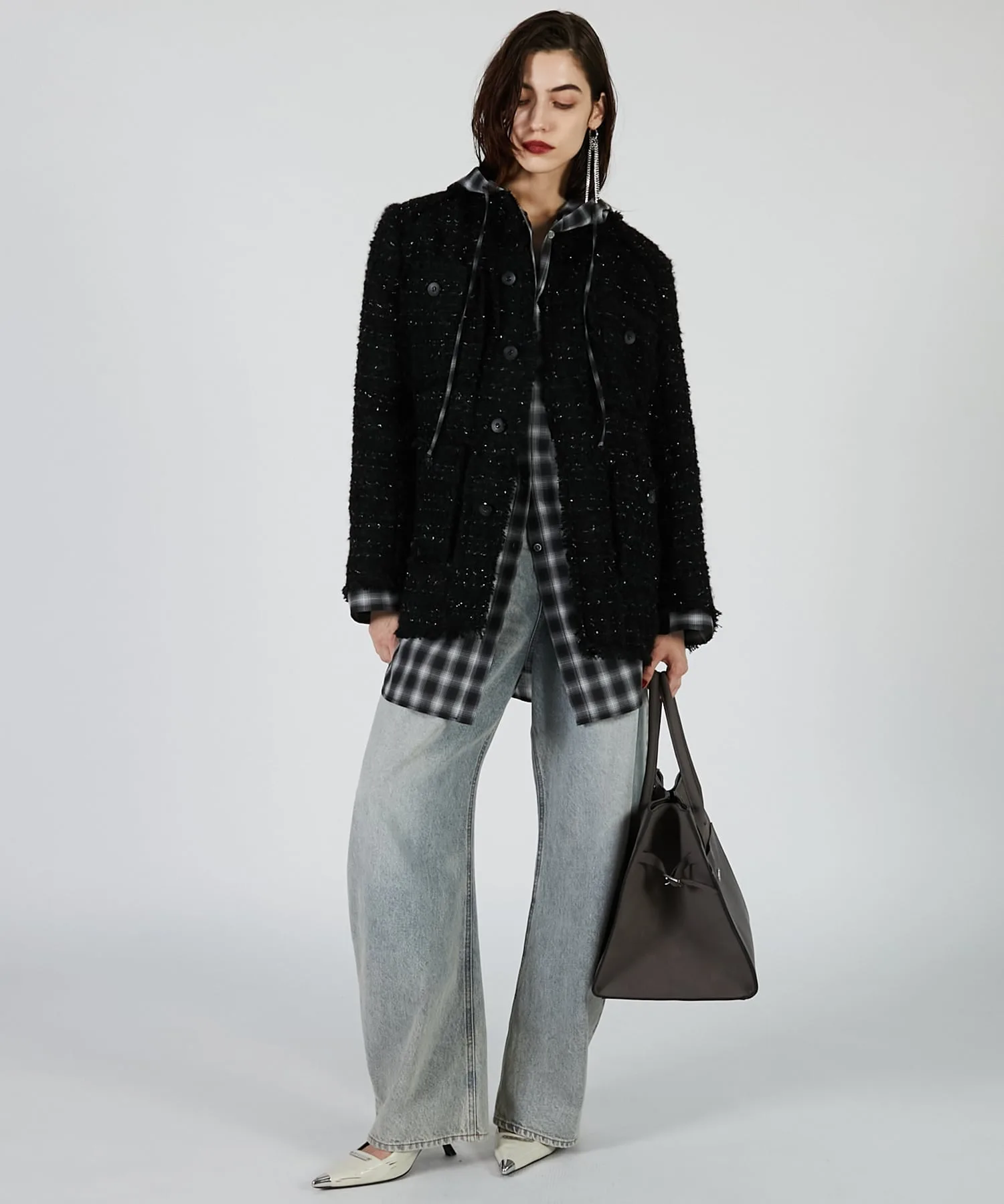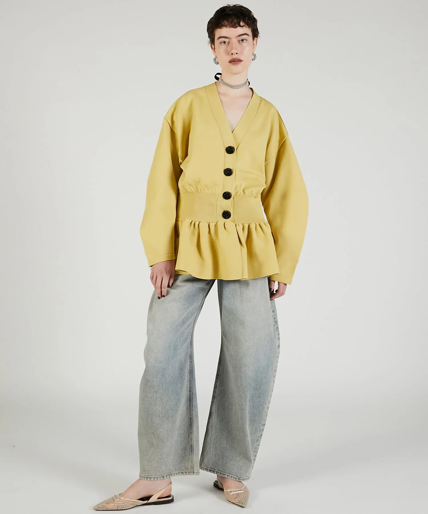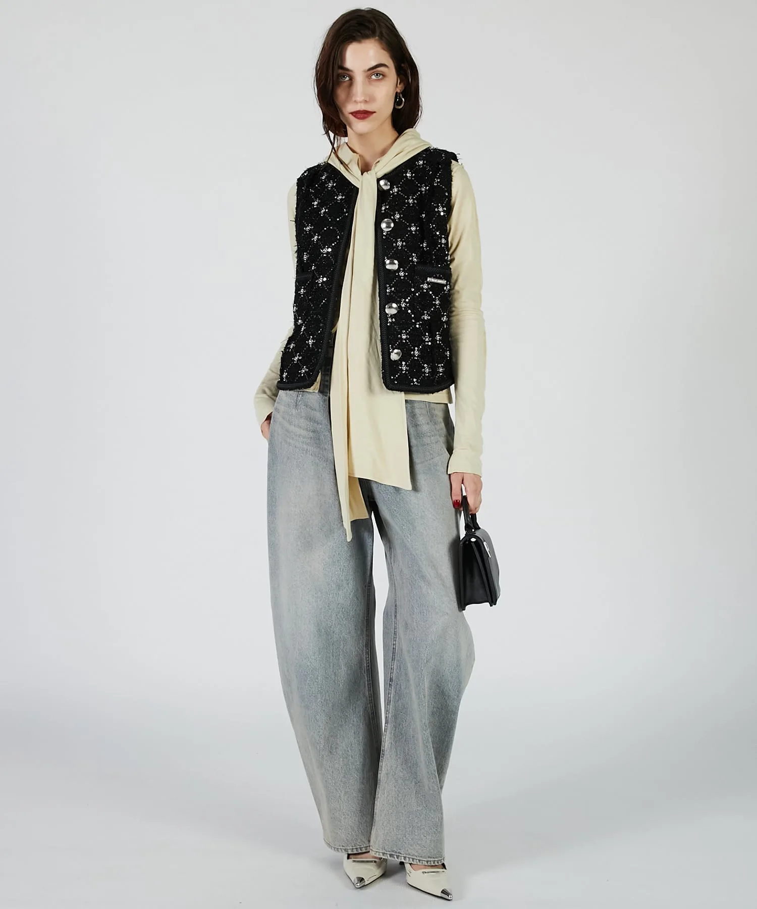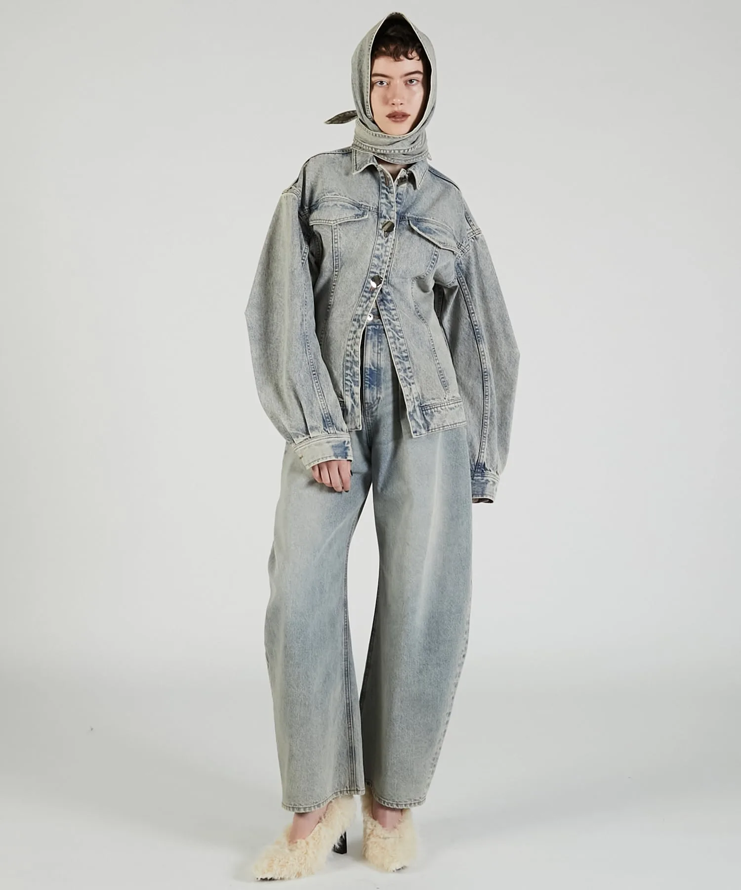 Джинсовые брюки с выразительным силуэтом.