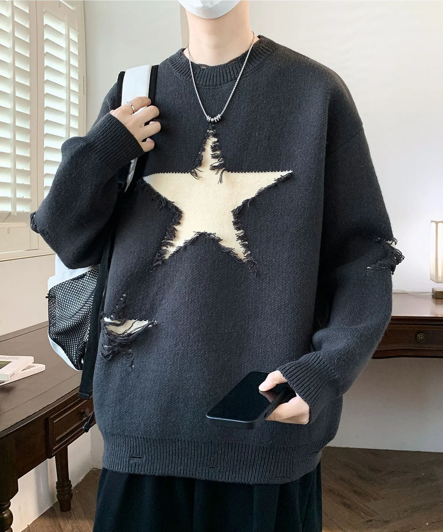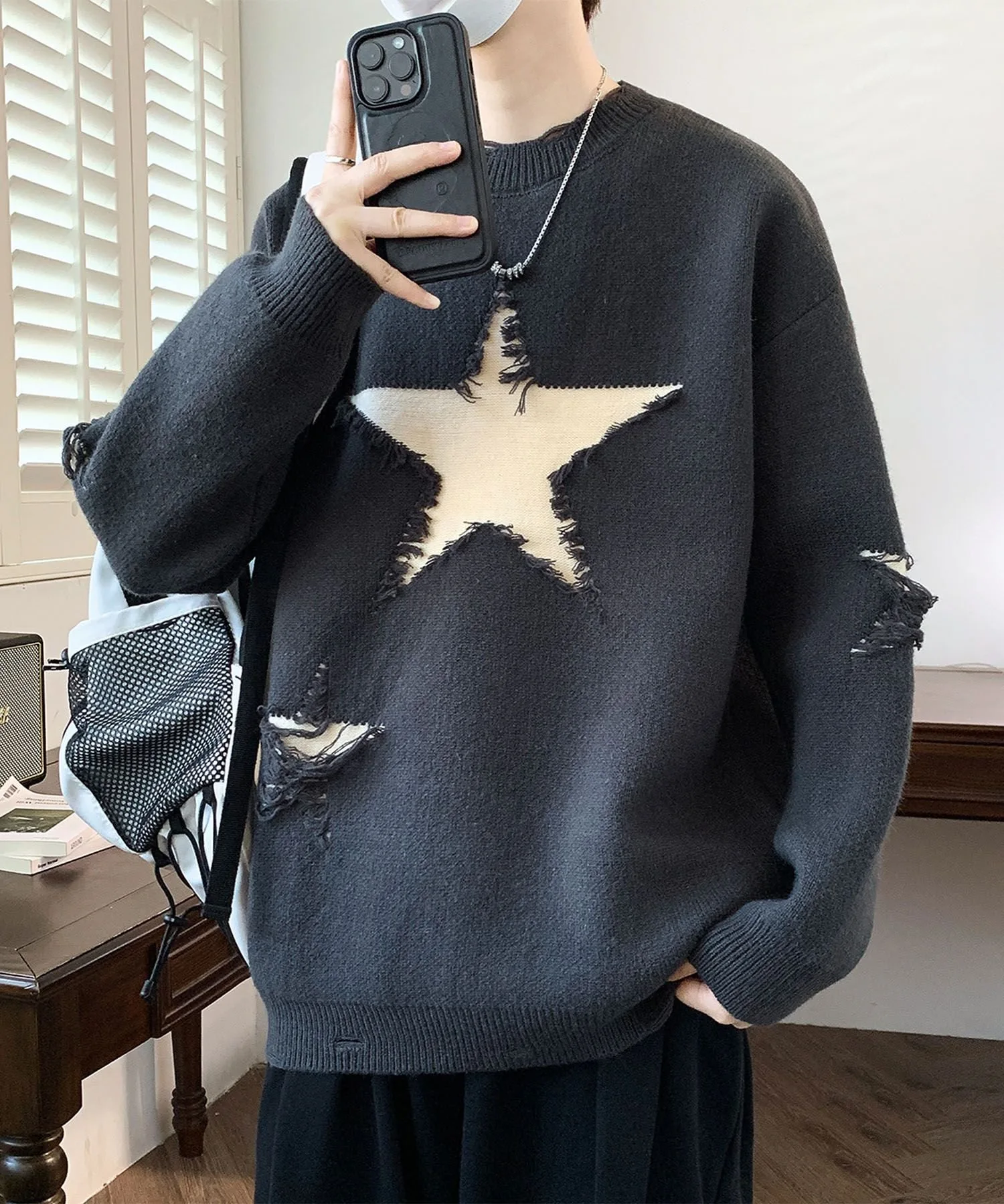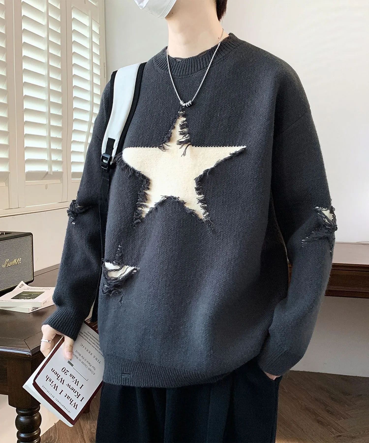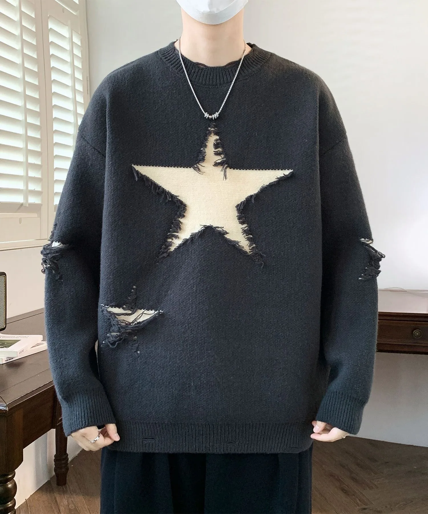 Вязаный пуловер с впечатляющим звездным мотивом.