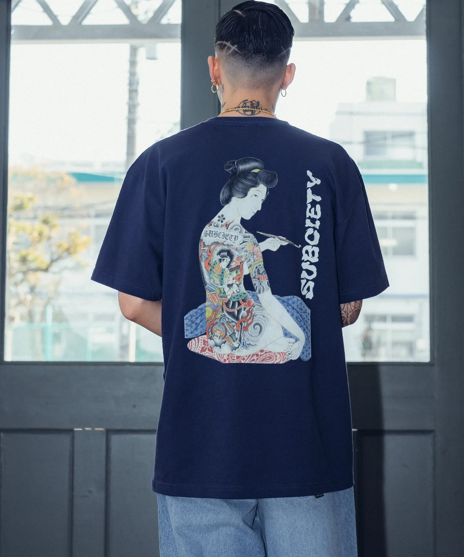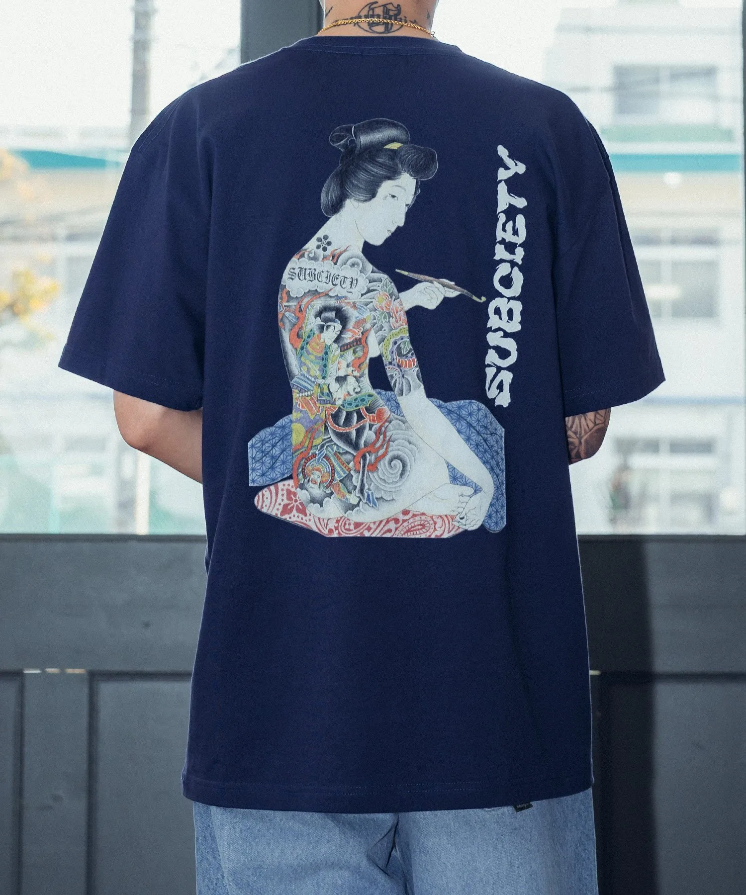 Футболка с принтом, в котором использован мотив укиё-э «Женщина после ванны» в интерпретации бренда.