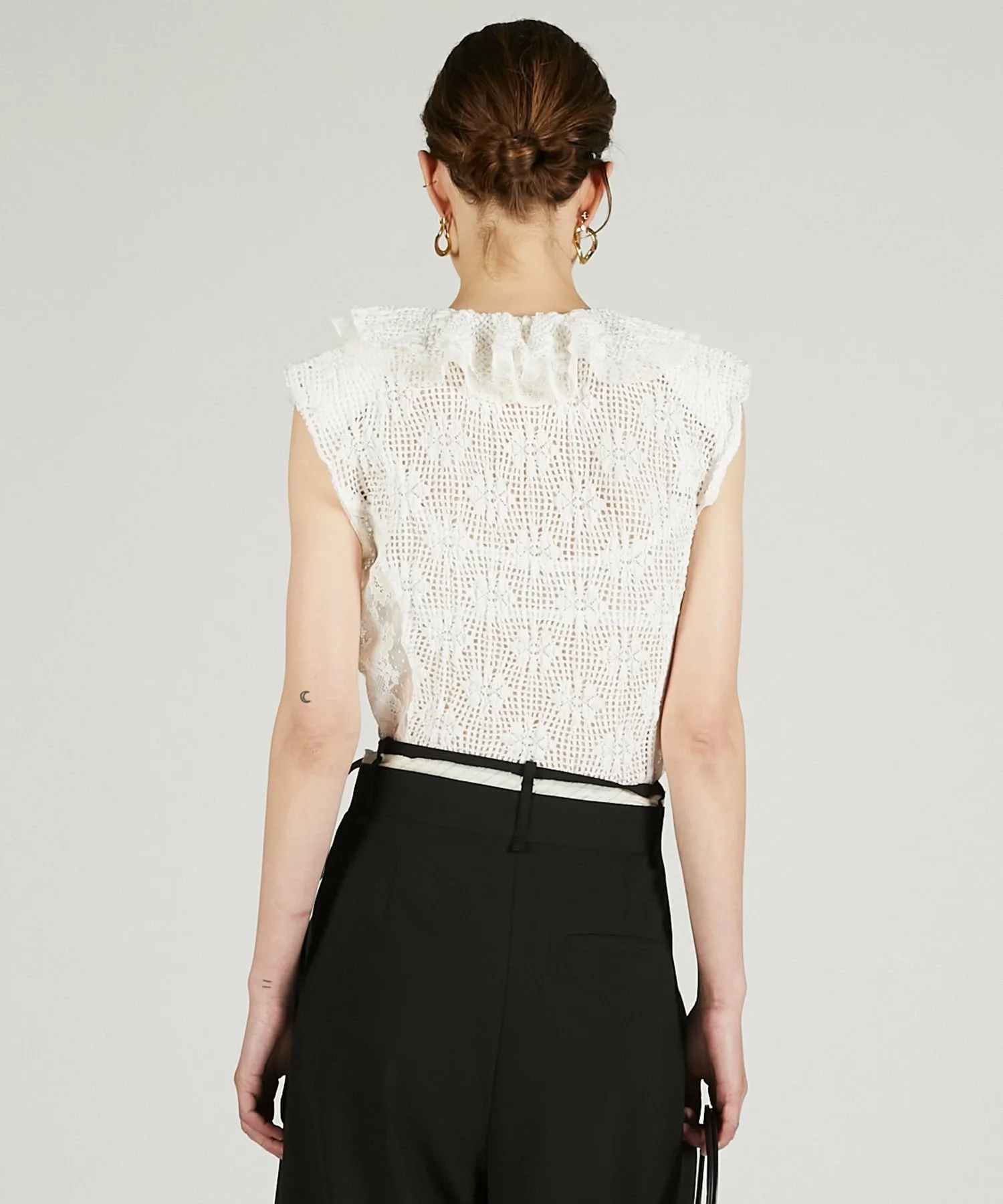 Боди, выполненное из двух видов кружева. Оно эластичное и удобное в ношении.