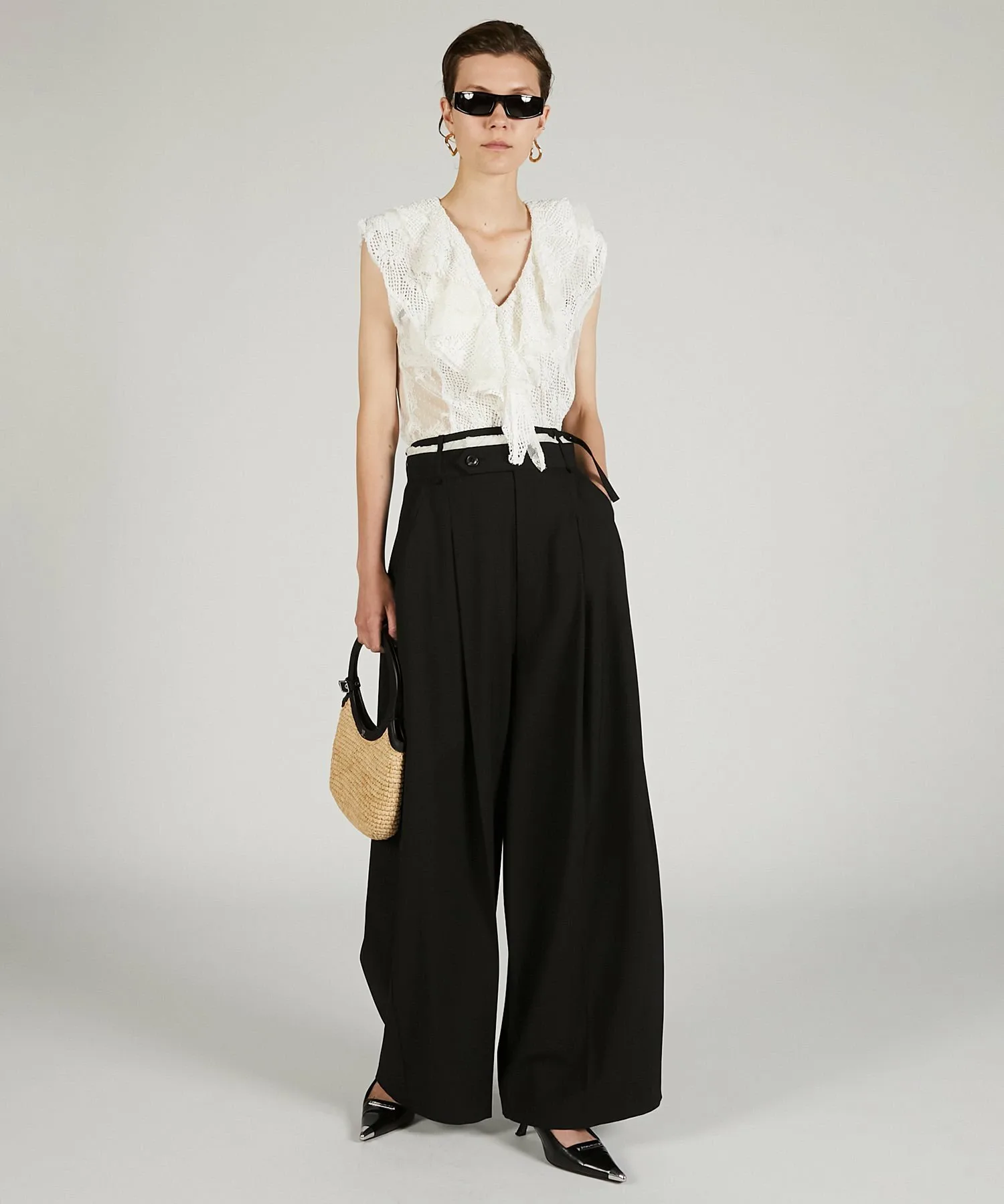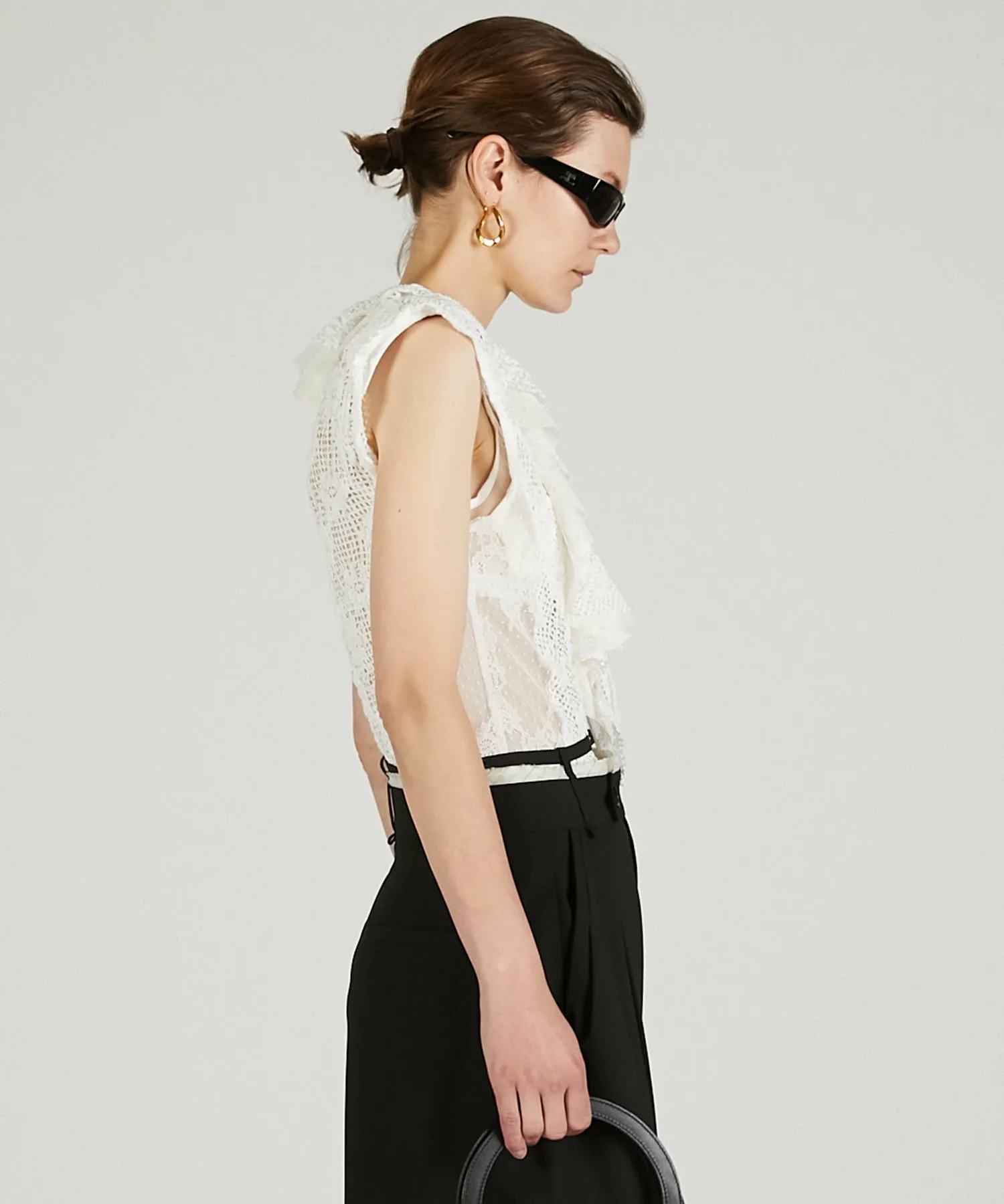 V-образный вырез создает аккуратный силуэт вокруг лица.