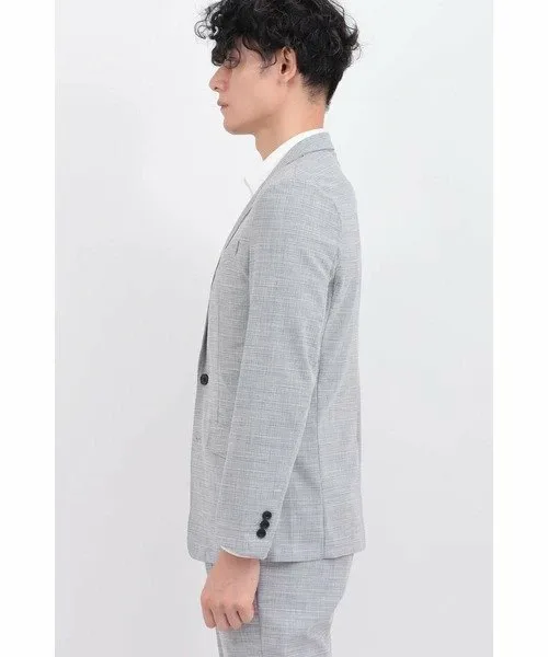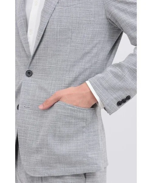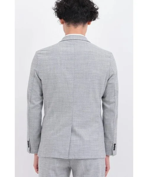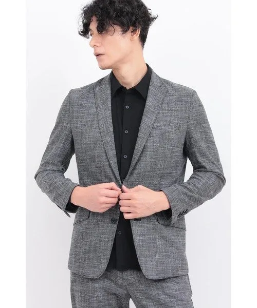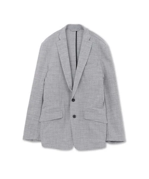 Однослойный приталенный жакет из эластичной ткани TR с неоднородной текстурой. Отличительная особенность: компактный силуэт и меланжевая поверхность.