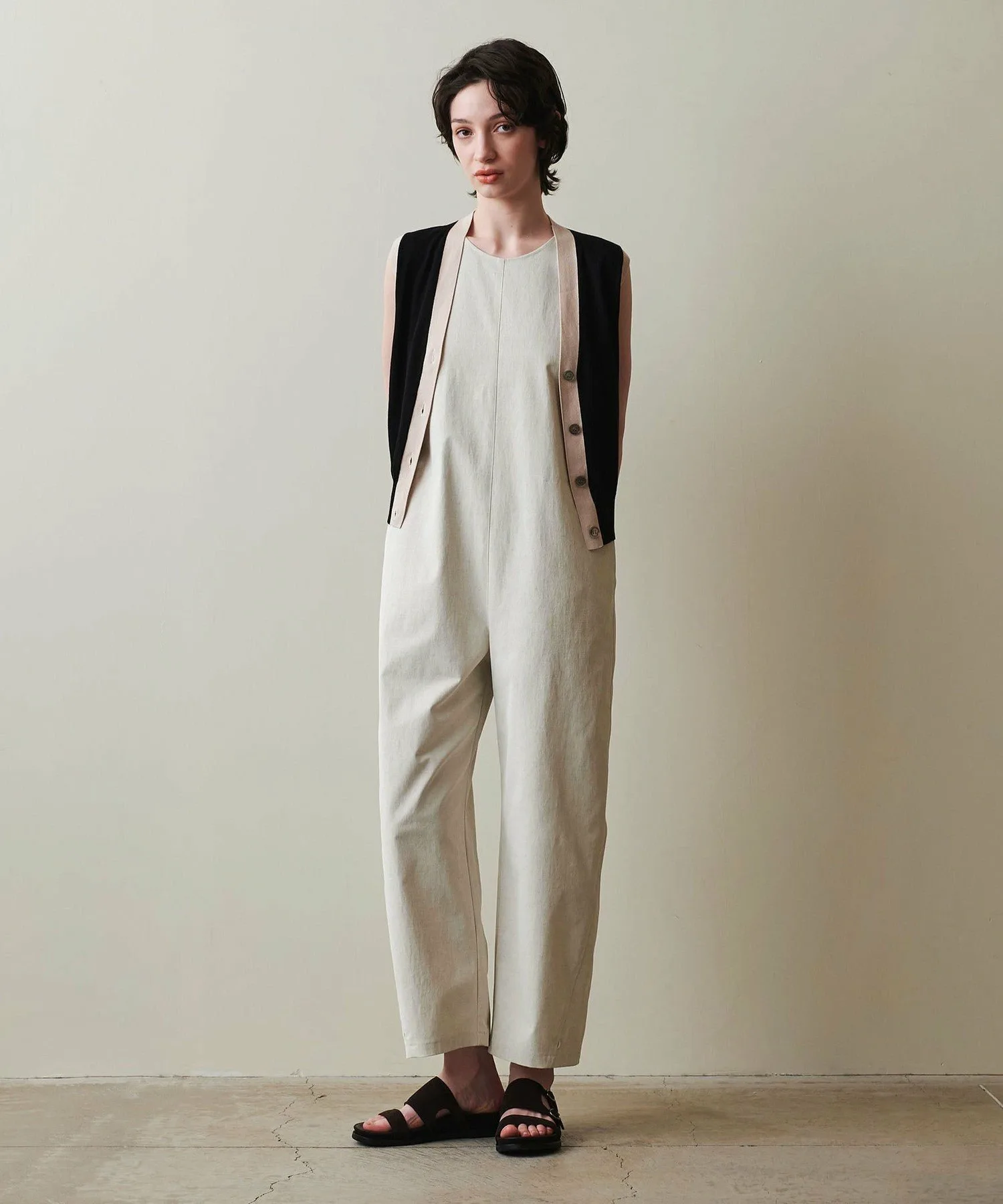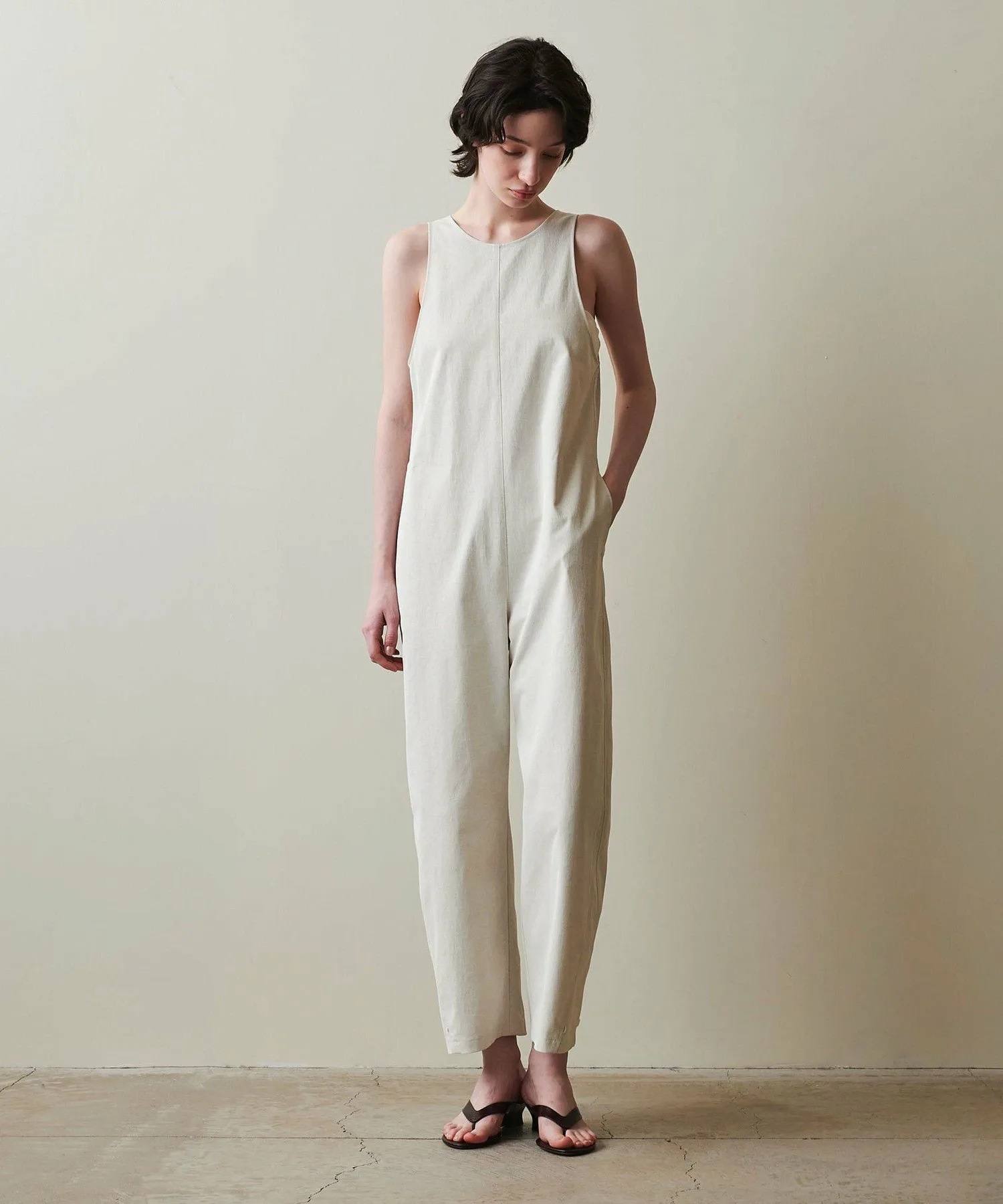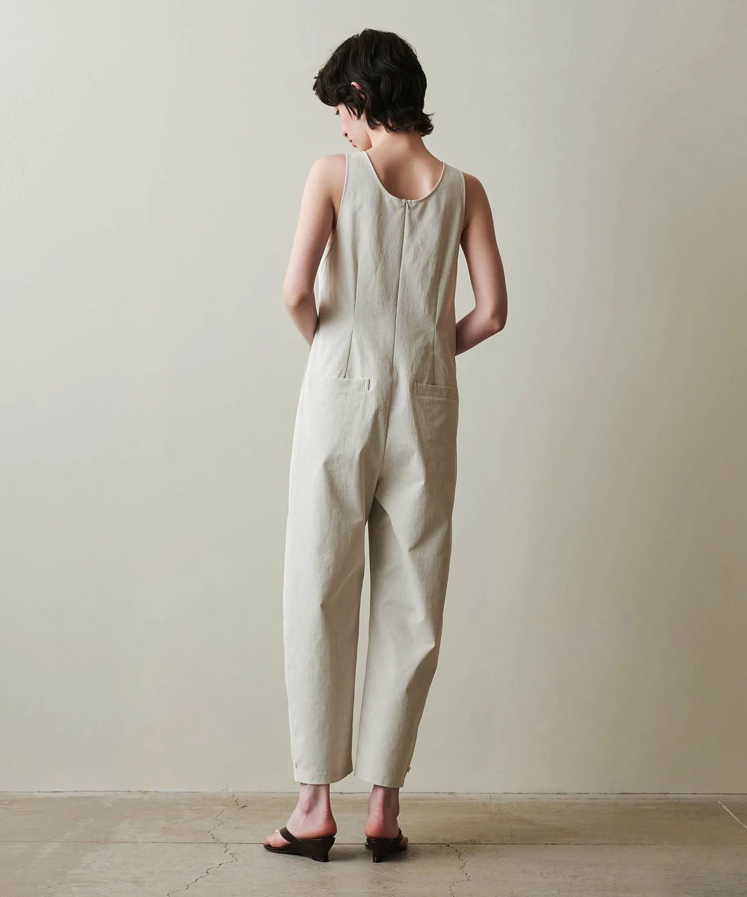 Этот комбинезон изготовлен из гладкого материала с натуральной текстурой.