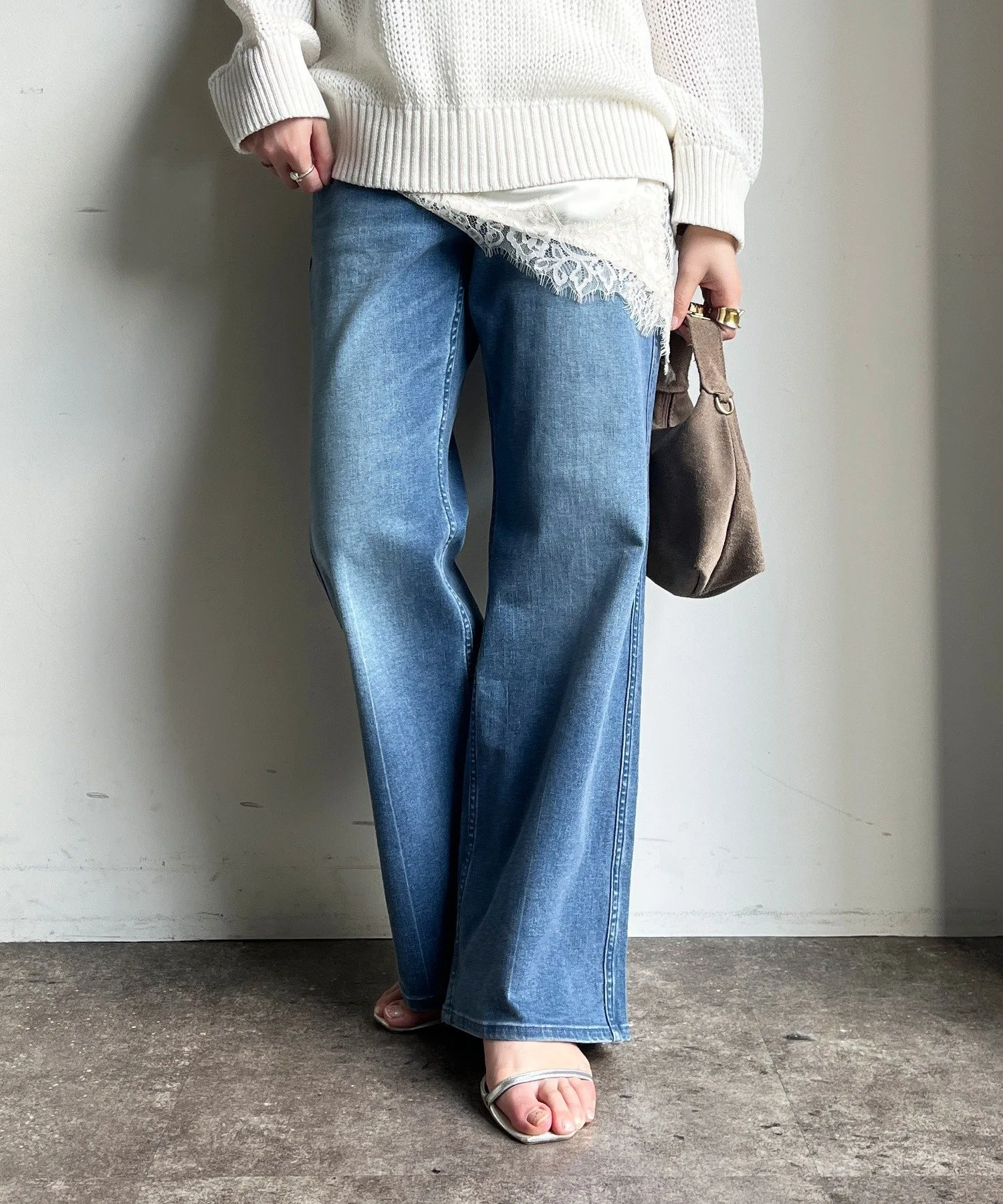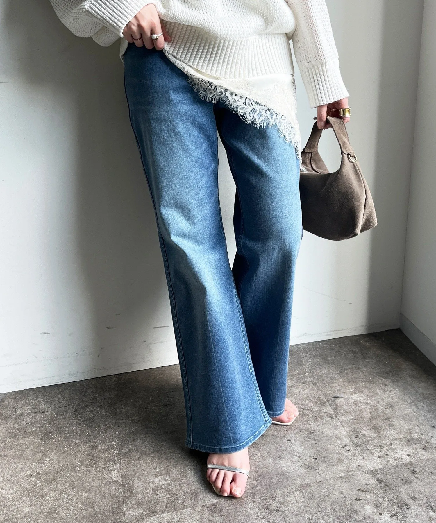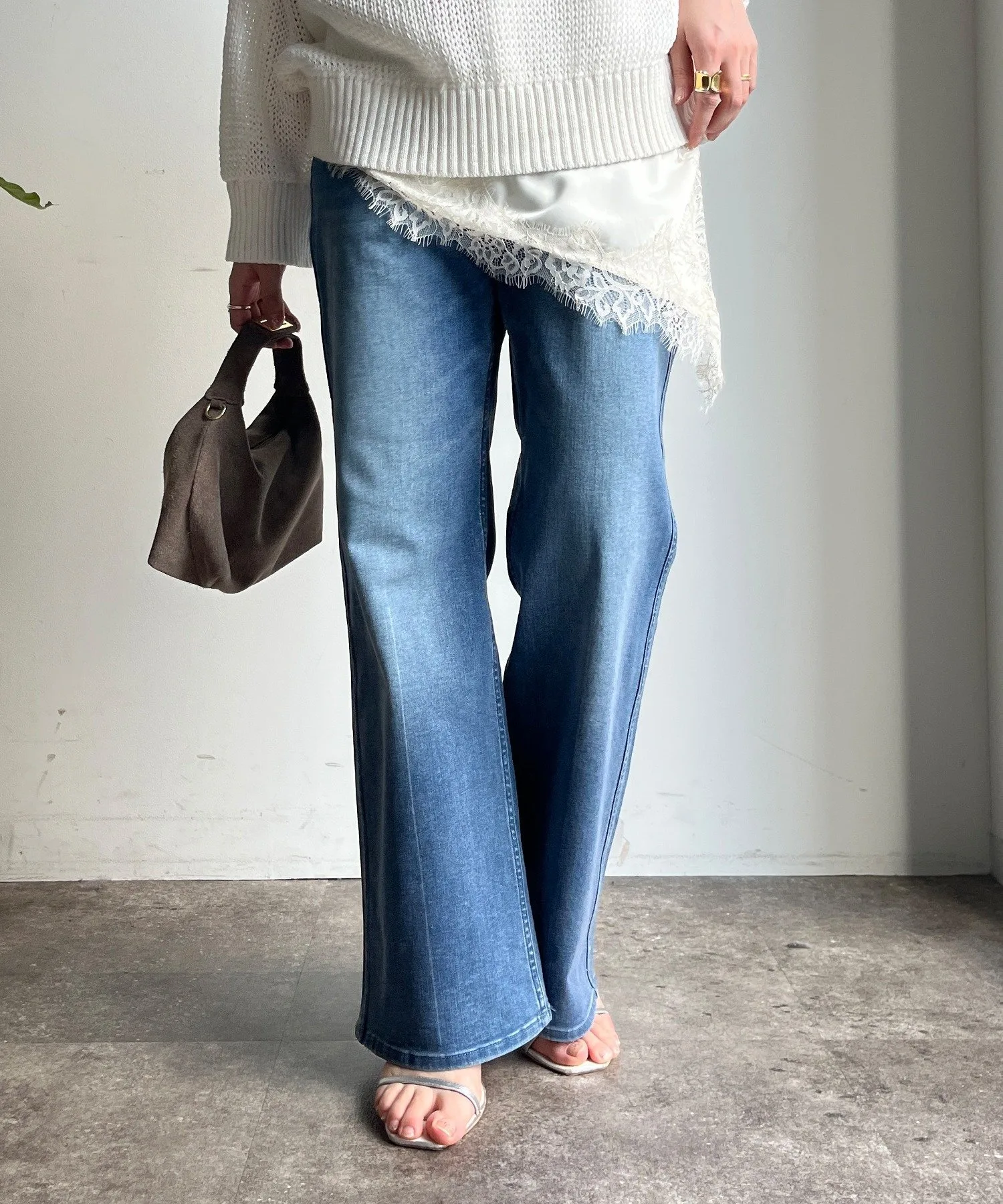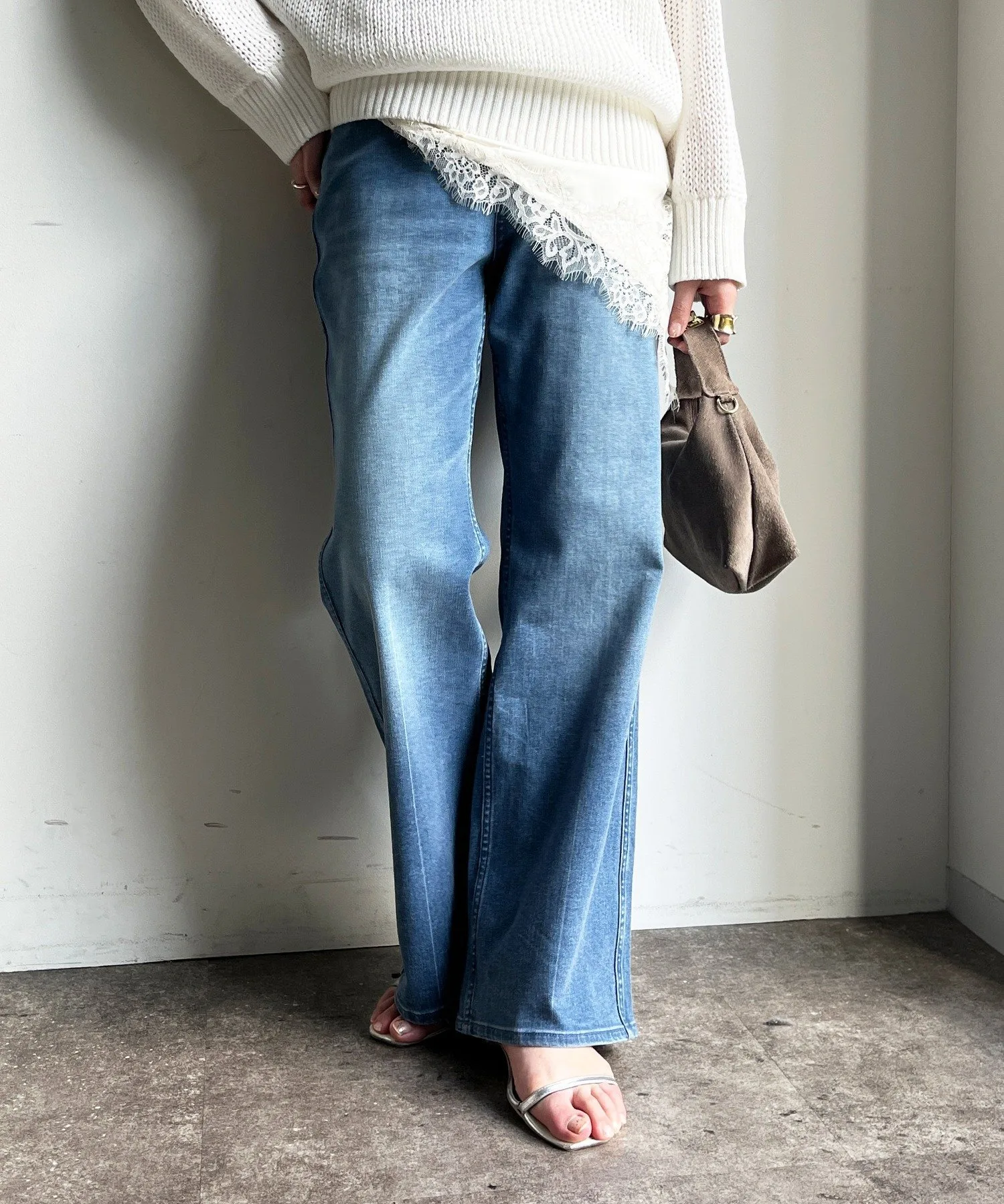 Мягкий, эластичный деним-клеш.