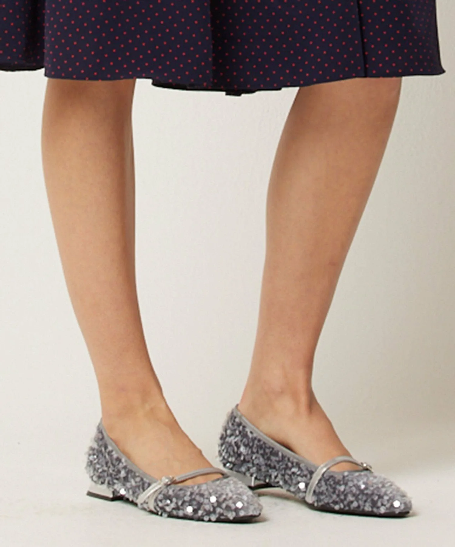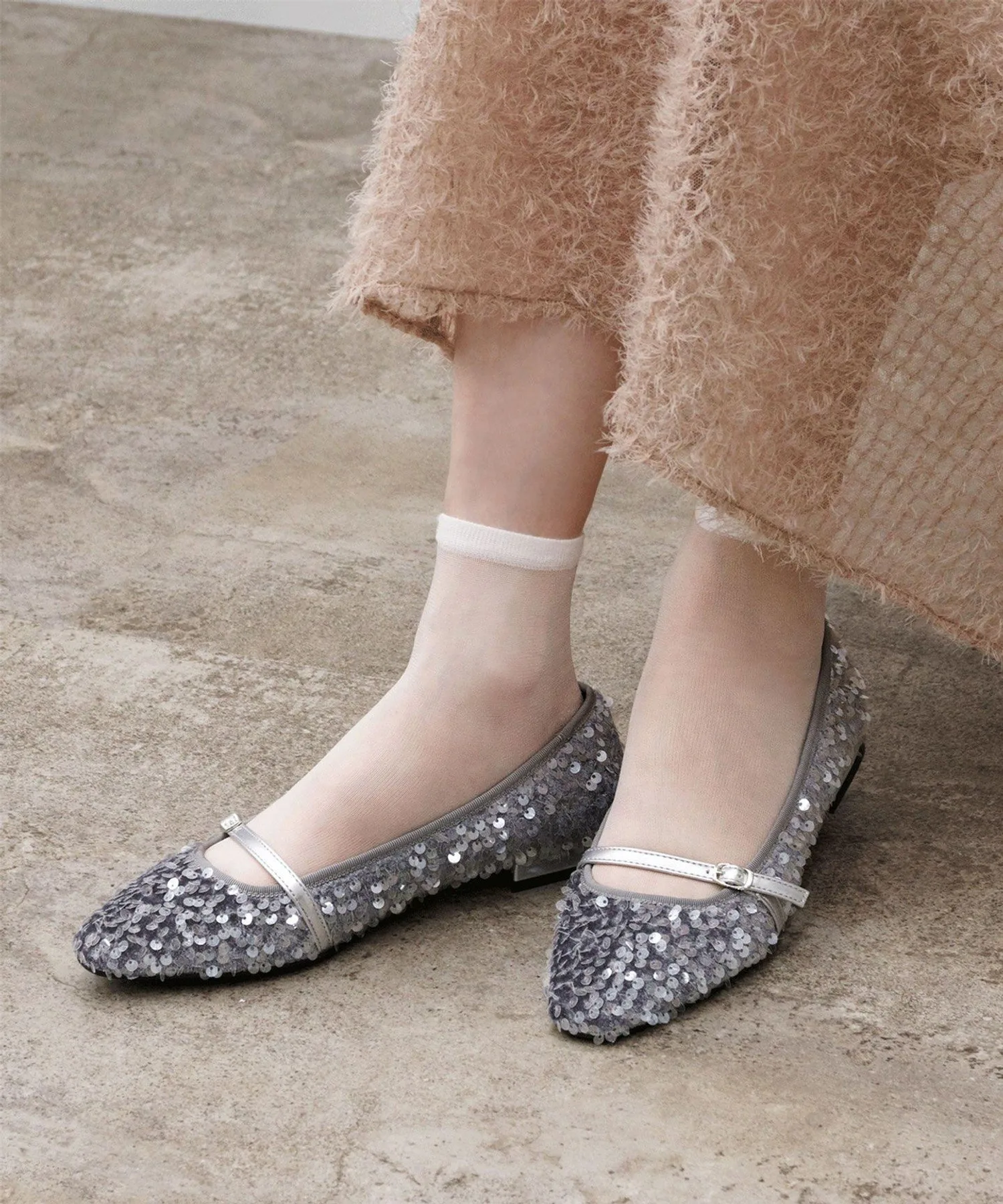 Эти туфли сочетают в себе балетки и модный материал с пайетками. Мы выбрали слегка приподнятую подошву, чтобы создать красивый образ, не слишком повседневный. Ремешок на подъеме облегчает ходьбу и добавляет тонкий дизайнерский акцент. Они рекомендуются для сочетания с женственными моделями, такими как платья и юбки, а также с повседневными джинсами. Это вещь, которая будет выделяться уже одним своим появлением и добавит нотку современного стиля.