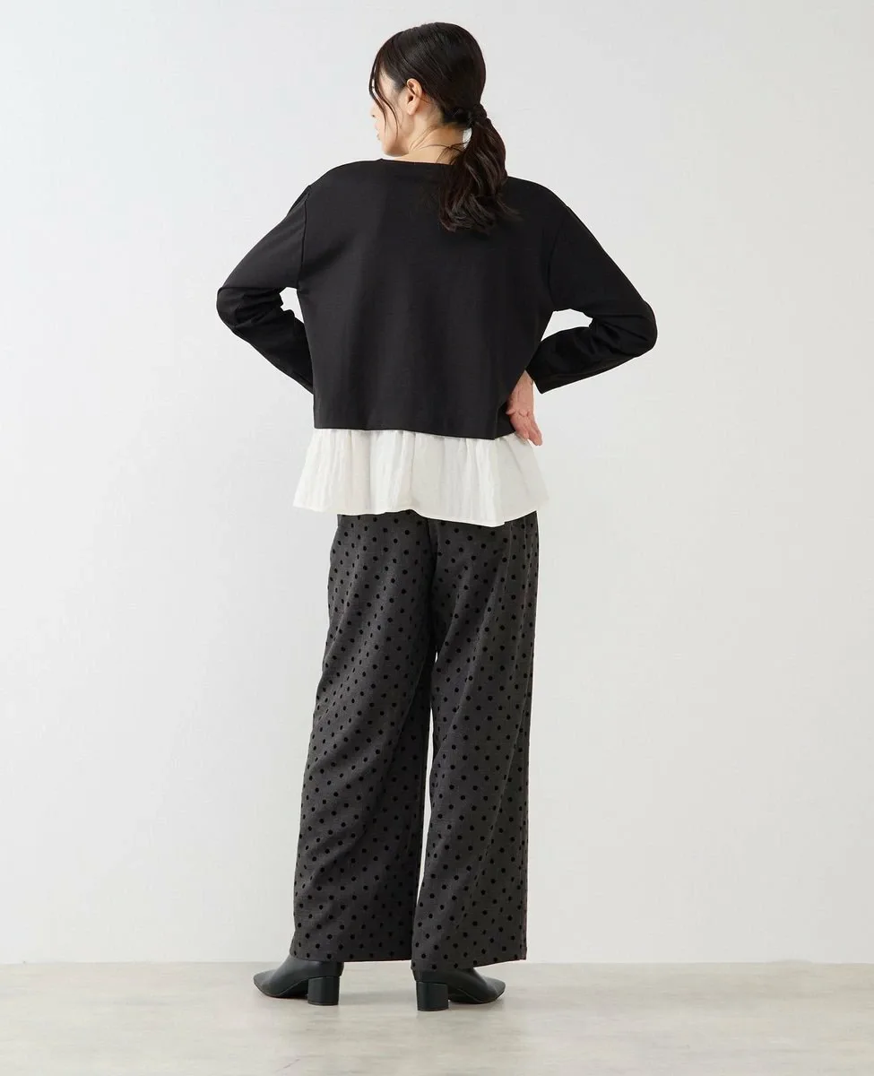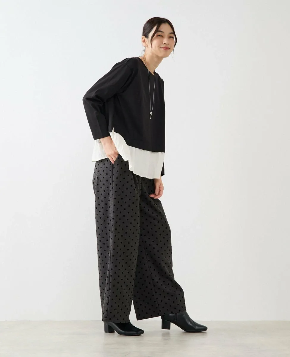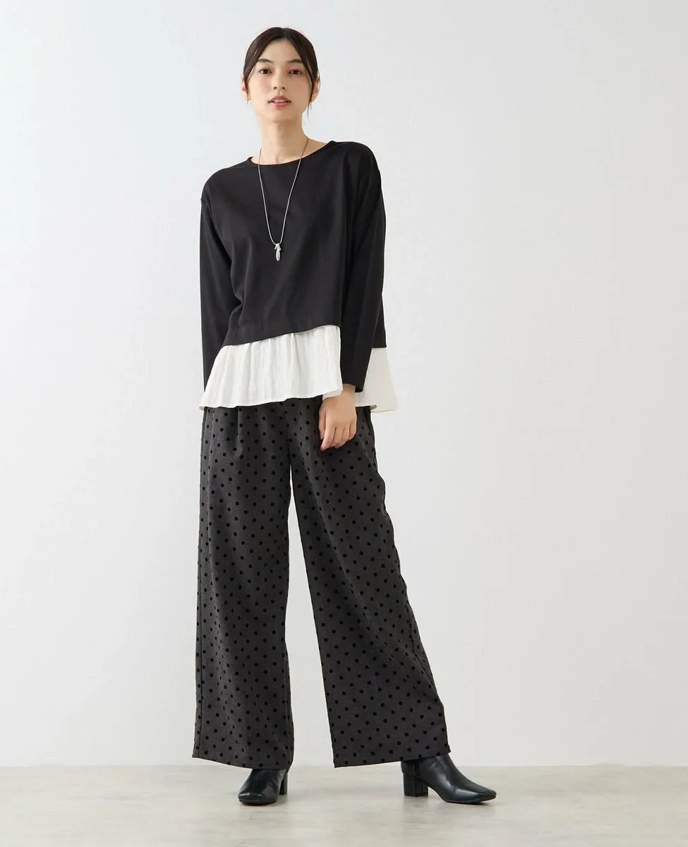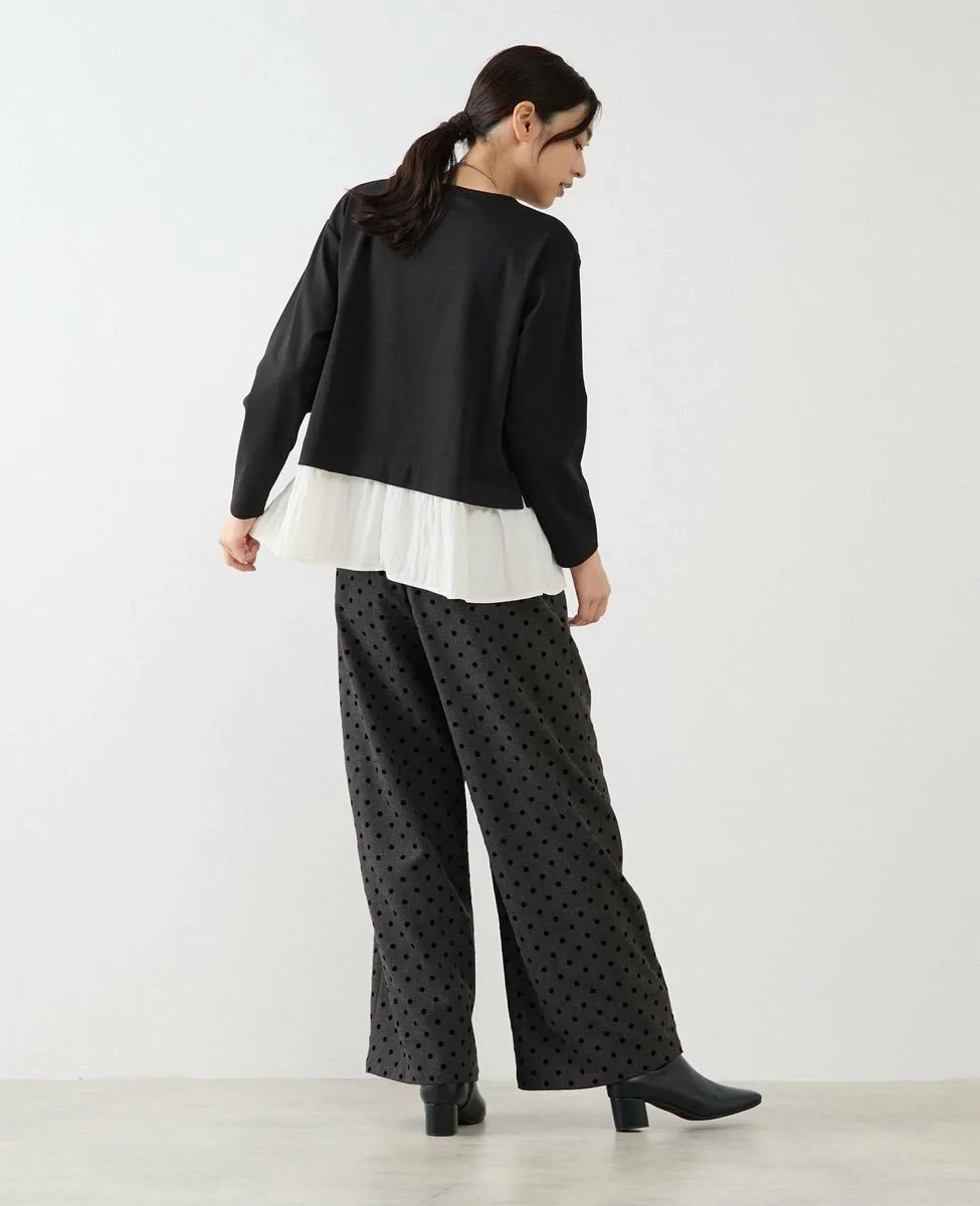 К подолу прикреплена мятая ткань с легким блеском. Это придает изделию слегка элегантный вид, не делая его слишком повседневным, что делает его подходящим для самых разных случаев. Доступен в ассортименте однотонных и полосатых цветов.
