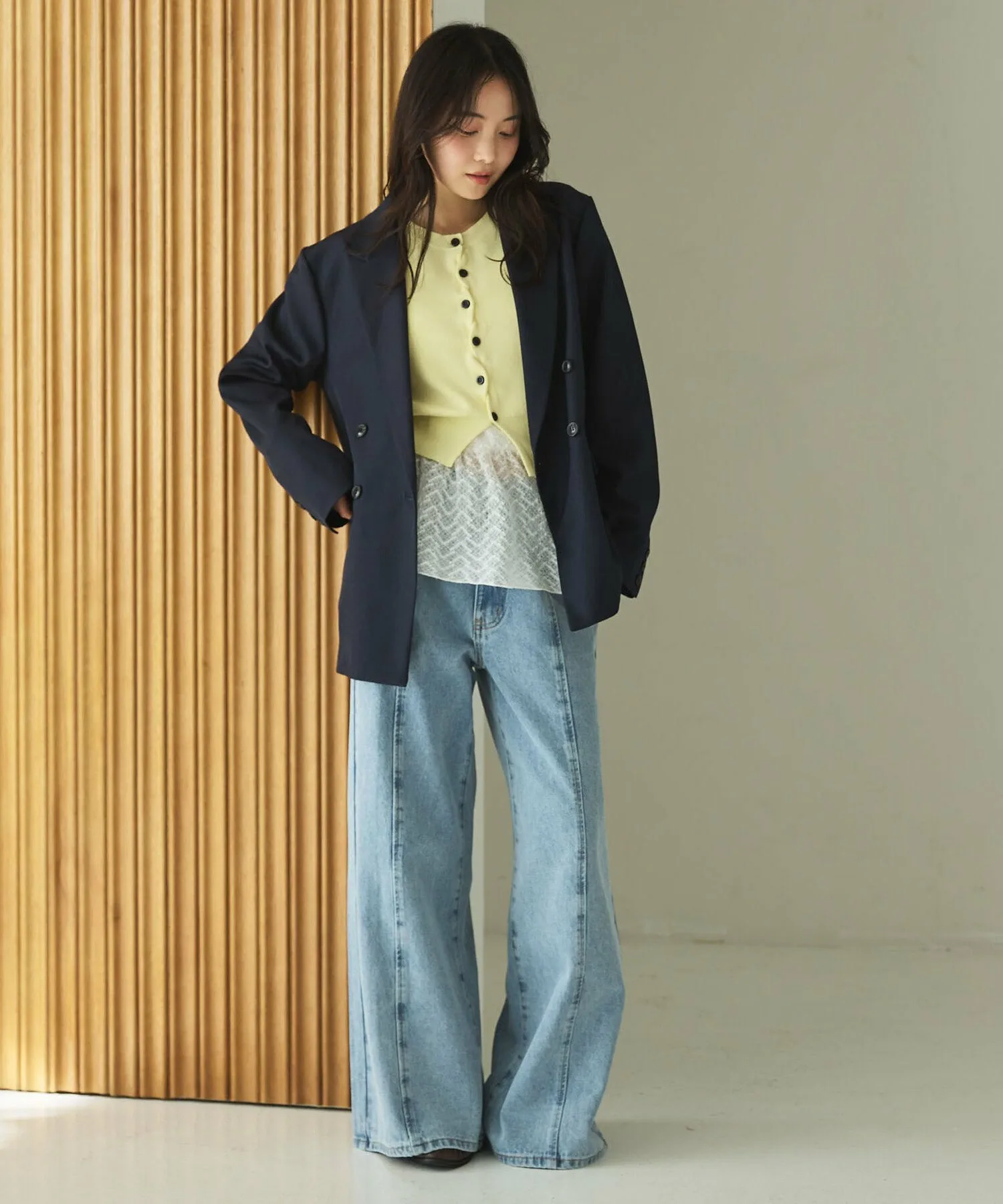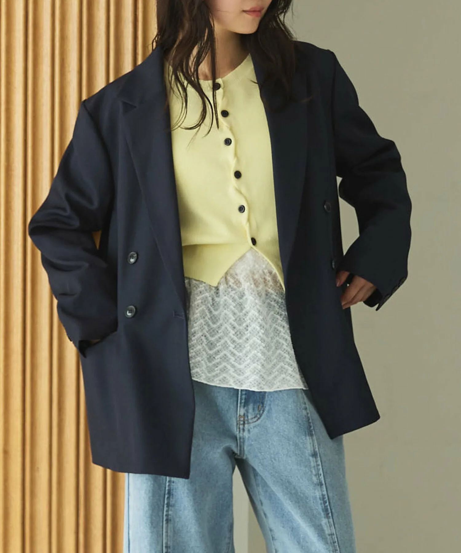 - Двойные пуговицы делают его расслабленным, а прямой крой придает ему аккуратный вид.