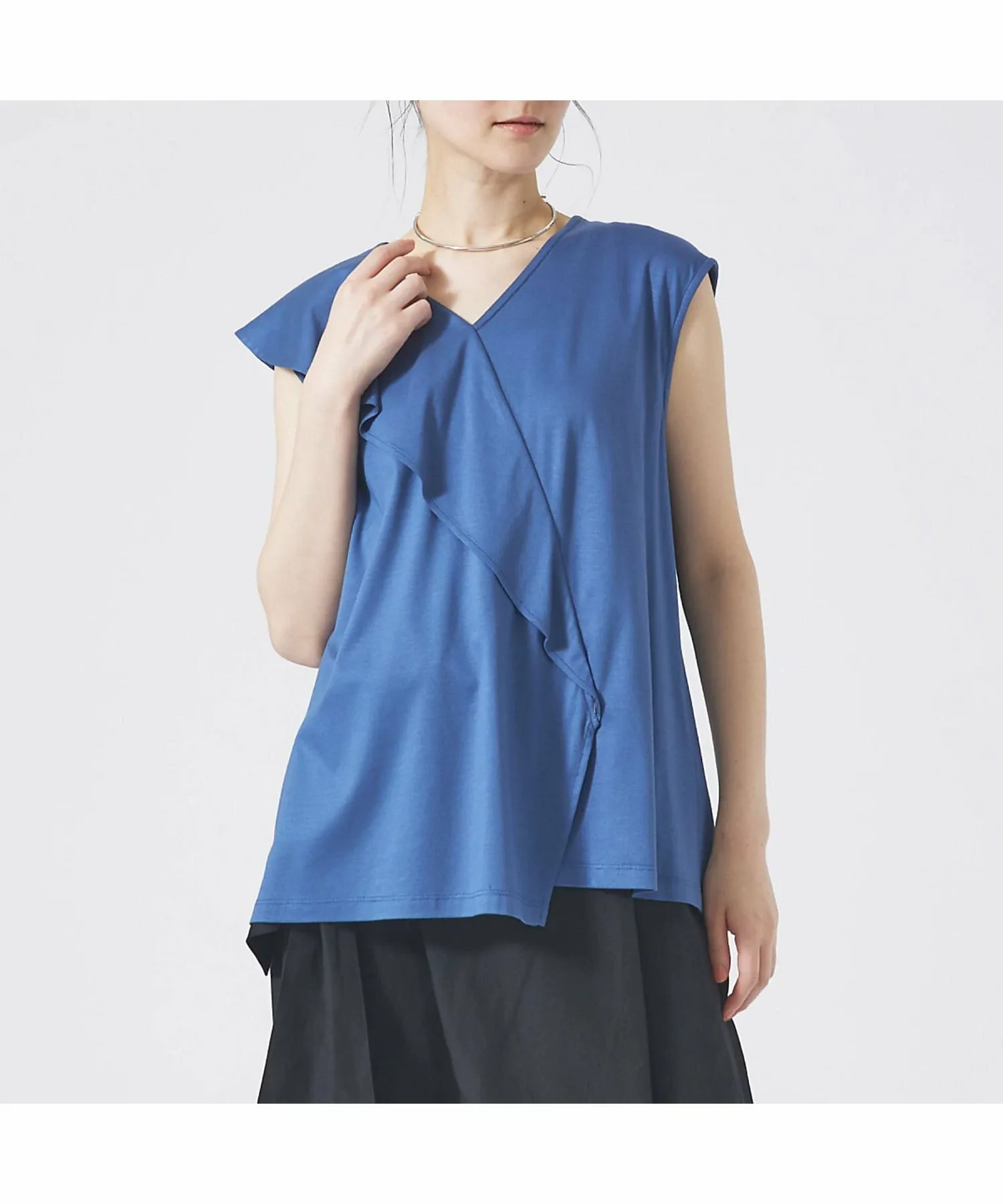 Синяя модель: рост 170 см, обхват груди 77 см, талия 58 см, обхват груди 85 см, размер F.