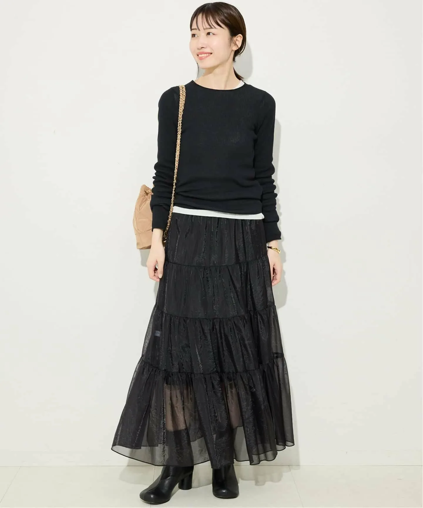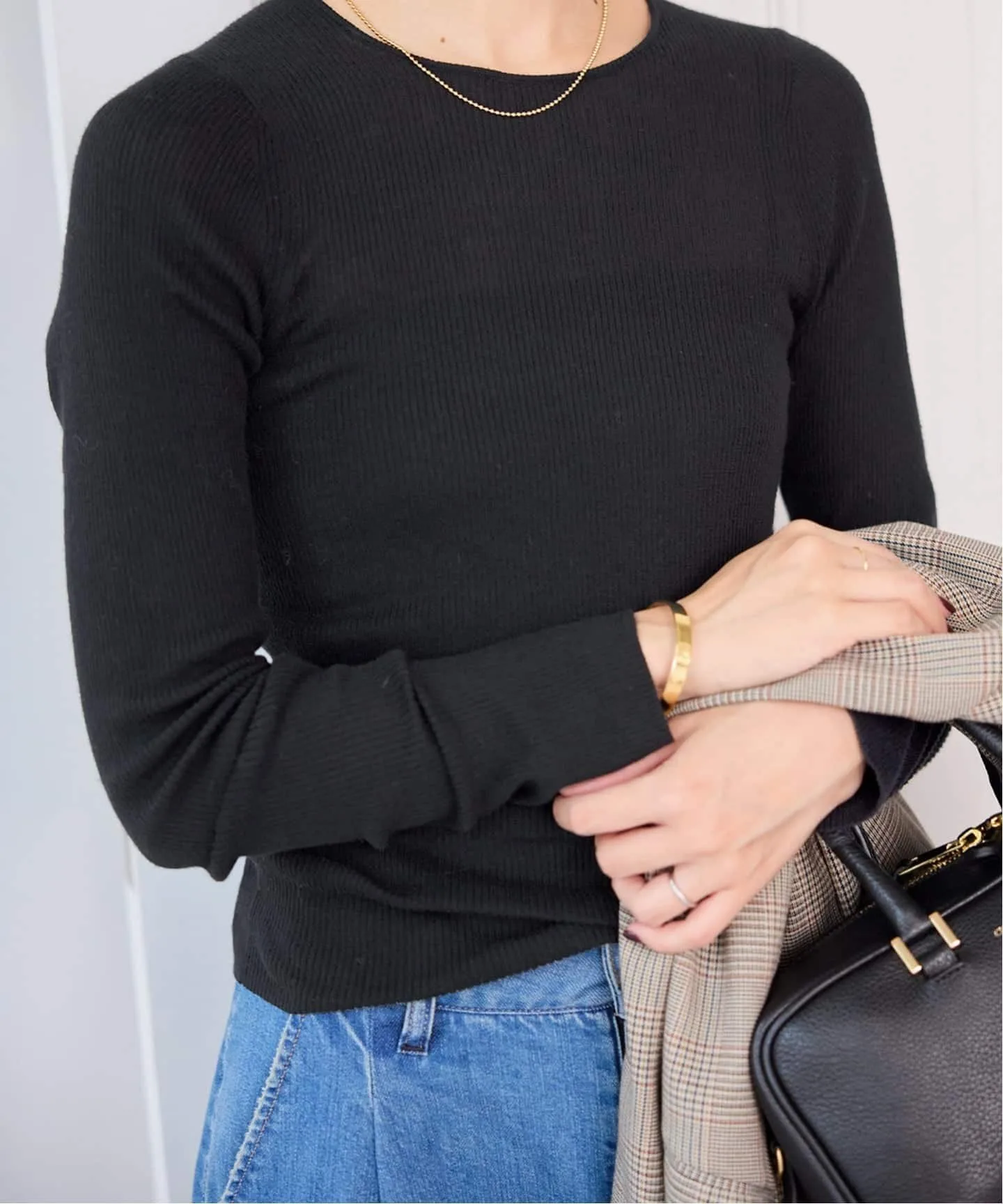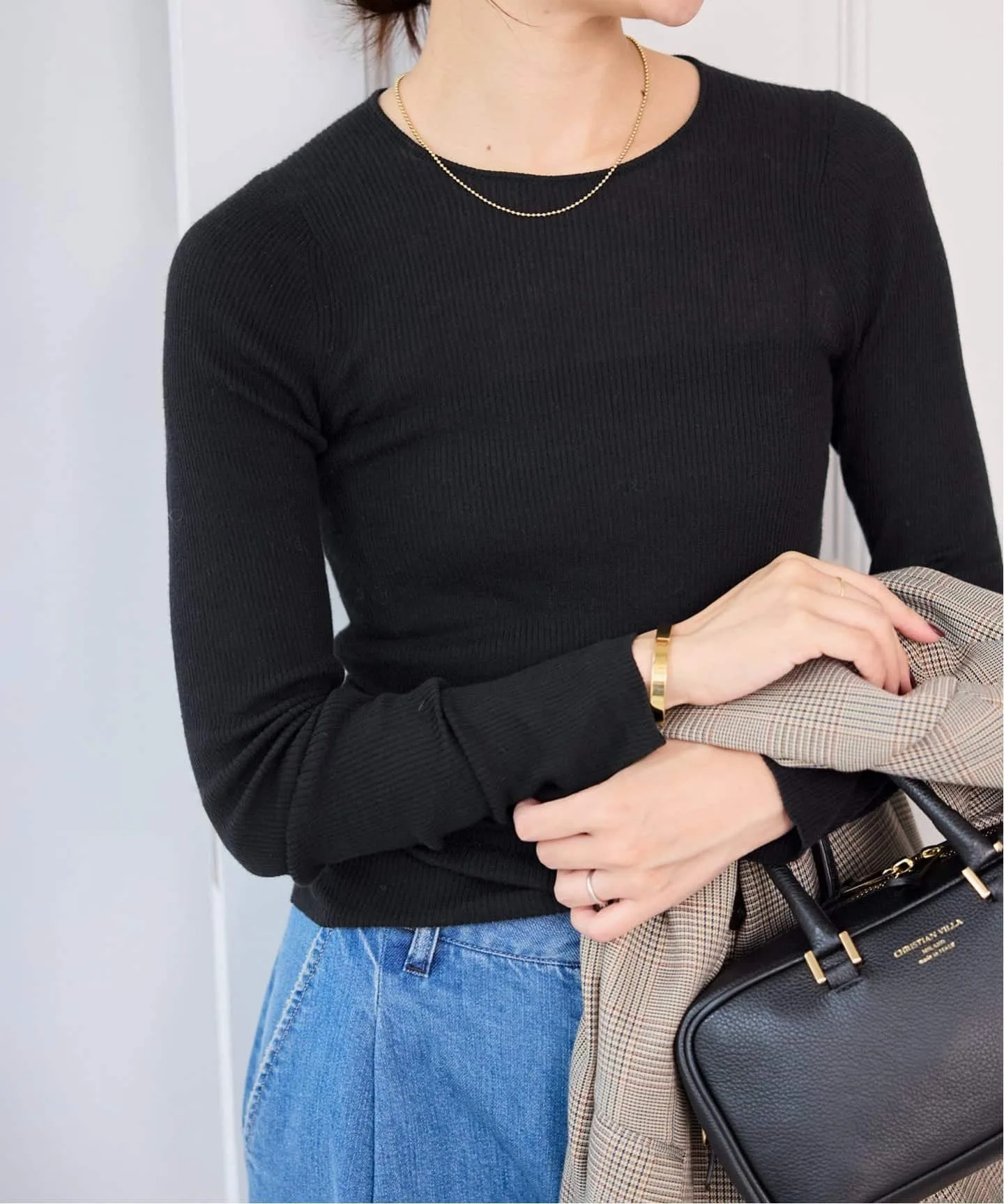 Мягкая хлопковая пряжа и водорастворимая виниловая пряжа связаны вместе, а затем водорастворимый винил растворяется в процессе стирки. При растворении водорастворимого винила воздух расширяется между нитями, что делает изделие мягче, чем трикотаж из одного только хлопка. Это деликатное изделие связано с высокой плотностью вязки. Слегка тонкая хлопковая ткань делает его подходящим для длительного ношения с осени до весны. [Дизайн] Базовый, но модный, облегающий силуэт придает ему стильный вид в этом году. Любимец наших сотрудников вернулся! [Стиль] Идеально подходит для ношения как самостоятельно, так и в качестве нижнего слоя под бюстье или другой одеждой. Этот деликатный трикотаж идеально подходит для ношения под жакетом с начала сезона. [Примечание: Этот товар доступен только онлайн.] Обратите внимание, что он не будет доступен в магазинах. Также доступно в этой серии.