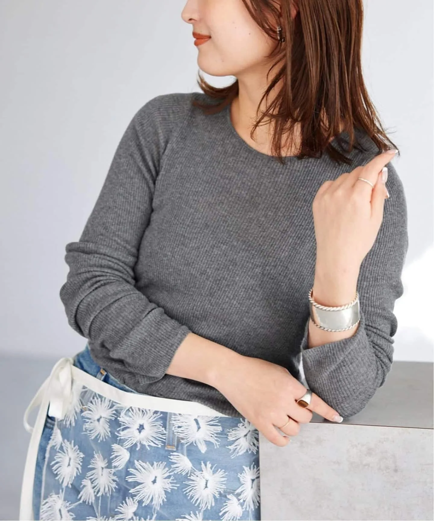 Мягкая хлопковая пряжа и водорастворимая виниловая пряжа связаны вместе, а затем водорастворимый винил растворяется в процессе стирки. При растворении водорастворимого винила воздух расширяется между нитями, что делает изделие мягче, чем трикотаж из одного только хлопка. Это деликатное изделие связано с высокой плотностью вязки. Слегка тонкая хлопковая ткань делает его подходящим для длительного ношения с осени до весны. [Дизайн] Базовый, но модный, облегающий силуэт придает ему стильный вид в этом году. Любимец наших сотрудников вернулся! [Стиль] Идеально подходит для ношения как самостоятельно, так и в качестве нижнего слоя под бюстье или другой одеждой. Этот деликатный трикотаж идеально подходит для ношения под жакетом с начала сезона. [Примечание: Этот товар доступен только онлайн.] Обратите внимание, что он не будет доступен в магазинах. Также доступно в этой серии.