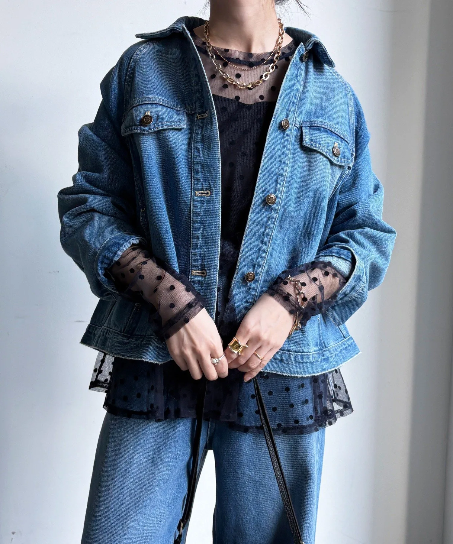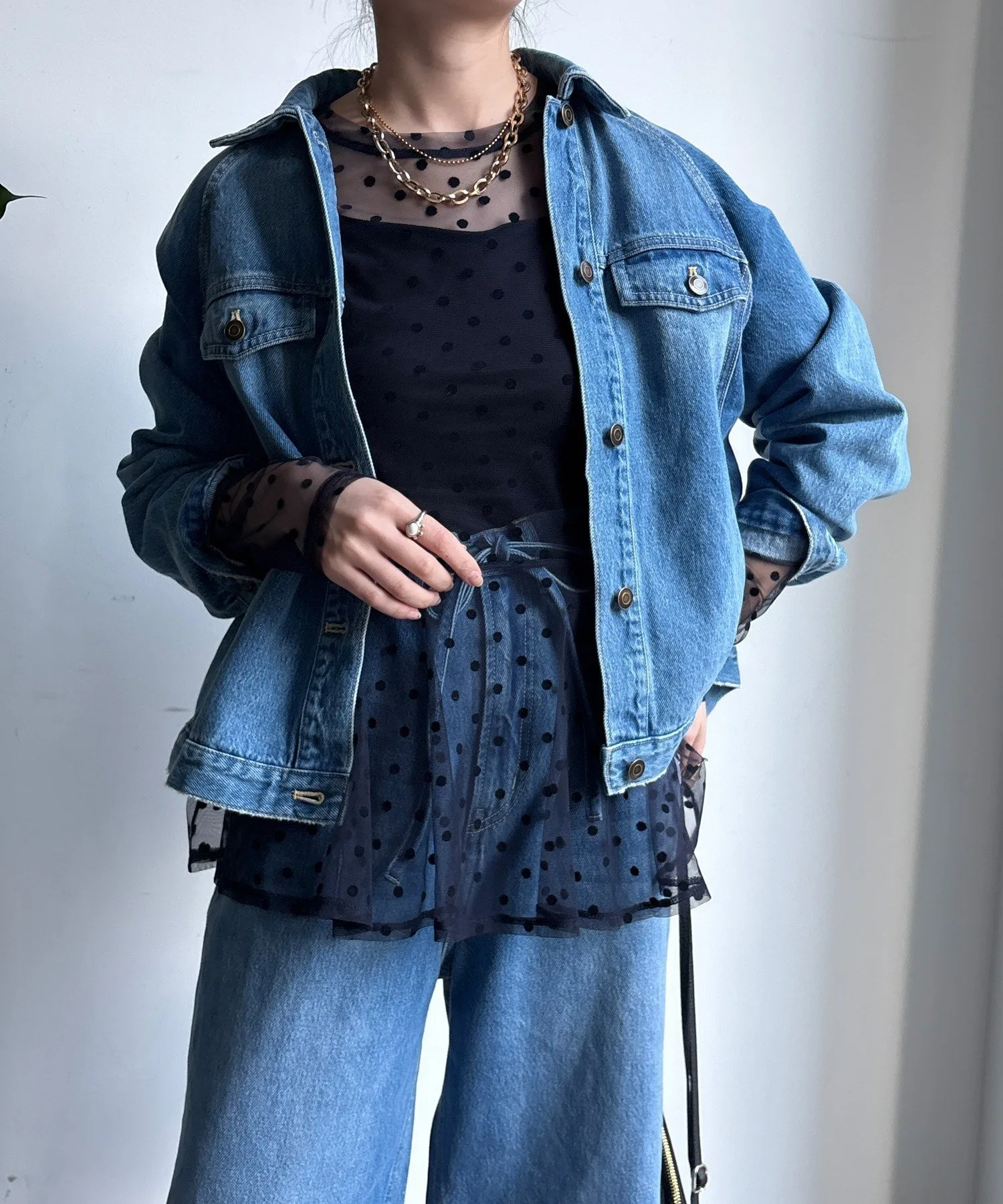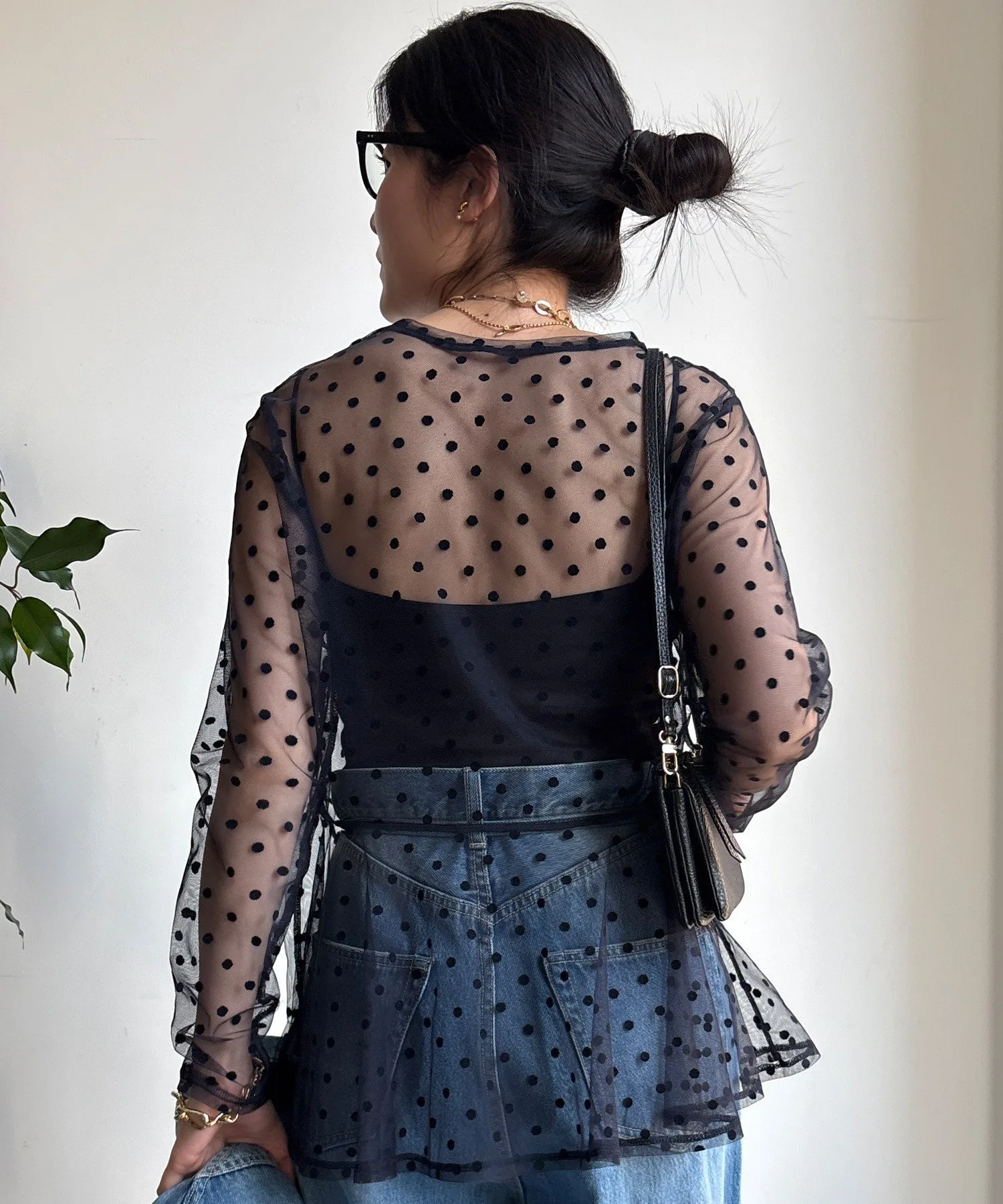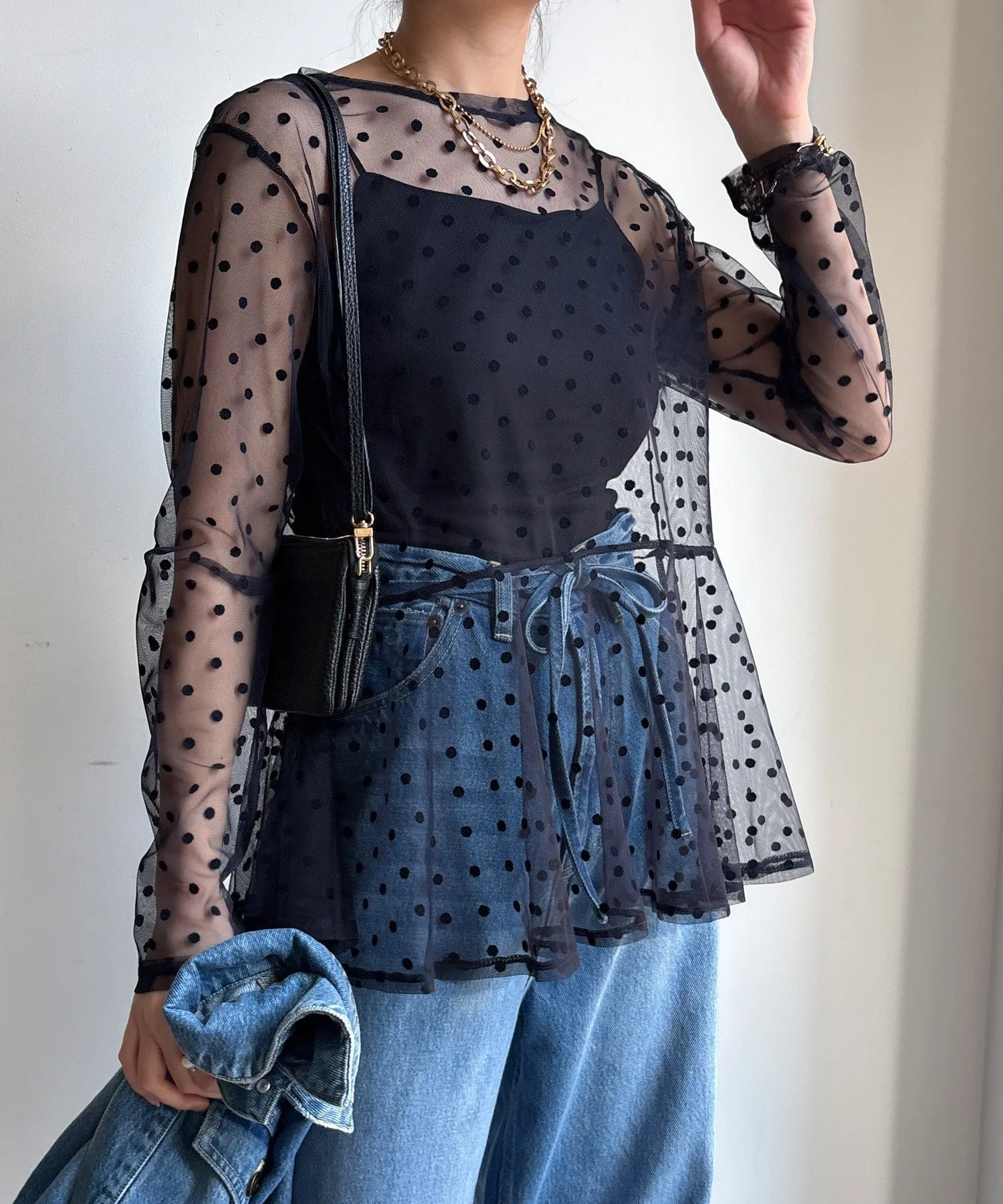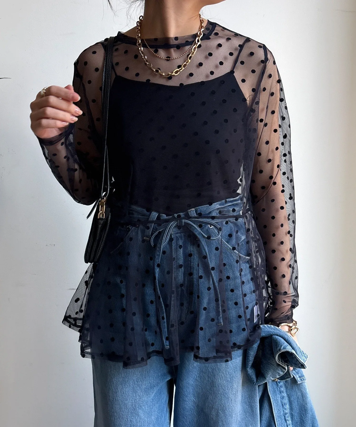 Туника из тюля в горошек с мягкой, полупрозрачной текстурой.