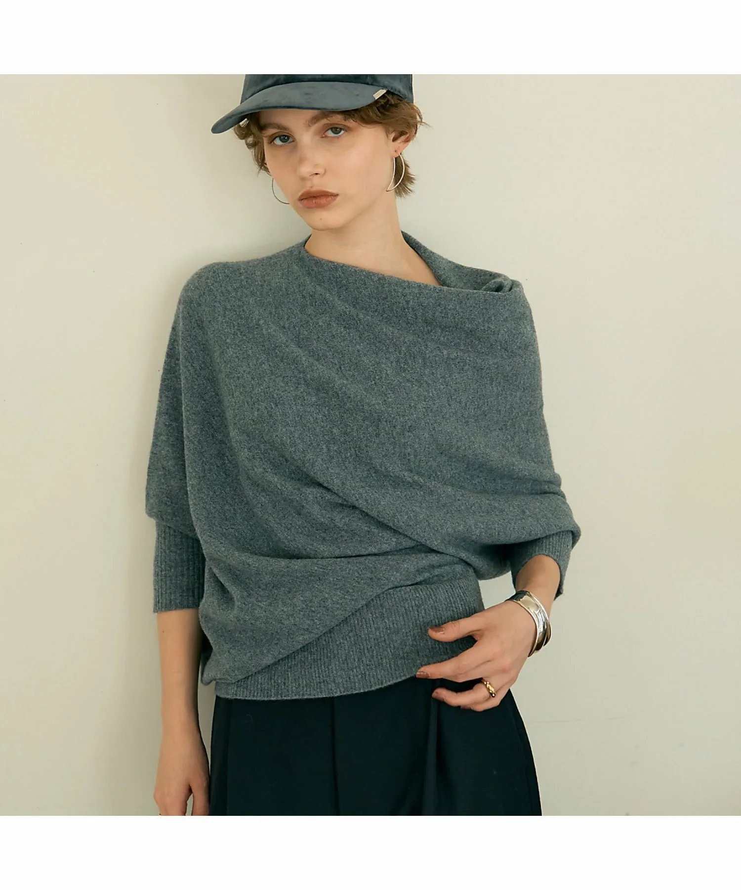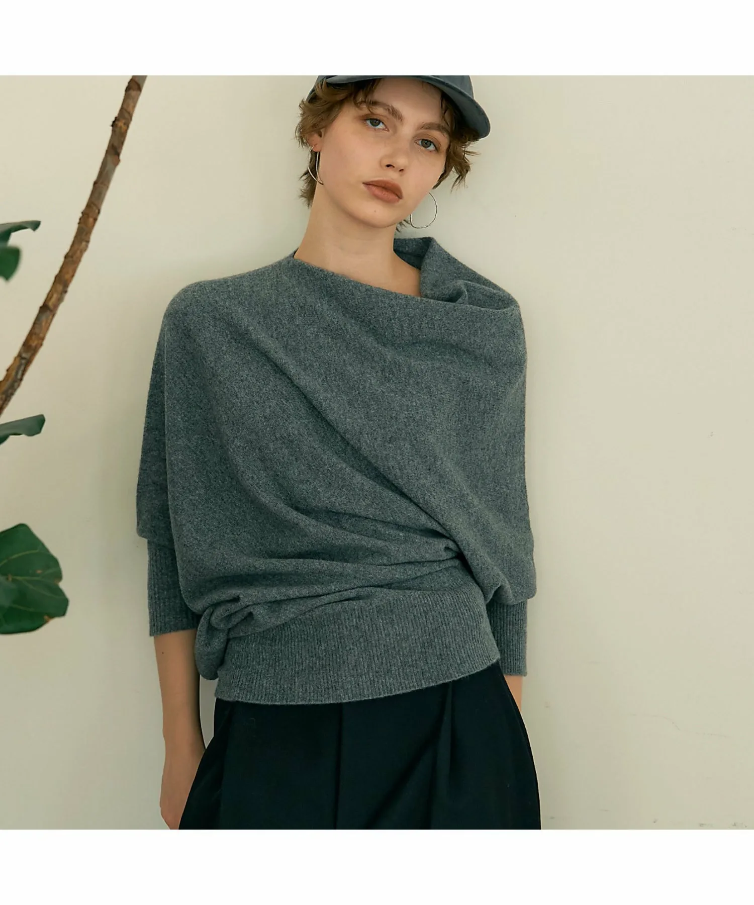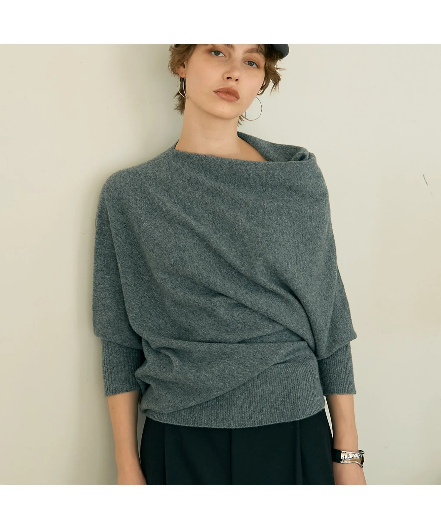Вязаный пуловер с впечатляющим асимметричным силуэтом.