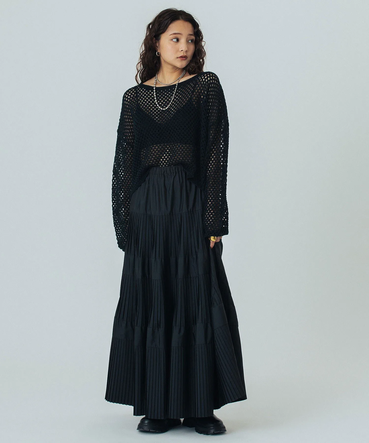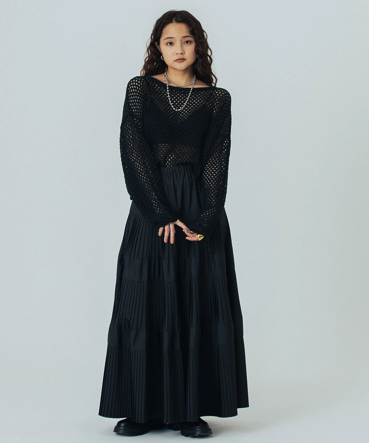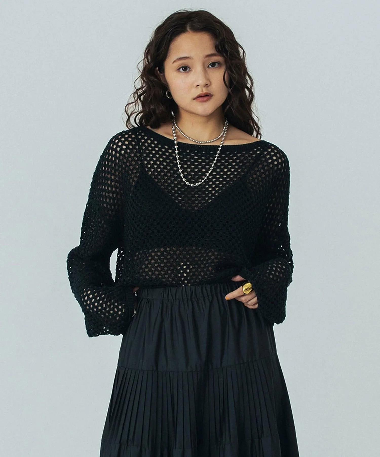 Пуловер из сетчатой вязки с легкой, полупрозрачной текстурой.