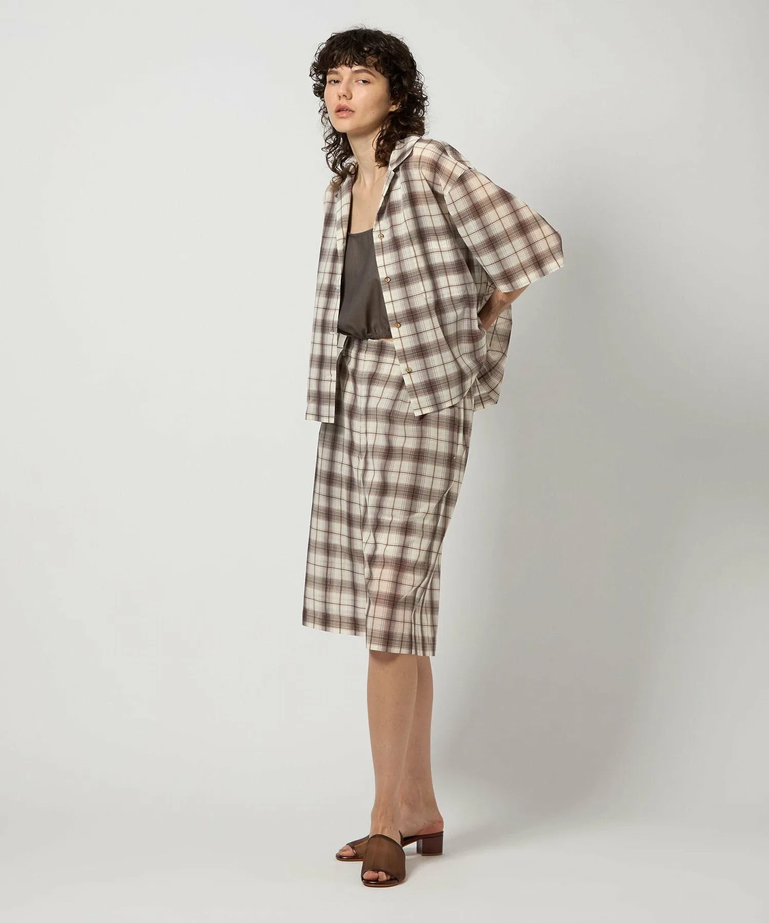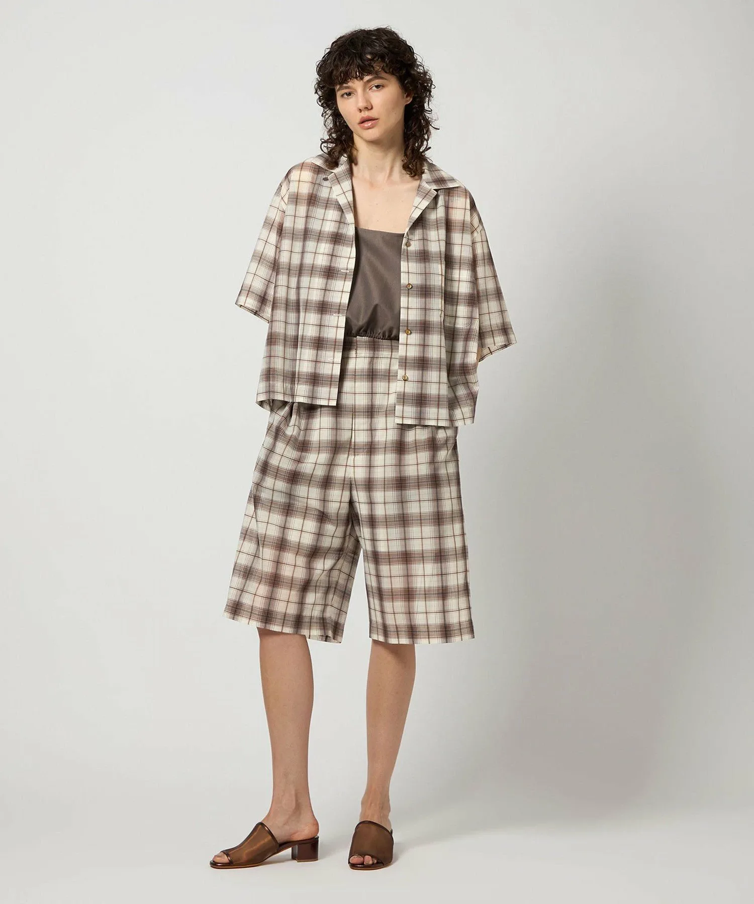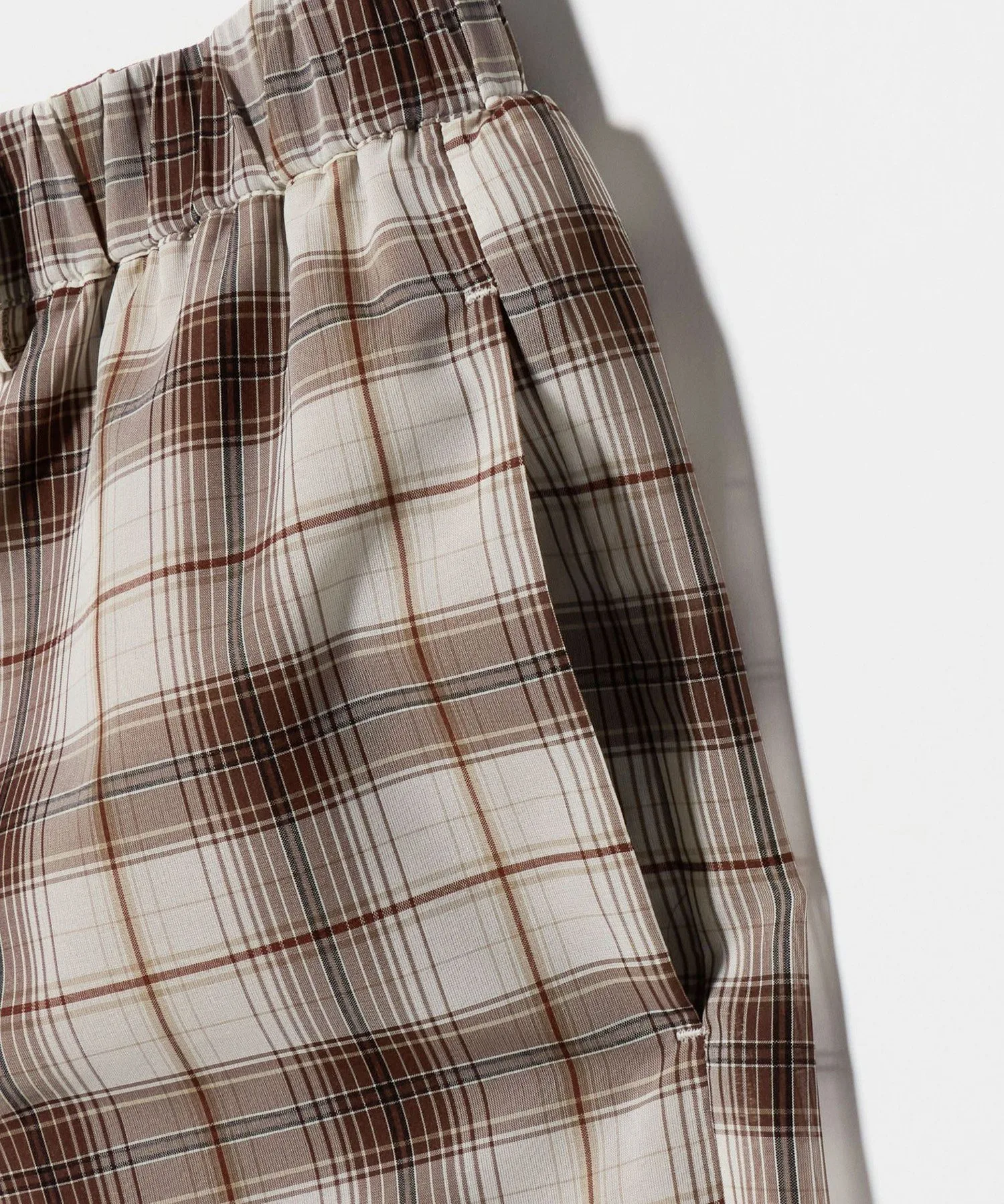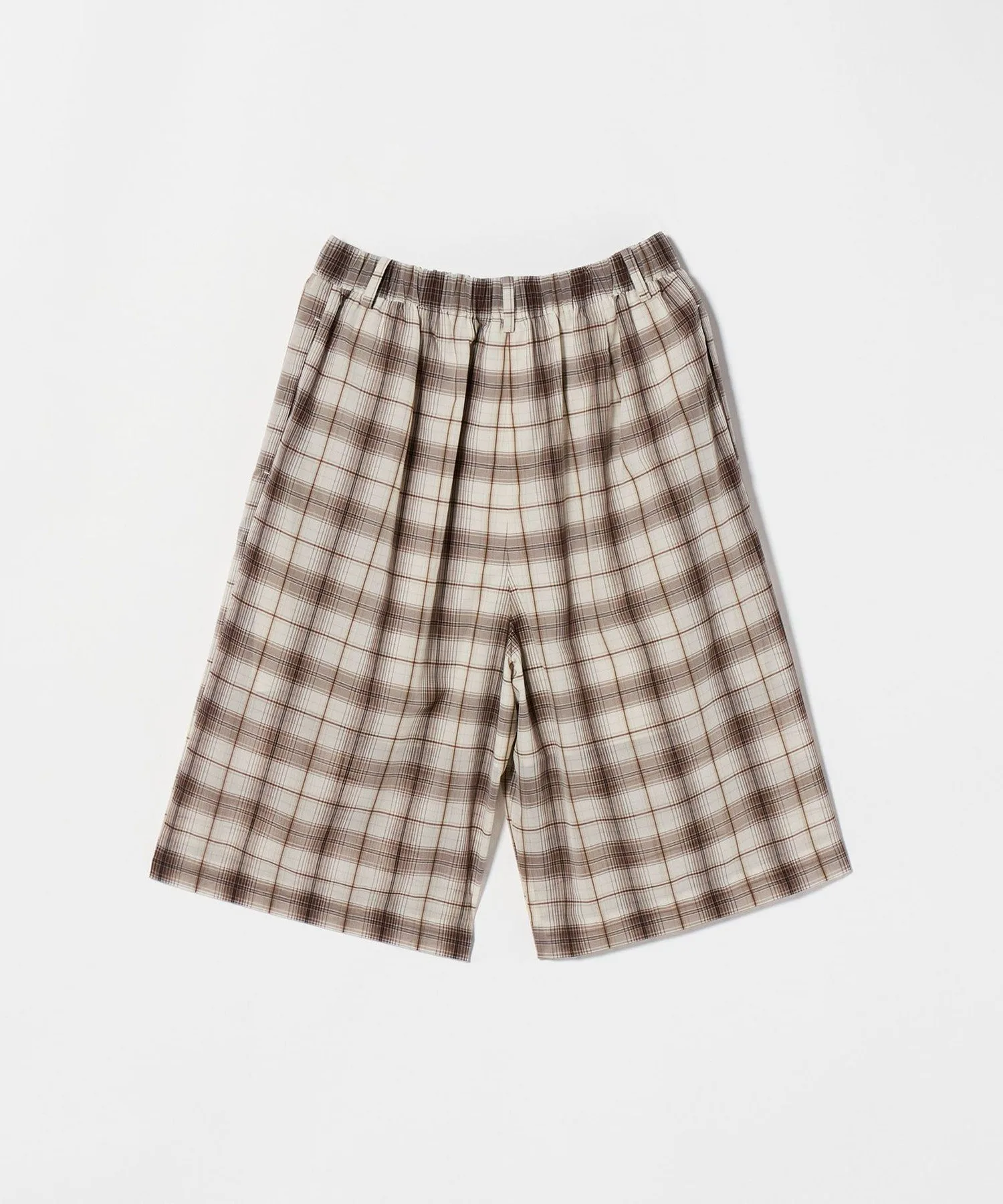 Ретро-шикарные шорты кремового цвета с коричневой клетчатой отделкой.