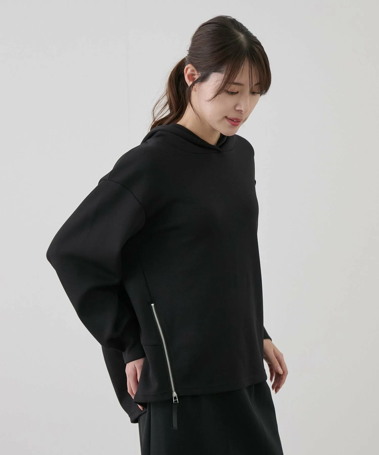 При расстегивании боковой молнии акцентный цвет гросгрейн становится изюминкой.
