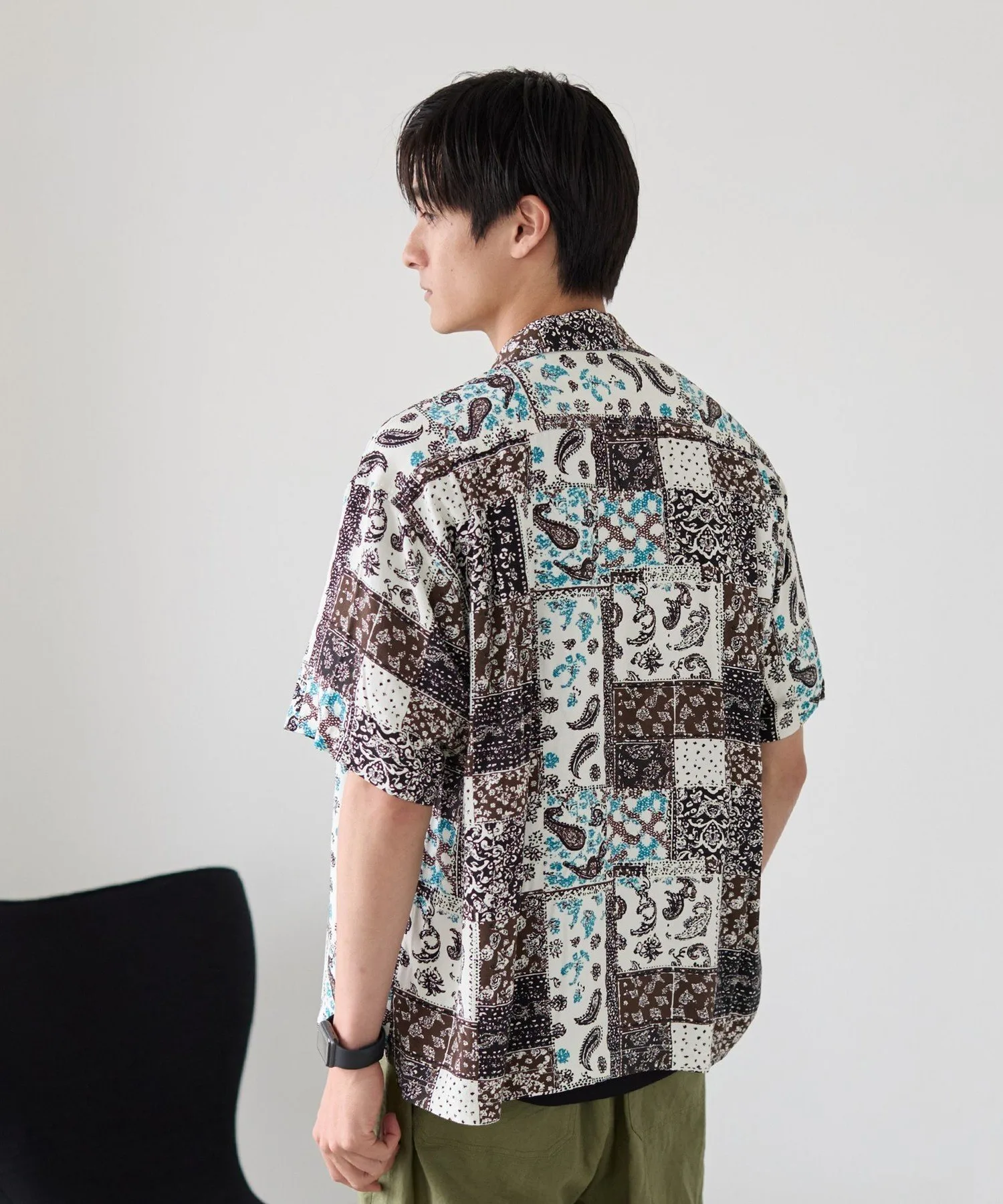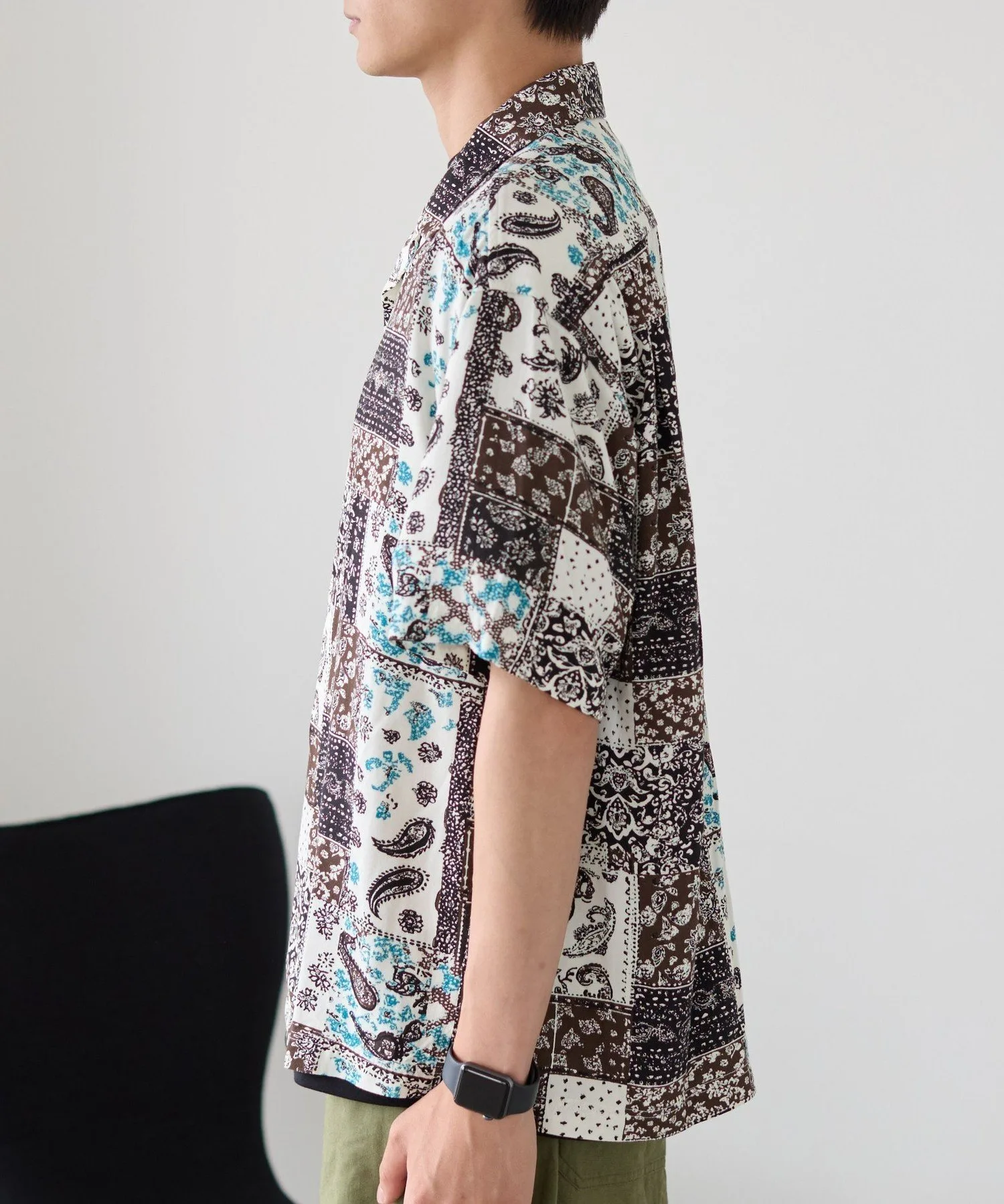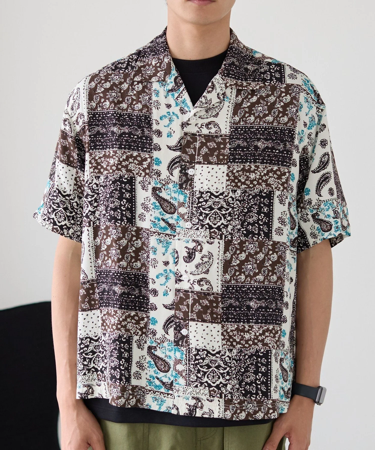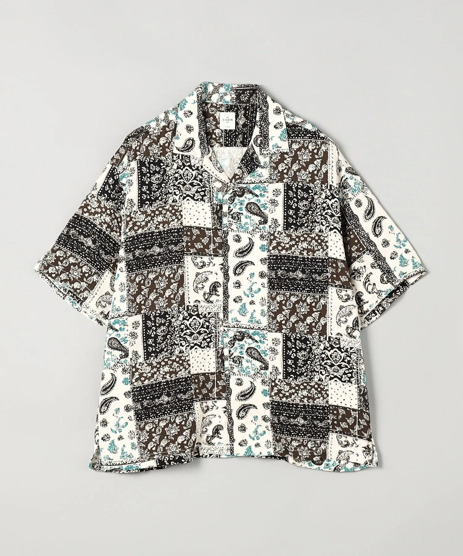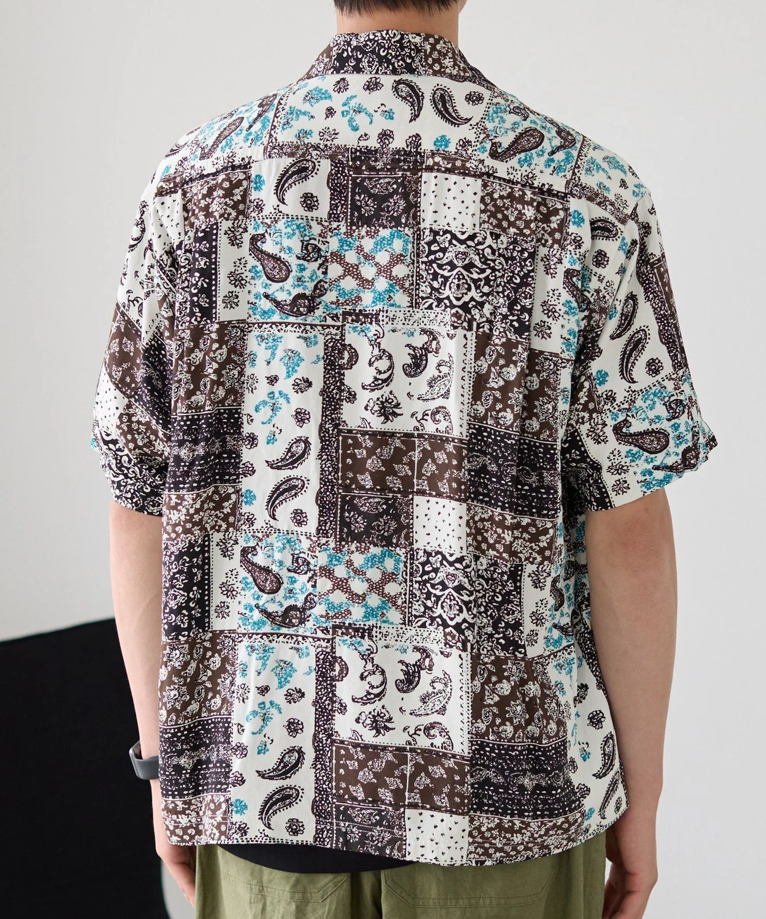 Рубашка с принтом, сочетающая в себе различные узоры, такие как батик и пейсли, в изысканном балансе.