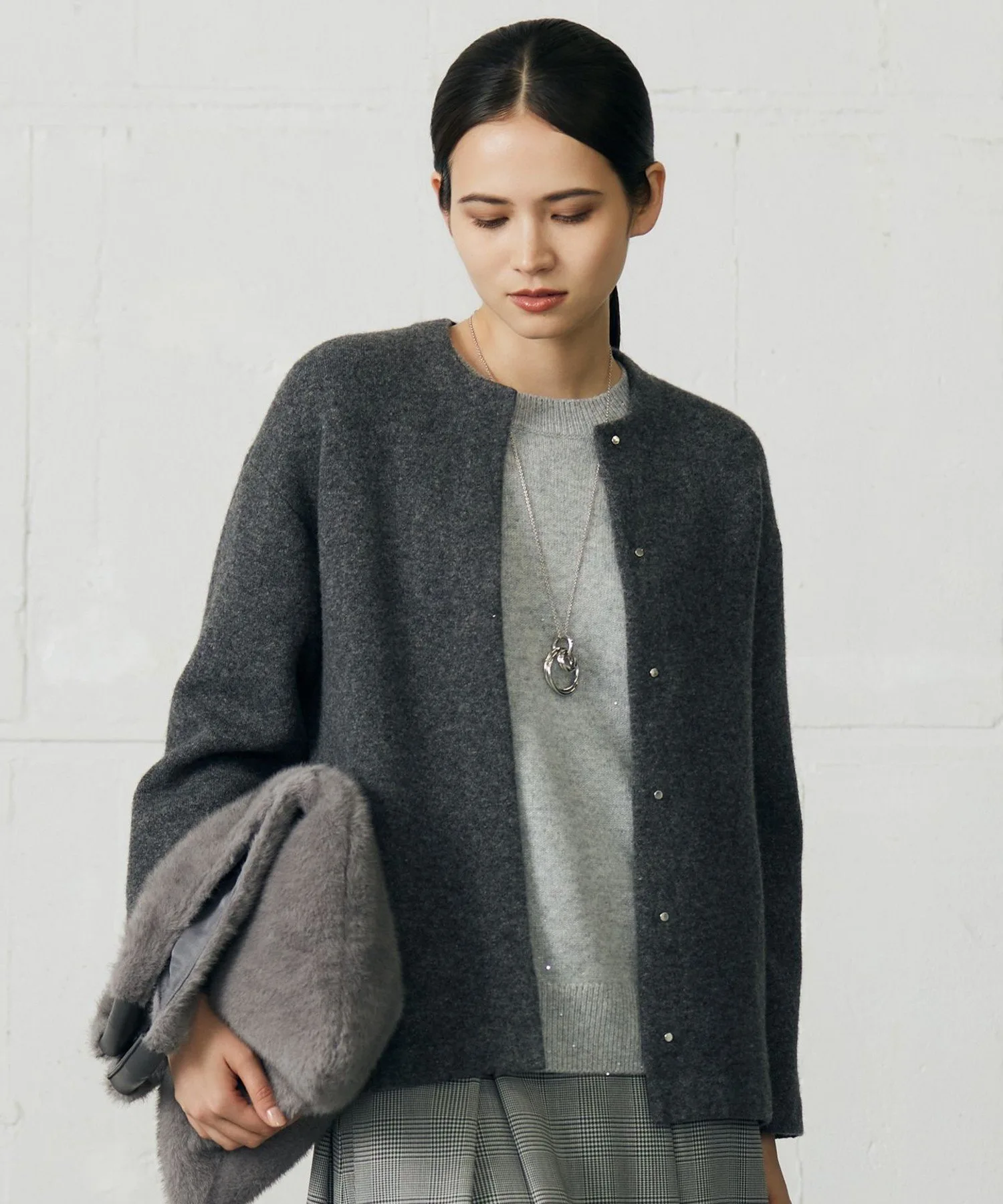 Обновленная версия классической вязаной верхней одежды. Дизайн: Это вязаная верхняя одежда удобной длины. Материал и силуэт этой классической вязаной верхней одежды были обновлены. Материал – это пряжа букле с блестками, а силуэт слегка компактный, что обеспечивает ощущение легкости, сохраняя при этом качества верхней одежды. Материал: Смесь мягкой, пушистой пряжи букле с блестками и вязаного полотна с эластичной пряжей создает очень эластичную, пушистую текстуру, обеспечивая материал с оптимальной плотностью для создания эффекта верхней одежды.