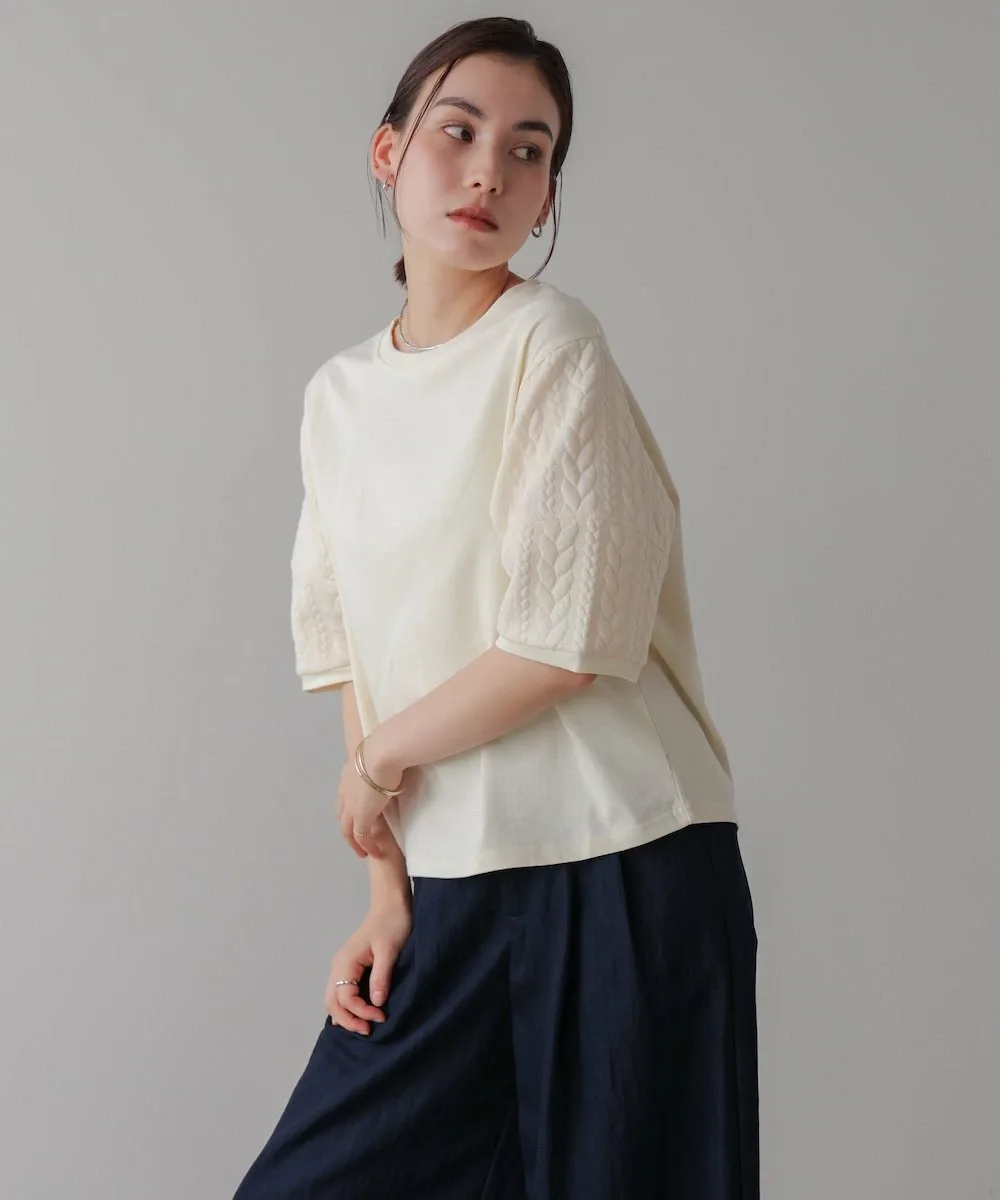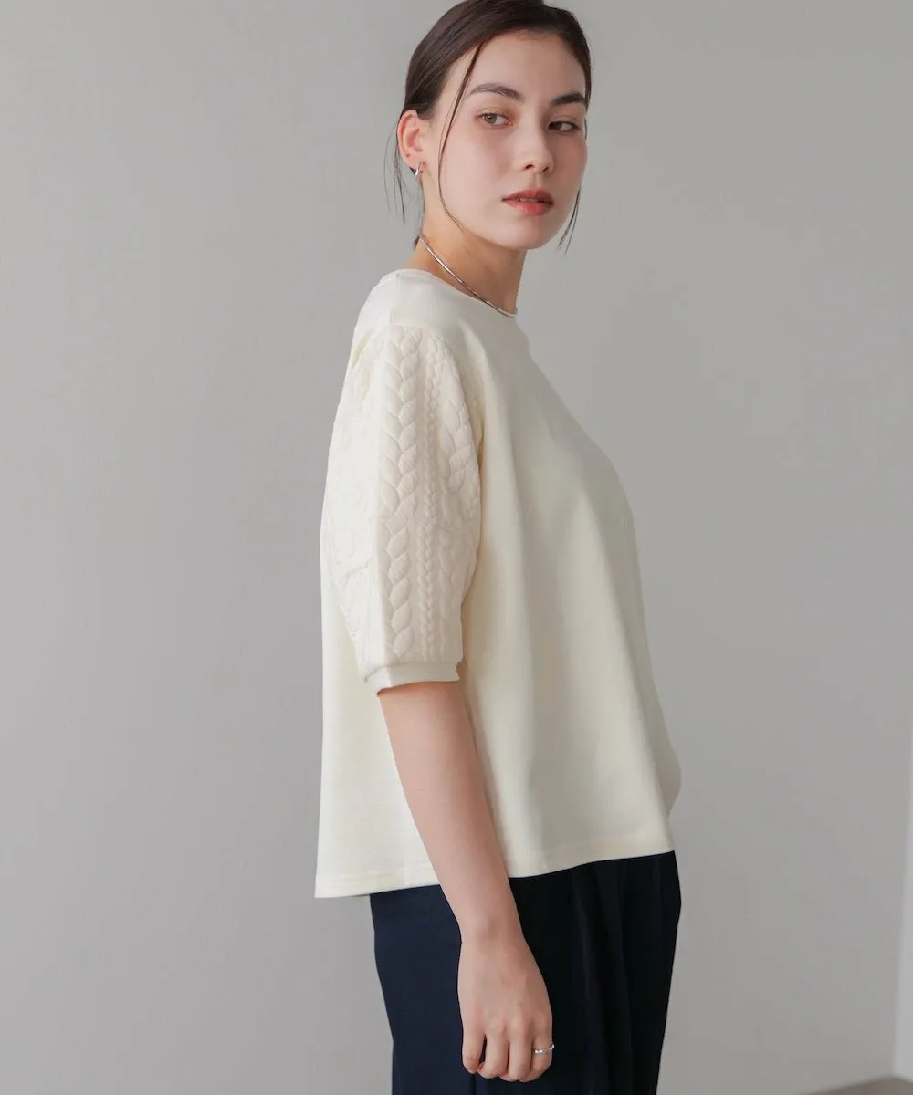 ТОЧКАЭтот пуловер из букле с рукавами украшен привлекательным узором «косичка». Мягкая ткань букле в сочетании с объемной косичкой создает очаровательный контрастный дизайн.Несмотря на короткие рукава, он выглядит эффектно, становясь центральным элементом любого образа! Его простой дизайн делает его эффектной вещью. Слегка свободный силуэт обеспечивает расслабленную посадку, а естественная драпировка создает женственный силуэт.