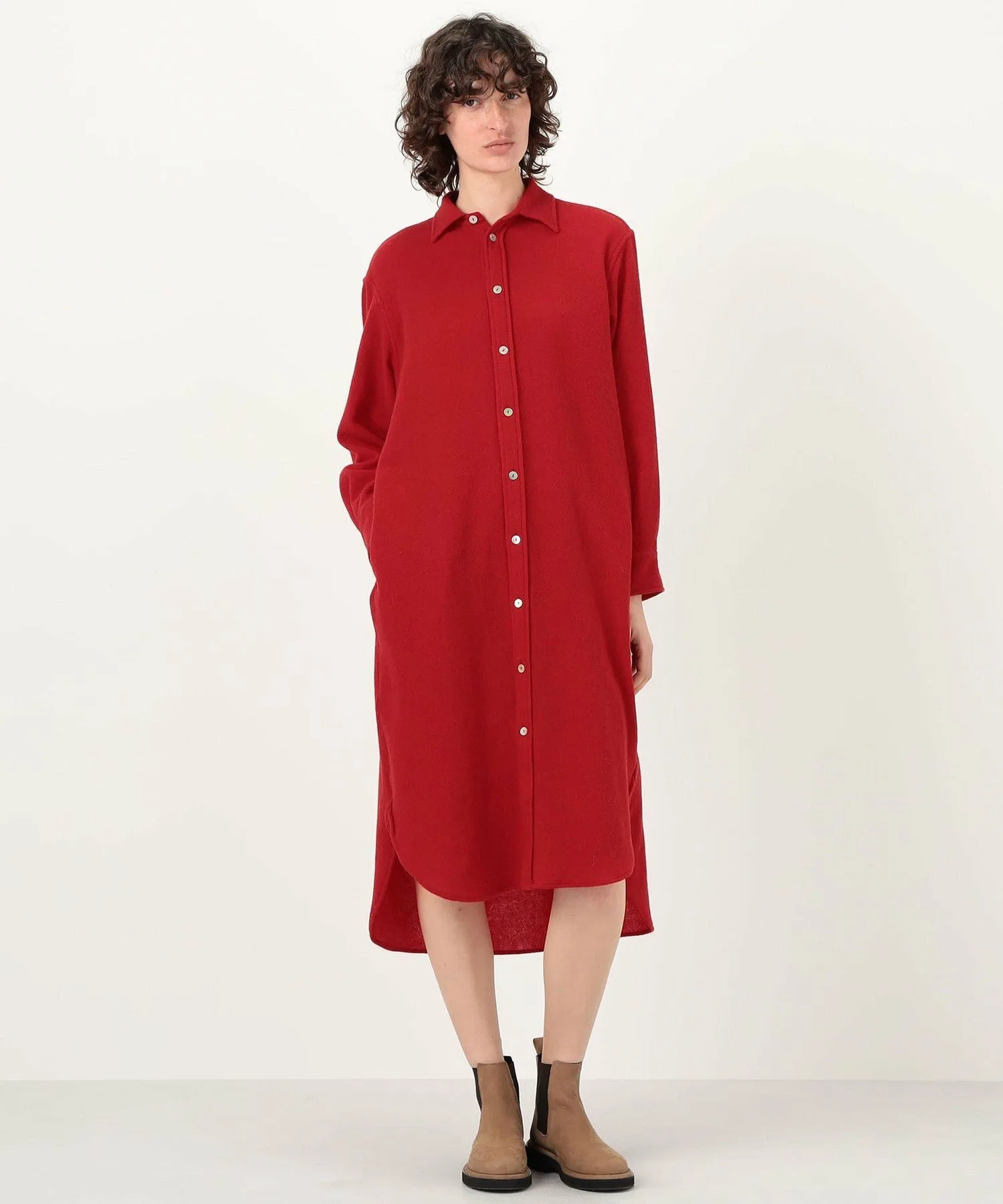 В дизайне уделено внимание деталям, характерным для рубашек, таким как шлейф и ластовица, создавая расслабленный, но при этом лаконичный образ.